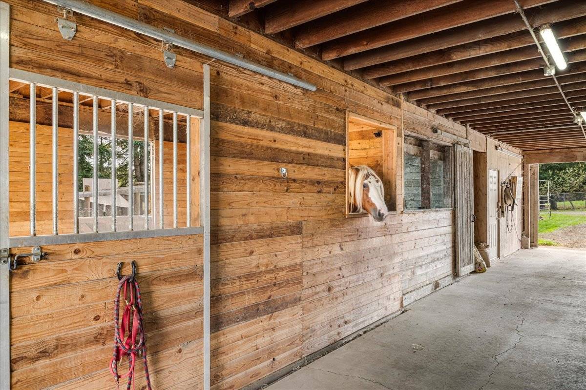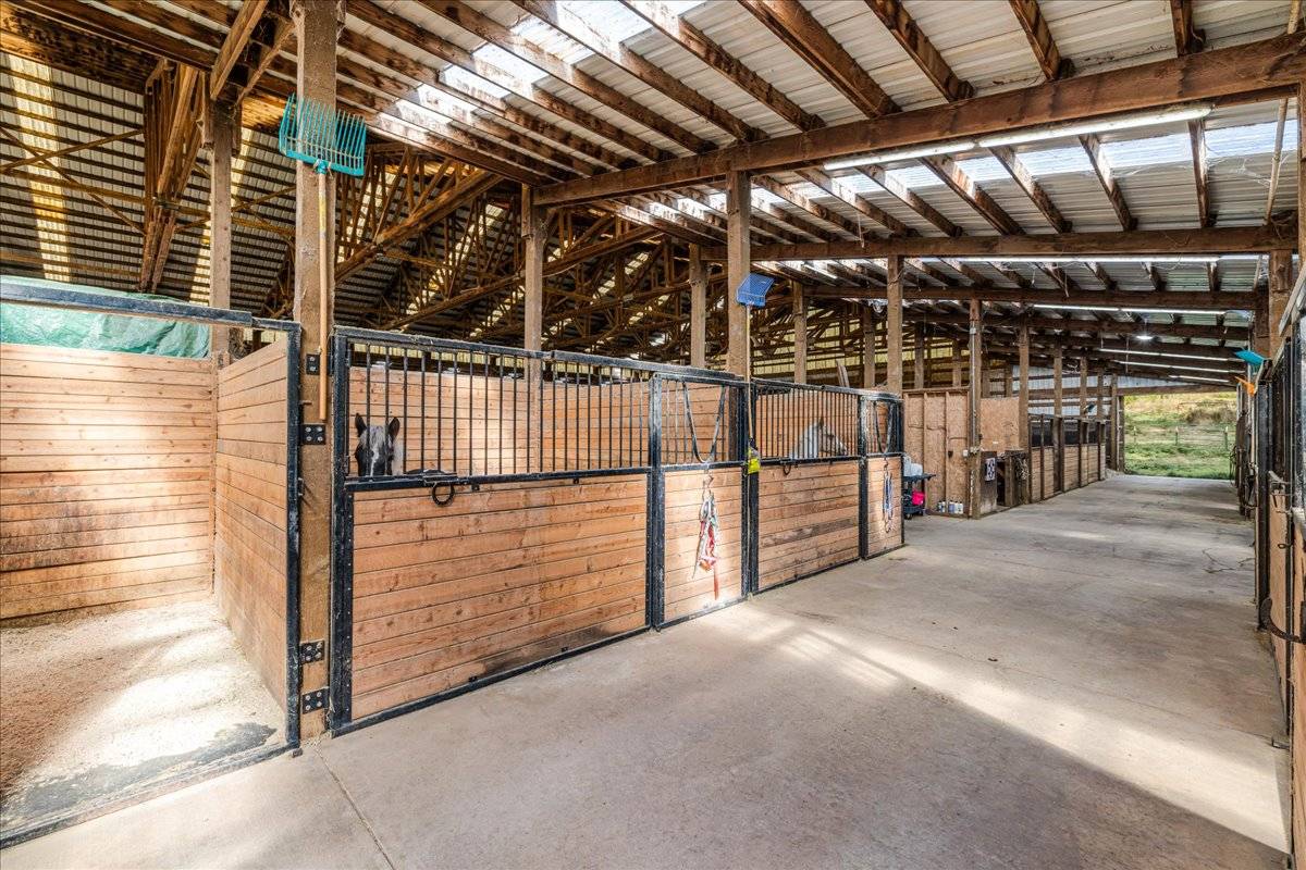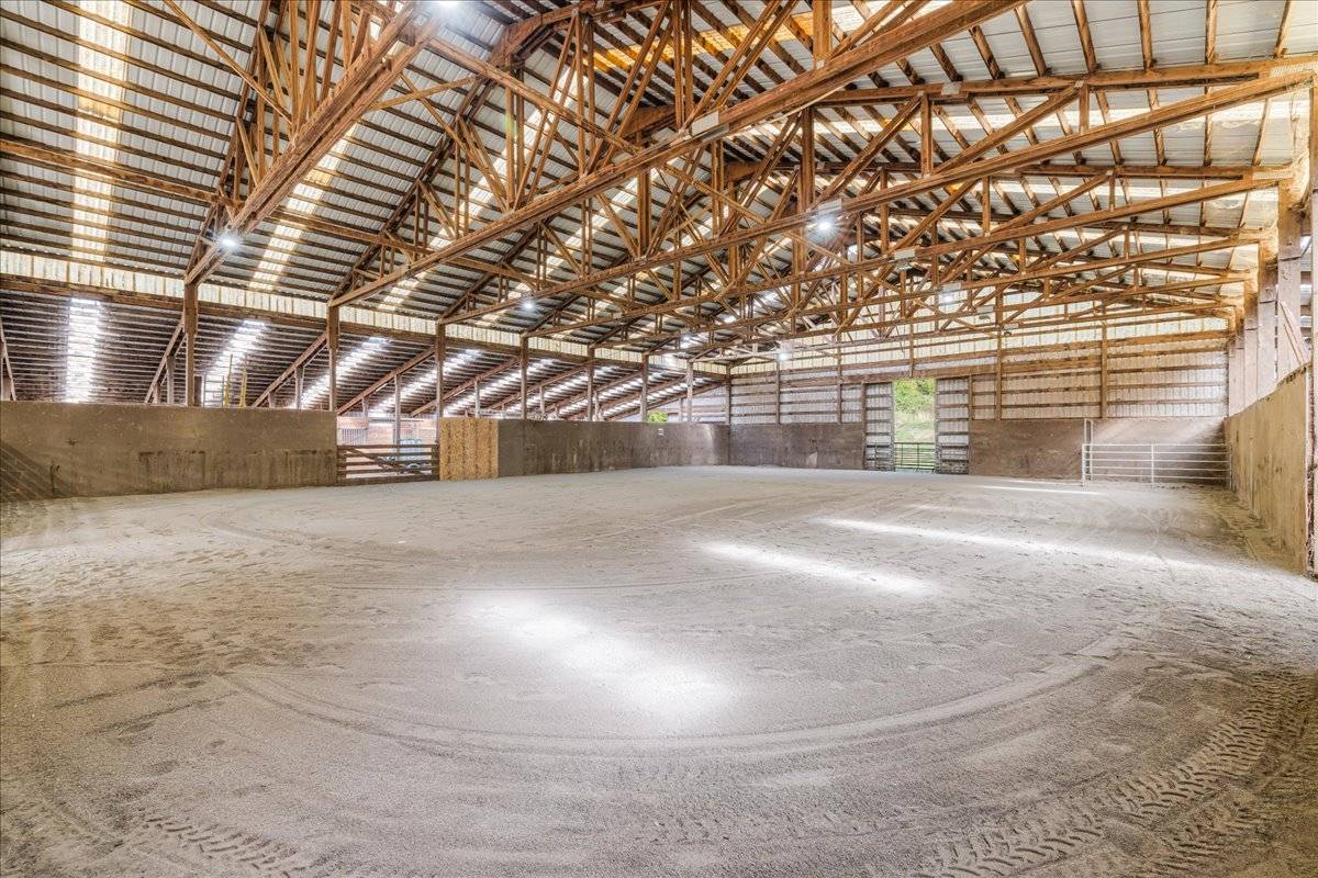 - Equestrians interested in boarding/training, breeding or simply having your horses at home, main stables provides up to 18 12x12 stalls with room for hay and implement storage. A second barn with 5 stalls, attached runs and a loft, a large 72X120 indoor arena with sand footing, 10 fenced turnouts, and onsite riding/hiking trails. Additionally, there's an auxiliary garage with power stubbed for a shop or storage.