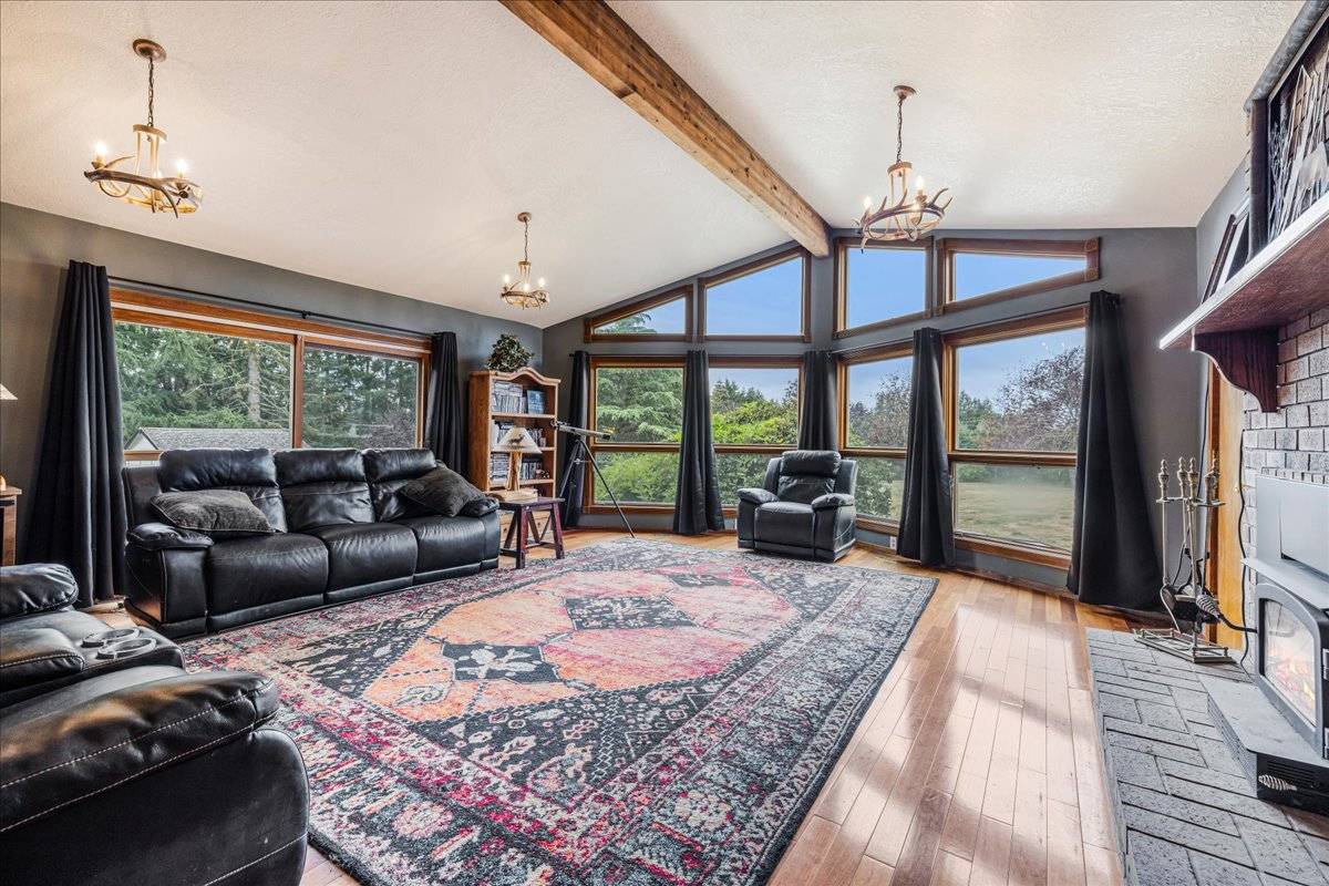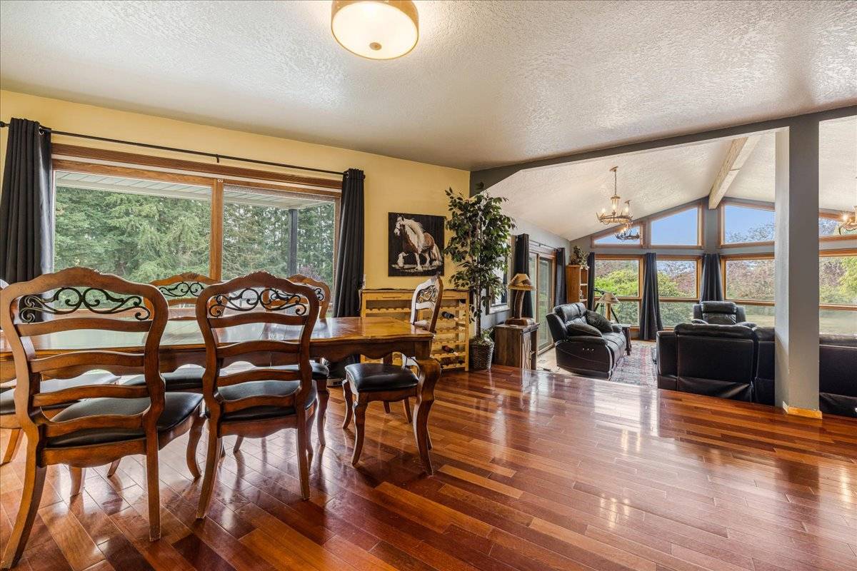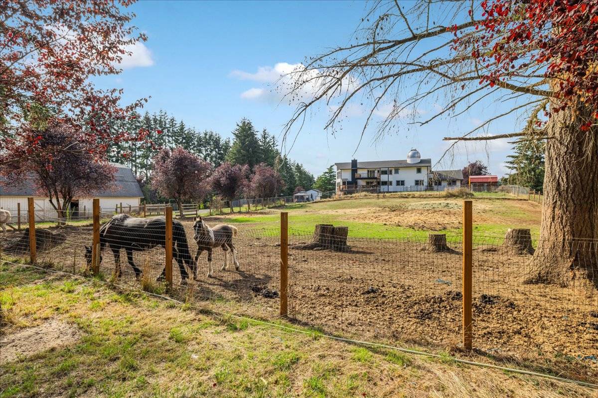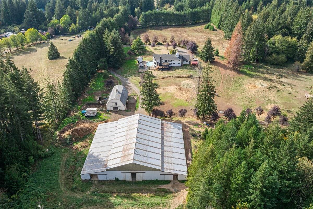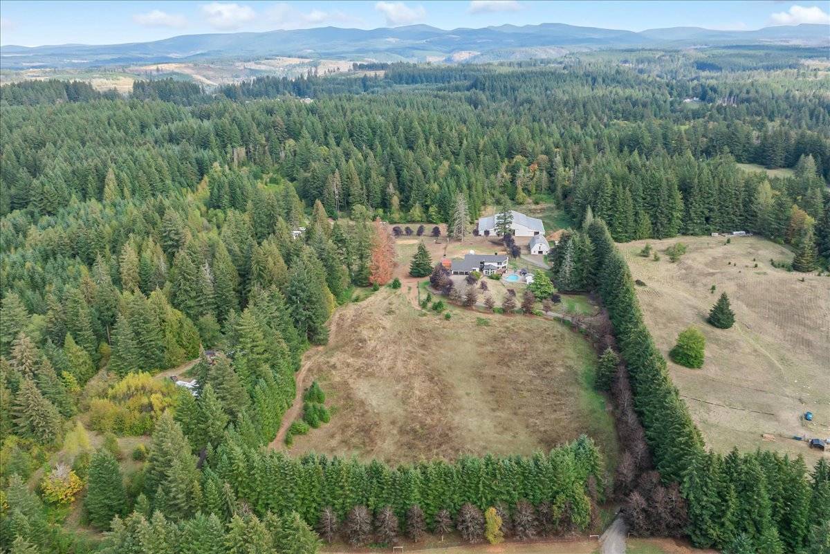 - Enjoy a quieter lifestyle outside of the urban hustle, surrounded by natural beauty and ample outdoor opportunities such as the Clackamas River, Mount Hood, and the Columbia River Gorge. The property is located approximately 30 miles southeast of PDX and adjacent to Oregon City. As you pass through the nature-inspired entry gate, you'll find an impressive 5-bedroom, 4-bathroom, 6,530sqft home on 20 acres. The interior showcases vaulted ceilings, Brazilian cherry hardwoods, and bright walls of windows. There are separate living, family, and spacious entertaining rooms with access to exterior decking. The open kitchen, breakfast nook, and formal dining area allow for family gatherings without feeling overcrowded. The kitchen features an updated butcher block island, granite countertops, stainless steel appliances, double ovens, pantry, and a hammered copper sink overlooking the pastoral pastures. The main level offers four bedrooms, two bathrooms, a laundry room with an elevated dog wash, and plenty of storage. Upstairs, you'll find the primary suite with a grand bedroom, bathroom, multiple walk-in closets, and a spacious in-home office also currently used for a crafting room. The daylight walk-out basement offers another full bath, basic kitchenette, and a cozy entertainment room with a fireplace. There's direct walk-out access to the inground pool and hot tub for a relaxing summertime cabana. Features provide for larger living with a multi-generational layout, abundant storage throughout, main-level living, and a rooftop astronomy observatory.
