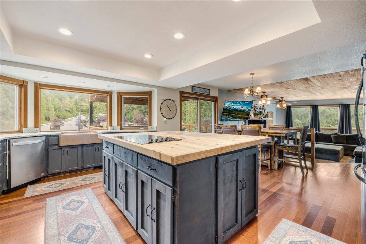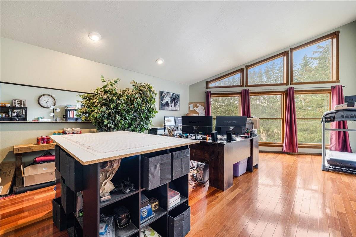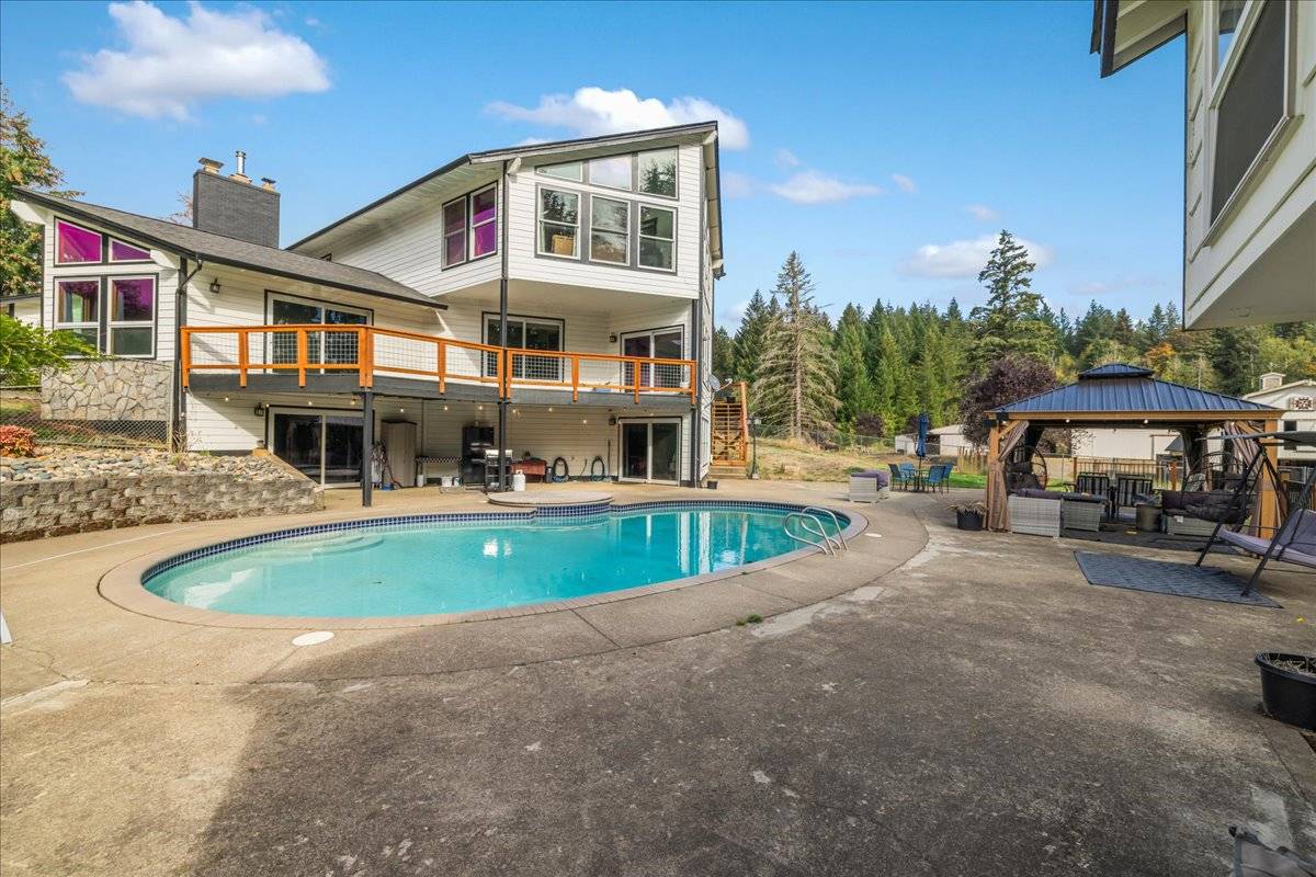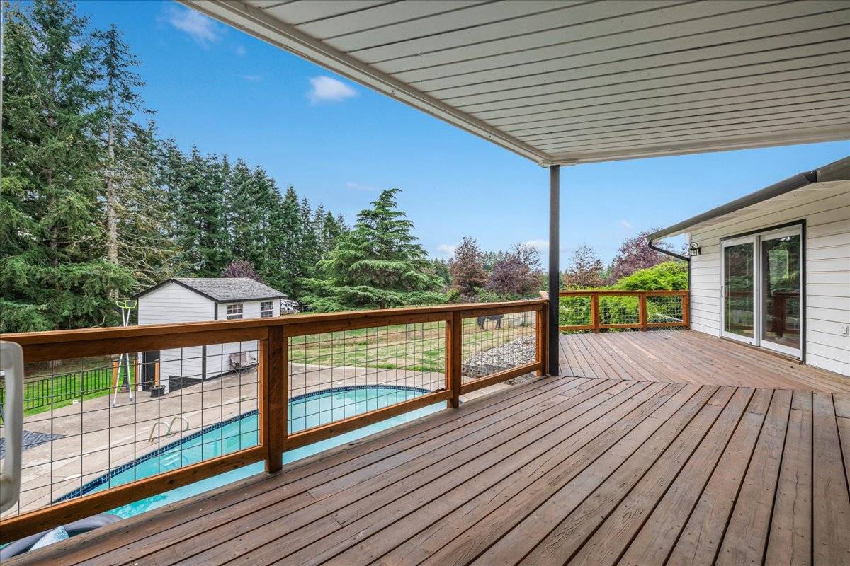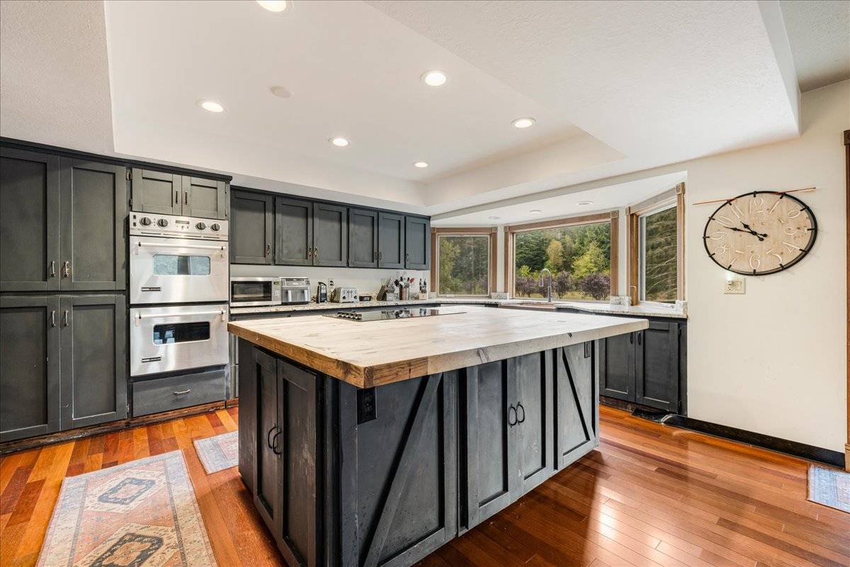 - Enjoy a quieter lifestyle outside of the urban hustle, surrounded by natural beauty and ample outdoor opportunities such as the Clackamas River, Mount Hood, and the Columbia River Gorge. The property is located approximately 30 miles southeast of PDX and adjacent to Oregon City. As you pass through the nature-inspired entry gate, you'll find an impressive 5-bedroom, 4-bathroom, 6,530sqft home on 20 acres. The interior showcases vaulted ceilings, Brazilian cherry hardwoods, and bright walls of windows. There are separate living, family, and spacious entertaining rooms with access to exterior decking. The open kitchen, breakfast nook, and formal dining area allow for family gatherings without feeling overcrowded. The kitchen features an updated butcher block island, granite countertops, stainless steel appliances, double ovens, pantry, and a hammered copper sink overlooking the pastoral pastures. The main level offers four bedrooms, two bathrooms, a laundry room with an elevated dog wash, and plenty of storage. Upstairs, you'll find the primary suite with a grand bedroom, bathroom, multiple walk-in closets, and a spacious in-home office also currently used for a crafting room. The daylight walk-out basement offers another full bath, basic kitchenette, and a cozy entertainment room with a fireplace. There's direct walk-out access to the inground pool and hot tub for a relaxing summertime cabana. Features provide for larger living with a multi-generational layout, abundant storage throughout, main-level living, and a rooftop astronomy observatory.