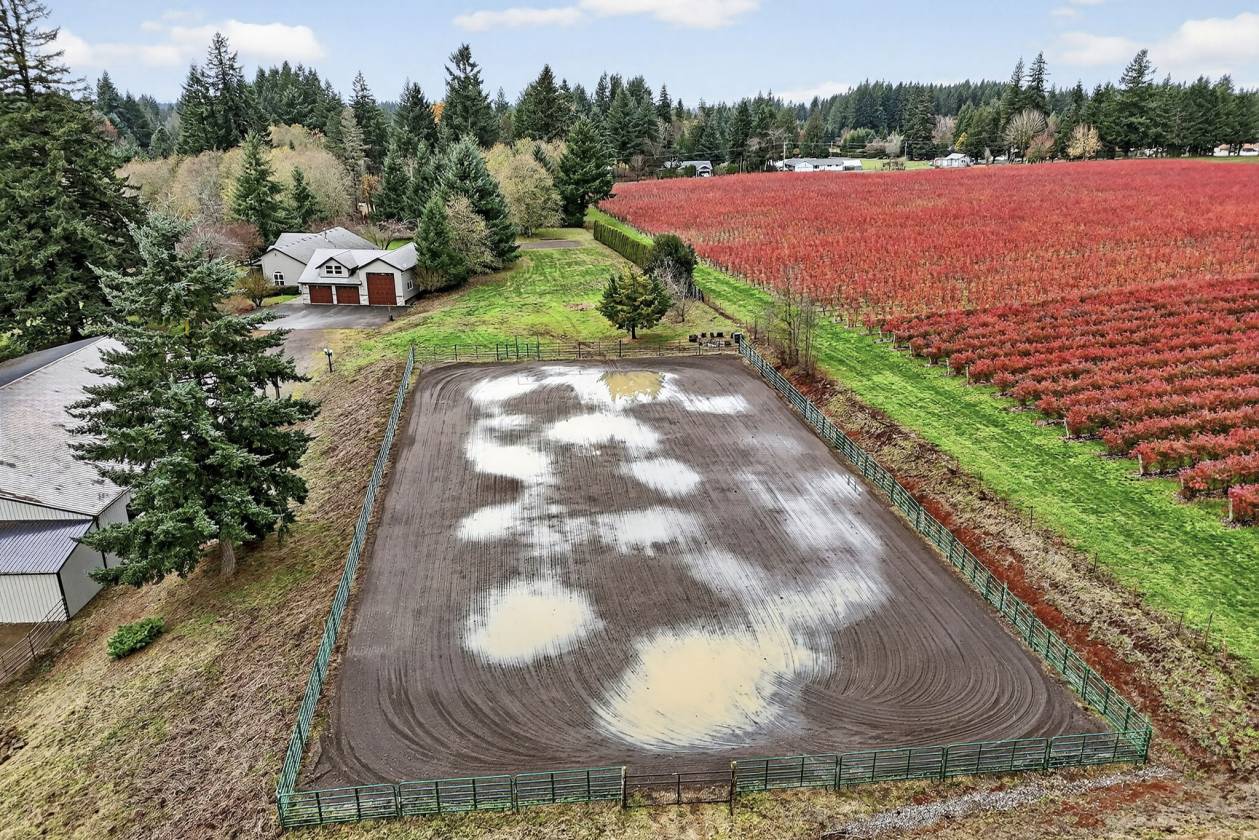 Beyond the gated entrance, at the convergence of tranquil open spaces and end-of-the-road privacy,you’ll discover this move-in ready traditional single-level home,built in 1997, featuring 4 beds and 2.1 baths within 2,538 sqft.Nestled on 15 acres and abutting vibrant blueberry fields,this property offers an idyllic landscape perfect for country living.The inviting and bright interior with hardwood floors,vaulted ceilings,a spacious primary suite,and a foyer office nook,along with sizable bedrooms. The open kitchen is equipped with stainless steel appliances and flows seamlessly into formal living,family,and dining rooms, complemented by a substantial mudroom for added convenience.The oversized, extra-deep 3-car garage provides ample room for RV storage,while a finished upstairs loft offers additional space for hobbies or relaxation.Equestrian enthusiasts will appreciate the extensive amenities,including a 70x80 indoor arena with 8 attached stalls(4 with runs),a large tack room,cross-tie area, and wash rack.The scenic 80x120 outdoor sand arena overlooks beautifully fenced and cross-fenced pastures with over 9 turnout areas.Separate shelters are designed for foaling or retirement needs,ensuring your horses are well accommodated.An auxiliary workshop positioned at the corner of the property features secondary driveway access,providing easy maneuverability with pull-through parking for trailers or equipment.Two additional storage barns cater to hay and bedding needs.Enjoy the outdoors while tending to your garden or chicken coop,or simply wander through the forested pastures and appreciate the serene surroundings, all while benefiting from low farm deferral taxes. Since incorporating in 1913,the local population has maintained under 15,000, fostering a strong sense of community.Located between Clackamas and Mt. Hood Highway,just 15 minutes to Sandy,you have easy access to the nearby Sandy River, Mt. Hood skiing,the Columbia Gorge,and PDX airport within an hour's drive