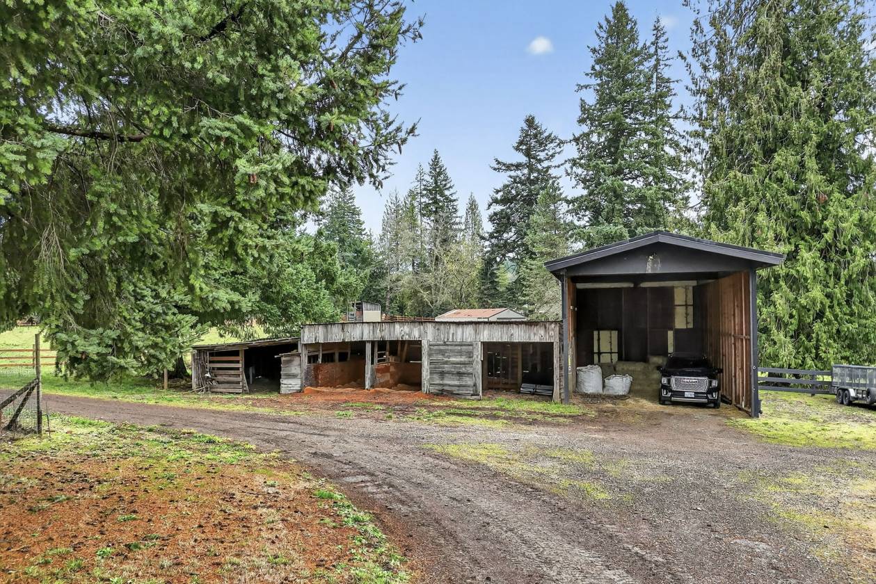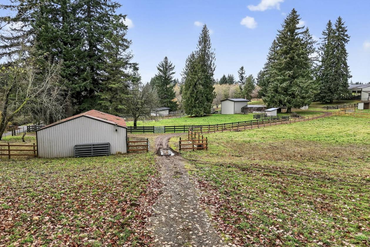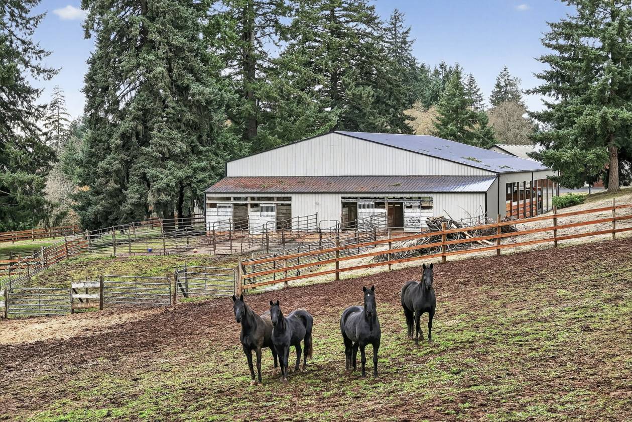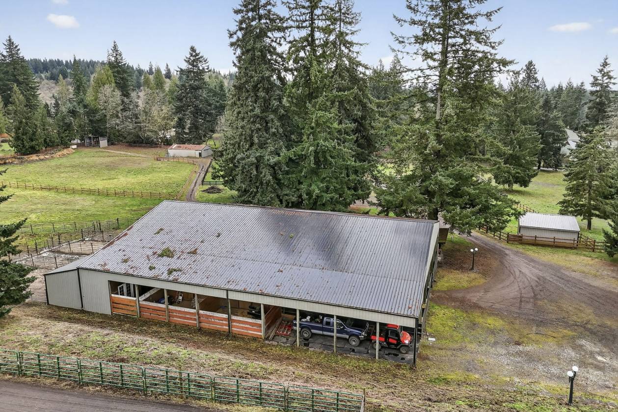 - Equestrian enthusiasts will appreciate the extensive amenities,including a 70x80 indoor arena with 8 attached stalls(4 with runs),a large tack room,cross-tie area, and wash rack.The scenic 80x120 outdoor sand arena overlooks beautifully fenced and cross-fenced pastures with over 9 turnout areas.Separate shelters are designed for foaling or retirement needs,ensuring your horses are well accommodated.An auxiliary workshop positioned at the corner of the property features secondary driveway access,providing easy maneuverability with pull-through parking for trailers or equipment.Two additional storage barns cater to hay and bedding needs.Enjoy the outdoors while tending to your garden or chicken coop,or simply wander through the forested pastures and appreciate the serene surroundings, all while benefiting from low farm deferral taxes. Since incorporating in 1913,the local population has maintained under 15,000, fostering a strong sense of community.Located between Clackamas and Mt. Hood Highway,just 15 minutes to Sandy,you have easy access to the nearby Sandy River, Mt. Hood skiing,the Columbia Gorge,and PDX airport within an hour's drive.