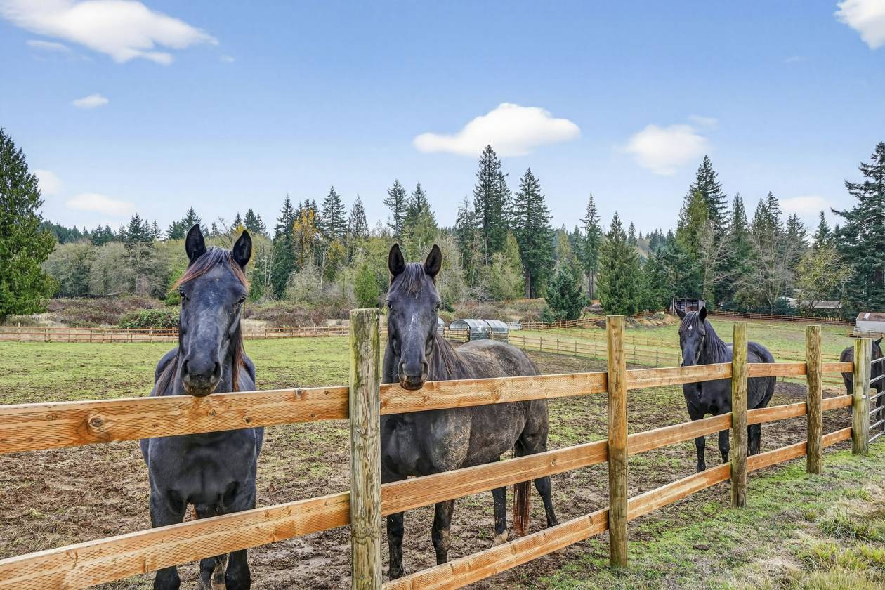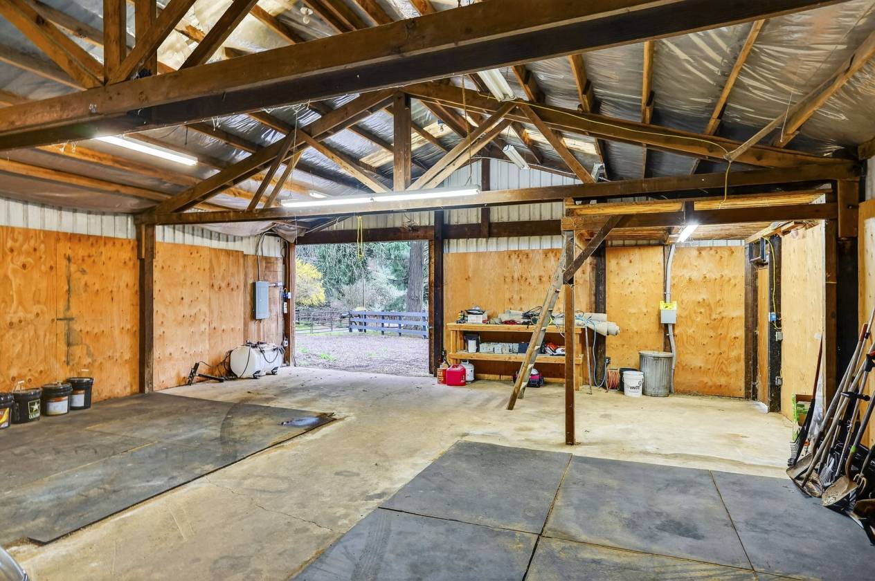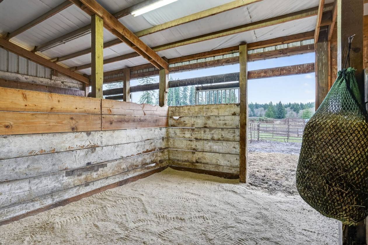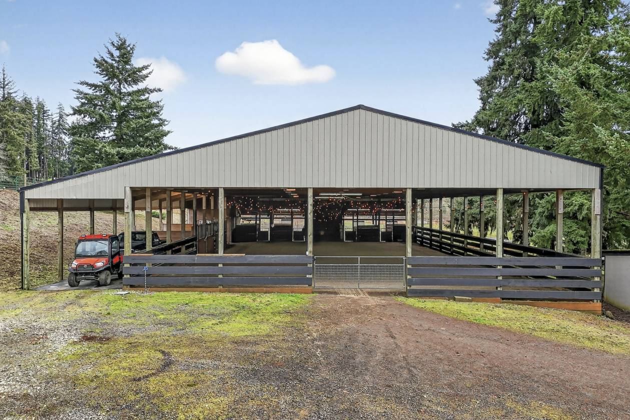 - Equestrian enthusiasts will appreciate the extensive amenities,including a 70x80 indoor arena with 8 attached stalls(4 with runs),a large tack room,cross-tie area, and wash rack.The scenic 80x120 outdoor sand arena overlooks beautifully fenced and cross-fenced pastures with over 9 turnout areas.Separate shelters are designed for foaling or retirement needs,ensuring your horses are well accommodated.An auxiliary workshop positioned at the corner of the property features secondary driveway access,providing easy maneuverability with pull-through parking for trailers or equipment.Two additional storage barns cater to hay and bedding needs.Enjoy the outdoors while tending to your garden or chicken coop,or simply wander through the forested pastures and appreciate the serene surroundings, all while benefiting from low farm deferral taxes. Since incorporating in 1913,the local population has maintained under 15,000, fostering a strong sense of community.Located between Clackamas and Mt. Hood Highway,just 15 minutes to Sandy,you have easy access to the nearby Sandy River, Mt. Hood skiing,the Columbia Gorge,and PDX airport within an hour's drive.