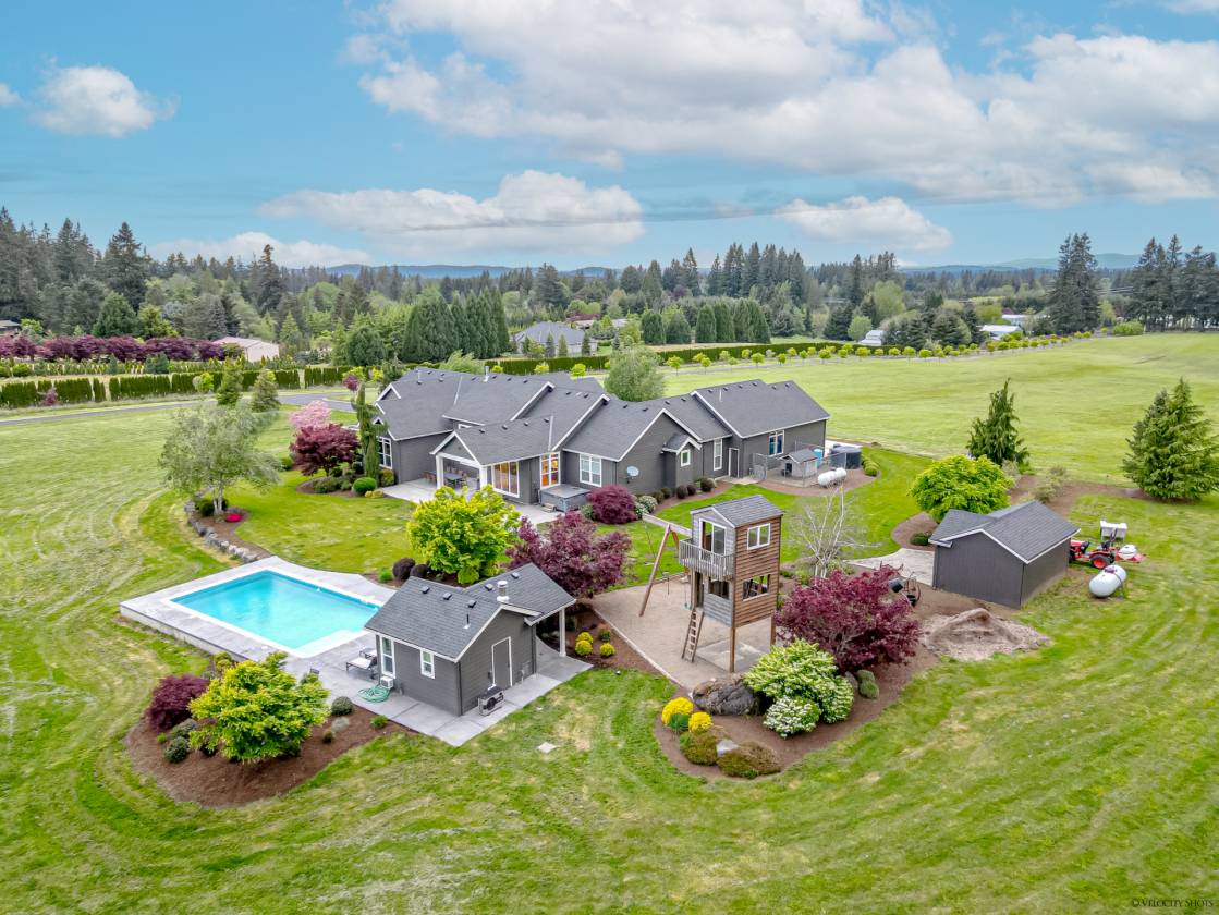 Luxury Equestrian Estate with something for everyone.. 4,223 sf primary dwelling, 60x64sf stick built shop/ag building with concrete floors, car hoist, heat, built in air compressor & 3 large bay doors. Above shop is approx 1,200 sf 2 bd 1 bath guesthouse. Over 12k sf barn and indoor riding arena with up to 9 stalls, tack room, farrier area/wash bay, inground pool, pool house, new 28x63 5 car garage, custom kids playhouse, tractor storage and paved driveways to all structures. Seller is licensed RE Broker. Shown by appointment only for well qualified buyers.