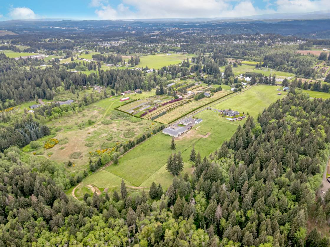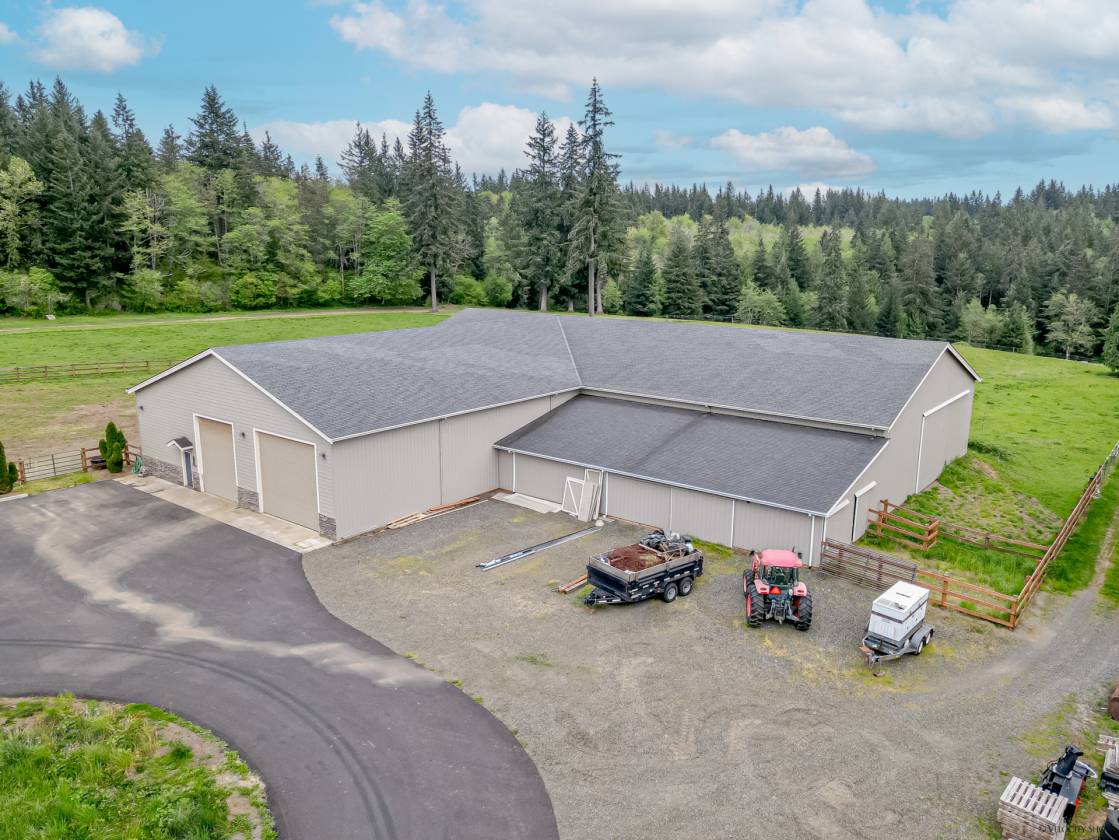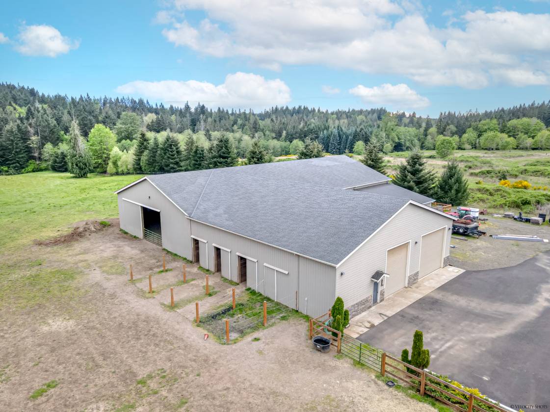 - Over 12k sf barn and arena configured as follows; 60x120 indoor sand riding arena, 60x60 Hay, Tractor, & Trailer Storage with 4 run out stalls and tack room, 60x24 second entrance with farrier/wash bay area with 4 stalls including one that is set up as a foaling stall but could be configured back to two stalls with run outs. Approx 10 acres of pasture fenced and cross fenced into 3 large turn out spaces. AMAZING ingress and egress set up for your biggest rigs to haul in and out with ease. Paved drives to and from the barn with loads of parking for all your visitors, vehicles, and equipment.