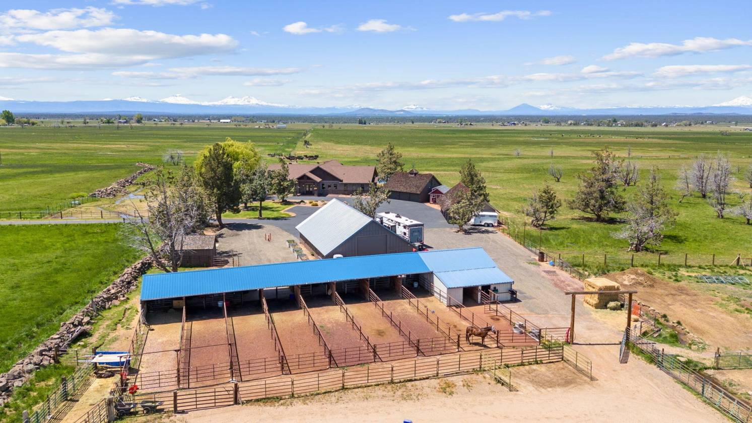 Luxury ranch with turnkey cattle/horse operations located in Crook County- the Cowboy Capital of Oregon. Built around the original homestead, this ranch offers 103 acres with 98 acres of gravity fed flood irrigation- no pumping fees! Fenced and cross fenced for efficient cattle rotation and/or haying operation. Stock ponds in most pastures. Corral with equipment and load out chute. Easy winter feed set up with concrete bunks. Productive high quality hay fields. Cascade Mountain views from all points on the ranch! 2 homes plus ADU. 3700+ sqft Owner's home (see attached features list), 1100+ sqft Ranch manager's home, and well appointed studio. 13 stall horse barn with runs and arena. Two 3 car garages, large shop with 14' doors and 1/2 bath. Two machine sheds... farm equipment available on separate agreement. This offering has so much more than can be listed here.