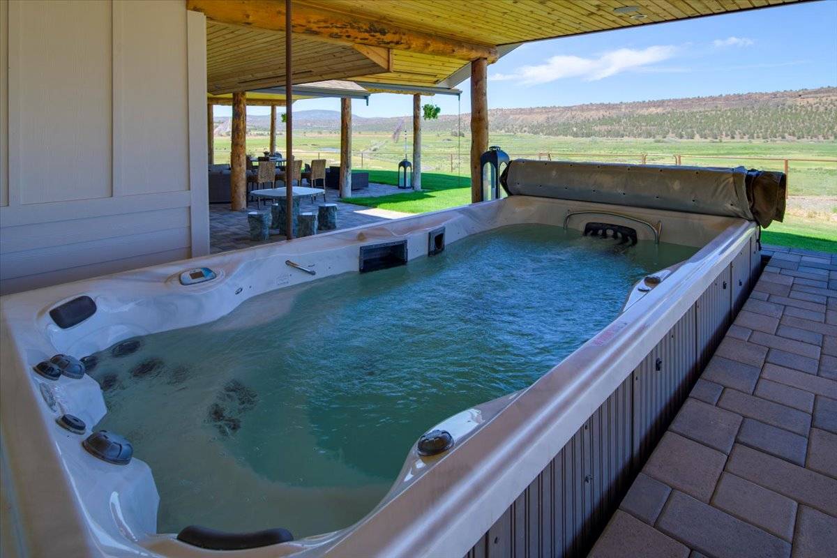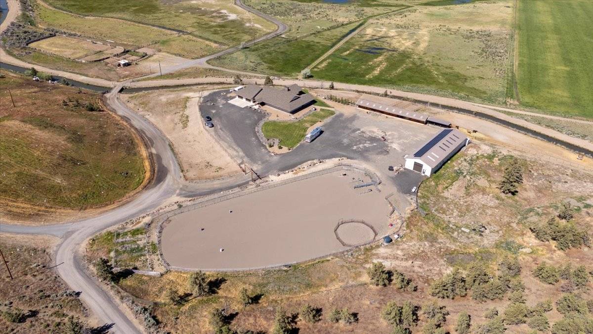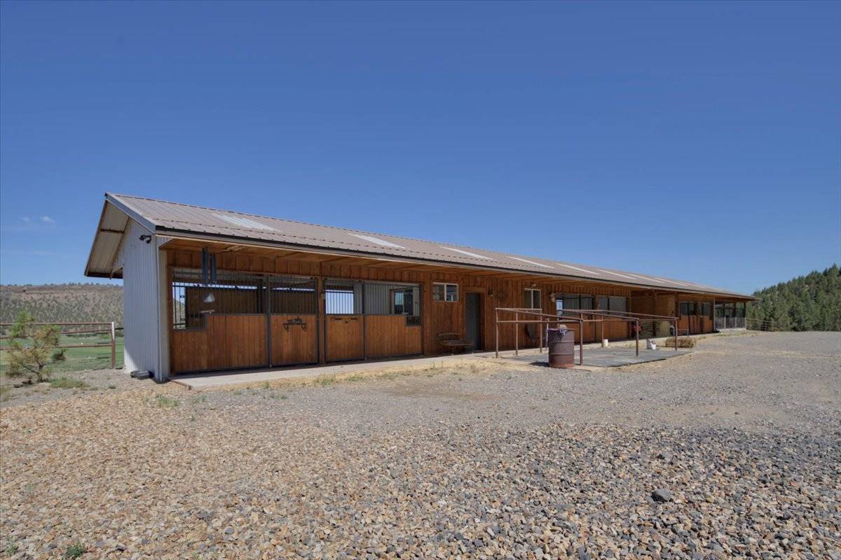 This exceptional custom ranch blends modern elegance with rural charm, just minutes from Prineville. Enjoy breathtaking views of the Crooked River Valley from the beautifully designed single-level home, featuring hardwood floors, granite countertops, a copper farmhouse sink, and a chef's kitchen with a spacious island, stainless steel appliances, and the butlers pantry provides ample storage. The great room and expansive covered back patio with a fireplace, swim spa, and lush landscaping create an entertainer's dream. The private primary suite boasts a spa-like bath, a huge walk-in closet, and peaceful views. A generous den offers flexibility as an office or extra bedroom. Equestrian enthusiasts will love the six-stall barn with large runs, tack room, roping arena, and cattle turnouts. A 3-bay shop provides abundant storage, workspace, and guest quarters. Whether you're seeking a working ranch or a private retreat, this property offers the perfect blend of comfort and functionality. Includes solar panels! No HOA's or CCR's.