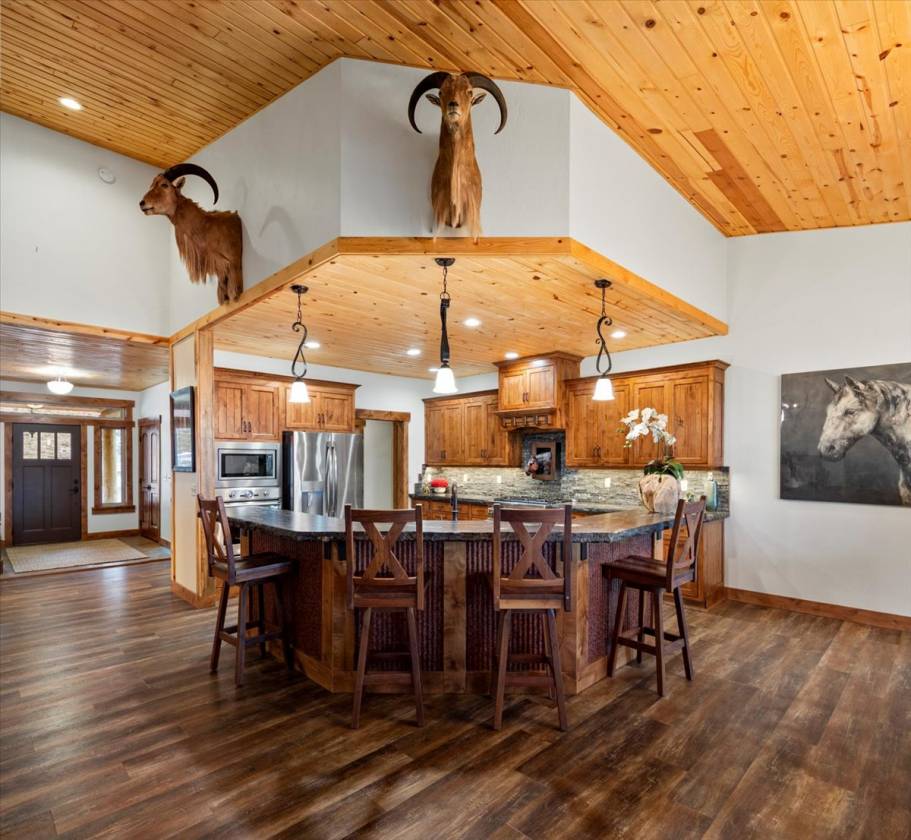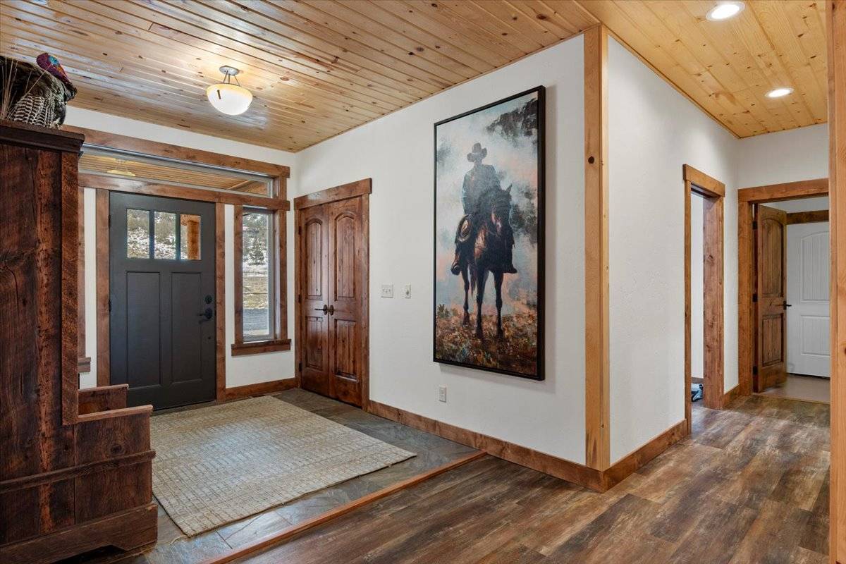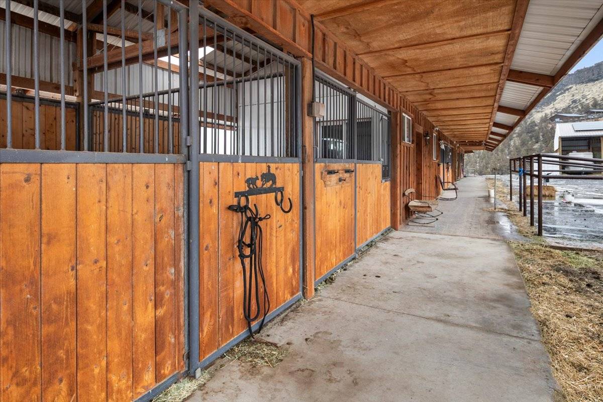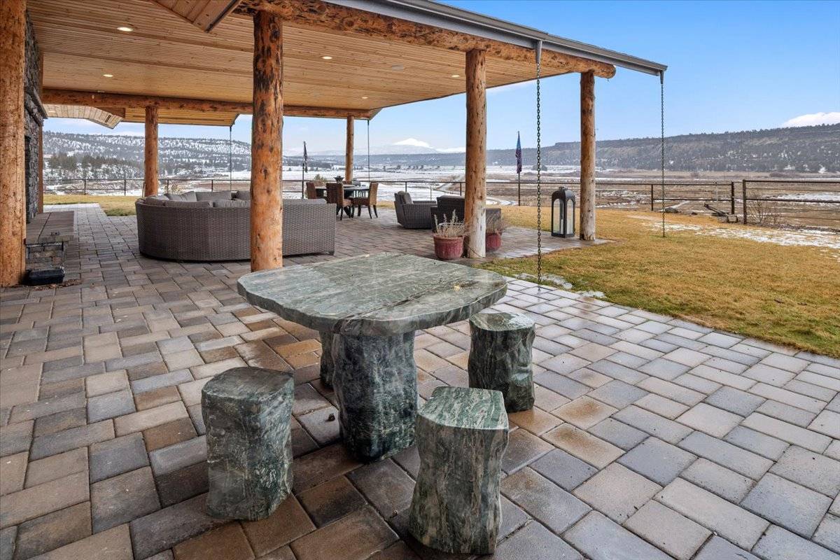 This exceptional custom ranch blends modern elegance with rural charm, just minutes from Prineville. Enjoy breathtaking views of the Crooked River Valley from the beautifully designed single-level home, featuring hardwood floors, granite countertops, a copper farmhouse sink, and a chef's kitchen with a spacious island, stainless steel appliances, and the butlers pantry provides ample storage. The great room and expansive covered back patio with a fireplace, swim spa, and lush landscaping create an entertainer's dream. The private primary suite boasts a spa-like bath, a huge walk-in closet, and peaceful views. A generous den offers flexibility as an office or extra bedroom. Equestrian enthusiasts will love the six-stall barn with large runs, tack room, roping arena, and cattle turnouts. A 3-bay shop provides abundant storage, workspace, and guest quarters. Whether you're seeking a working ranch or a private retreat, this property offers the perfect blend of comfort and functionality. Includes solar panels! No HOA's or CCR's.