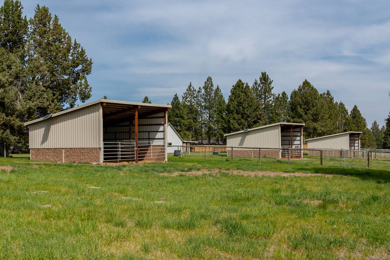 - Quality constructed 3 - 25’ x 25’ horse barns, automatic waters, two Noble-panel stalls per barn, totaling 6 stalls, provides adequate separation and flexibility. Enjoy outdoor riding arena and tack room. Endless trail riding nearby and throughout Central Oregon!
