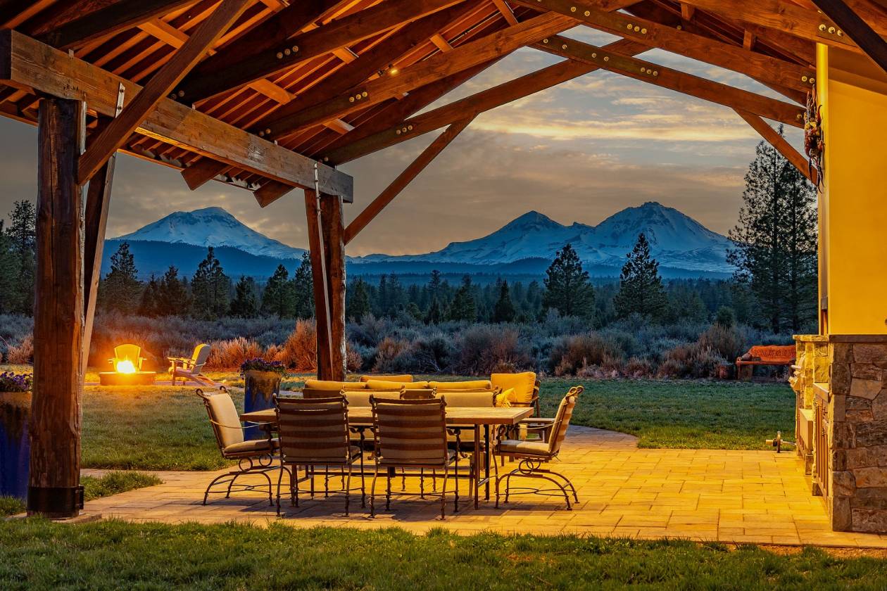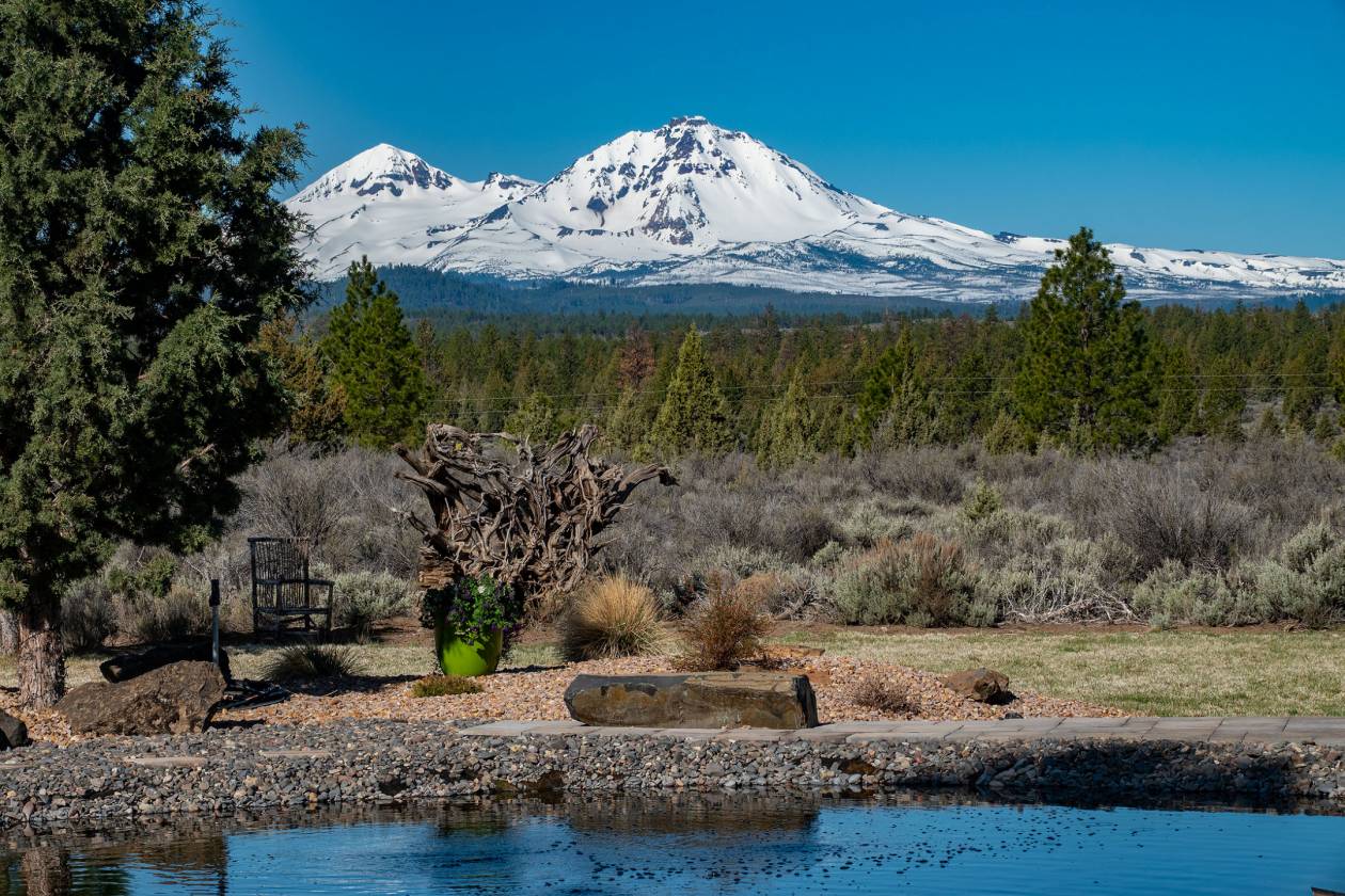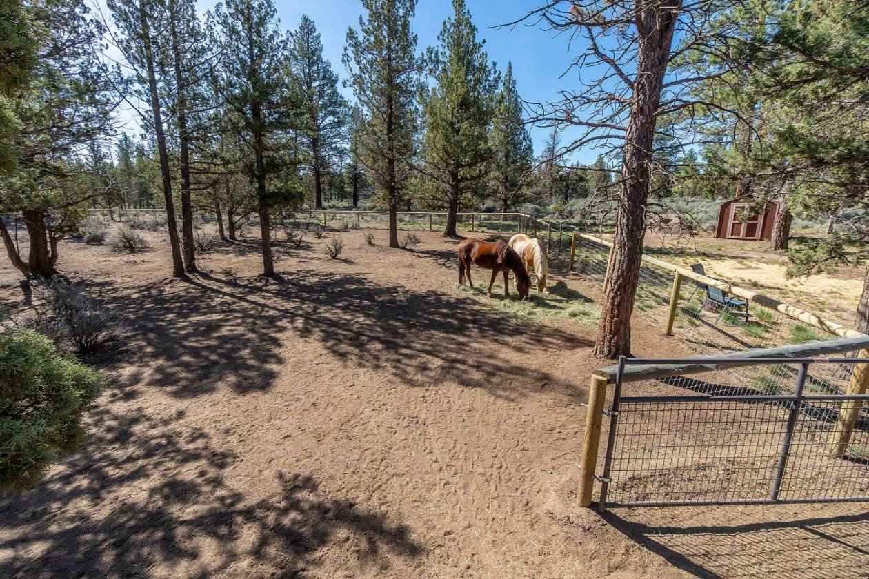 Rare meticulously managed 121.7 acres of sandy loam soil & old growth pine bordered by the Nat’l Forest with up close full views of the Cascades. 13 min. to Sisters, 28 min. to downtown Bend, serviced by the Redmond Airport hosting major airlines. Custom designed home by Steve Martin Construction, one level 1744 sq ft. 3-bed, 2-bath. Open concept living, knotty pine throughout. Propane stove, granite counters, slate flooring, pantry, floor to ceiling slate propane fireplace. Lg primary suite w/walk in closet, soaking tub/shower w/slate & granite counters. 2 adtl bedrooms & full bath. Expansive green space w/ Nathan Good Architects designed timber Pergola w/ rare Idaho Glacial Stone, copper sink, custom cement counters, propane FP, BBQ & large fire pit, Jamestown pavers paths. pond, pebble beach, lit waterfall, stargazing patio. Corral, fenced pasture, well designed hay & tack storage. 100s of miles of adjacent riding, hiking & mountain biking. Once in a lifetime privacy, peace & beauty.