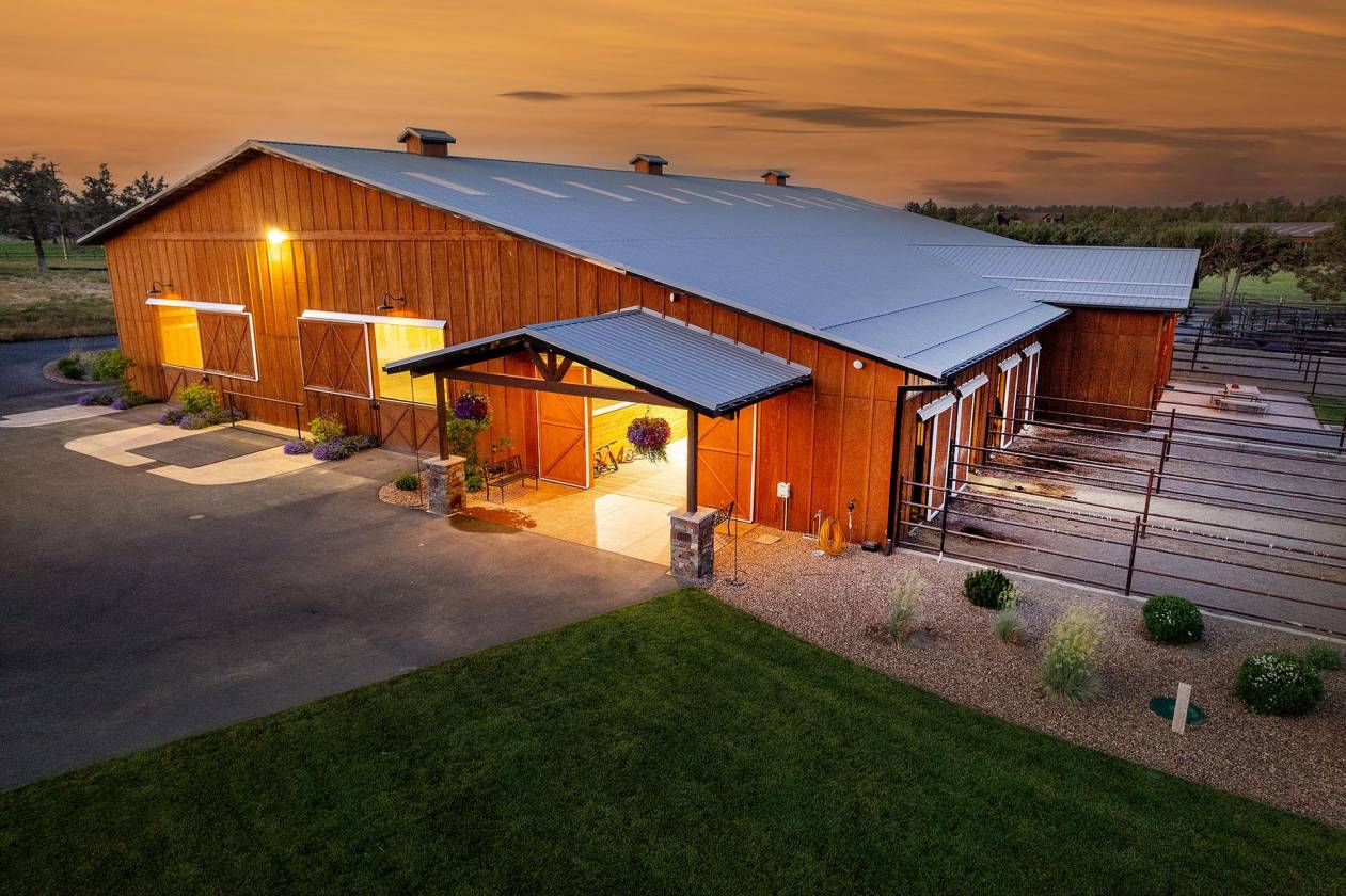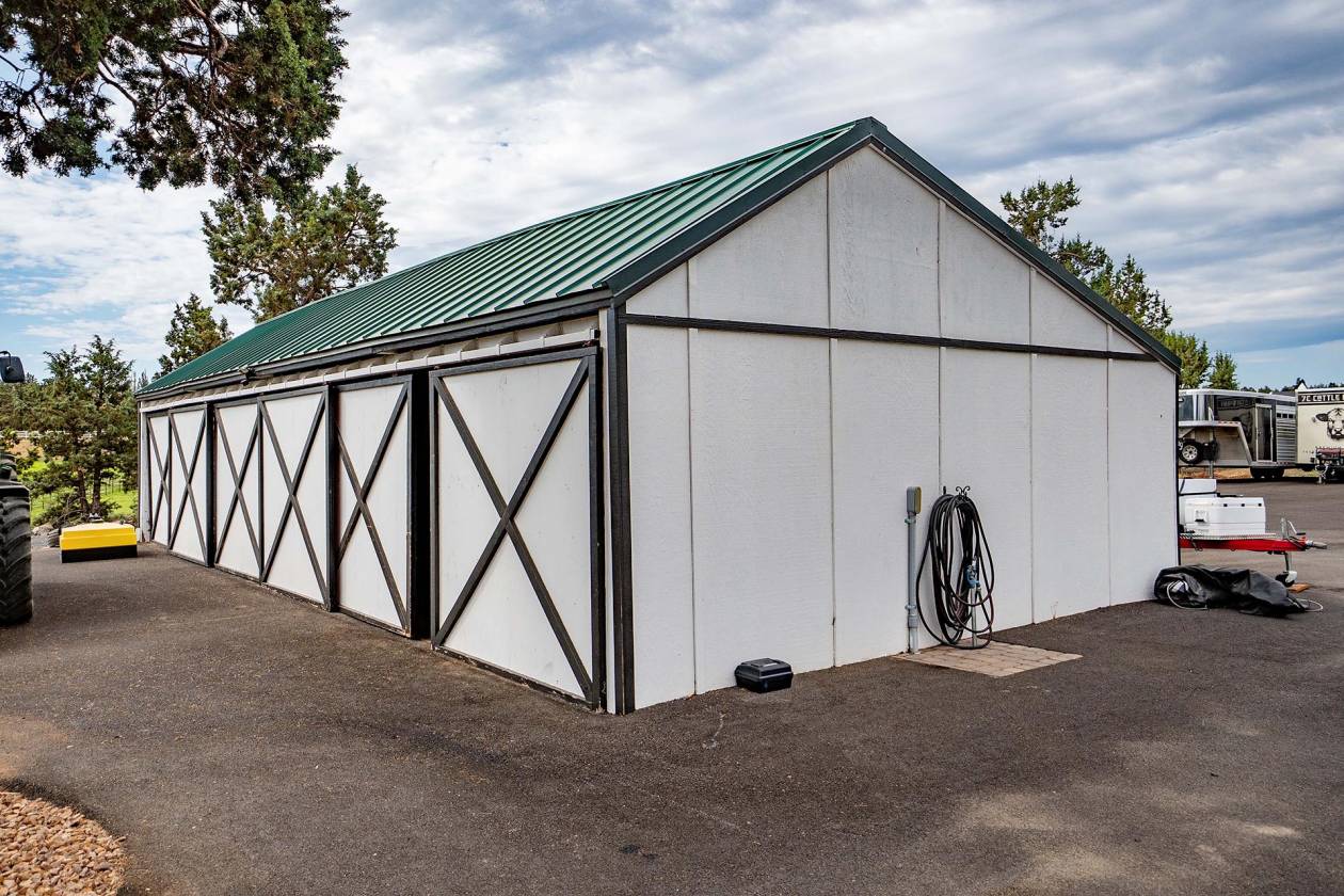 A truly remarkable property that could be the daydream of any horse enthusiast, Horseman’s Dream of Central Oregon, is as advertised. This 35.21± acre estate backs up to Bureau of Land Management (BLM) land in one of Oregon’s most desirable rural areas, Tumalo. This property is designed to leave nothing to be desired, boasting a luxurious 3,000± square foot, five-bedroom, five-bathroom (three are suites) home with luxury finishes, a covered outdoor patio and four-car garage. Additionally, it has a recently built (2021) 1,862± square foot hobby building with multiple rooms that could serve as bedrooms or offices, two bathrooms, and a fully covered and screened outdoor kitchen. Both structures have been recently built or remodeled with impeccable care. This is the horseman’s dream. The recently built (2021) indoor arena with eight stalls (with runs), washroom, tackroom, feed room, multiple hay storage, automatic watering system for the arena, heated/automatic water for the horses, and endless details will make your days with the ponies much easier. Add to that a trail course, Priefert hot walker, outdoor roping arena, all custom pipe fencing, irrigated pastures, automatic waters, and a round pen, and you will be hard pressed to find an amenity needed for equine activity. Additionally, those who love to work a cow or two will see the small feedlot as an excellent addition for those working cow horses, or those who want to diversify their livestock investment. Now, this “dream” happens not only in vibrant Central Oregon but also in the small rural community of Tumalo. Located between the cities of Bend, Redmond, and Sisters, Tumalo is renowned for its close-knit community, small farms, and horse properties. Many find that Tumalo offers the best balance between country living and proximity to Bend’s economic/cultural center. If you dream about spending your days around spoiled ponies, riding out of the weather, having room for your family and friends, we have that dream.