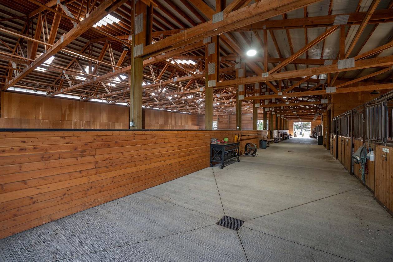 - Indoor arena built in 2021, with eight stalls with runs, a tack room, a wash room, hay storage, and more