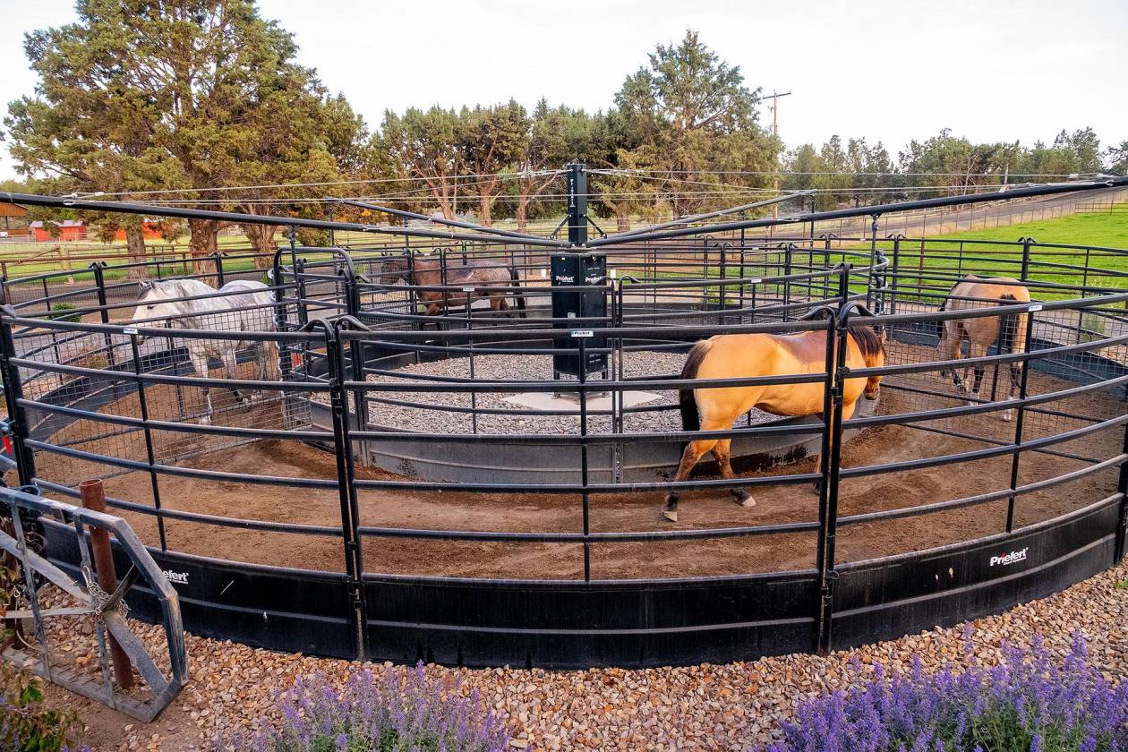 - The entire property is fenced with welded pipe, including all runs, paddocks, pastures, a round pen, and an outdoor arena