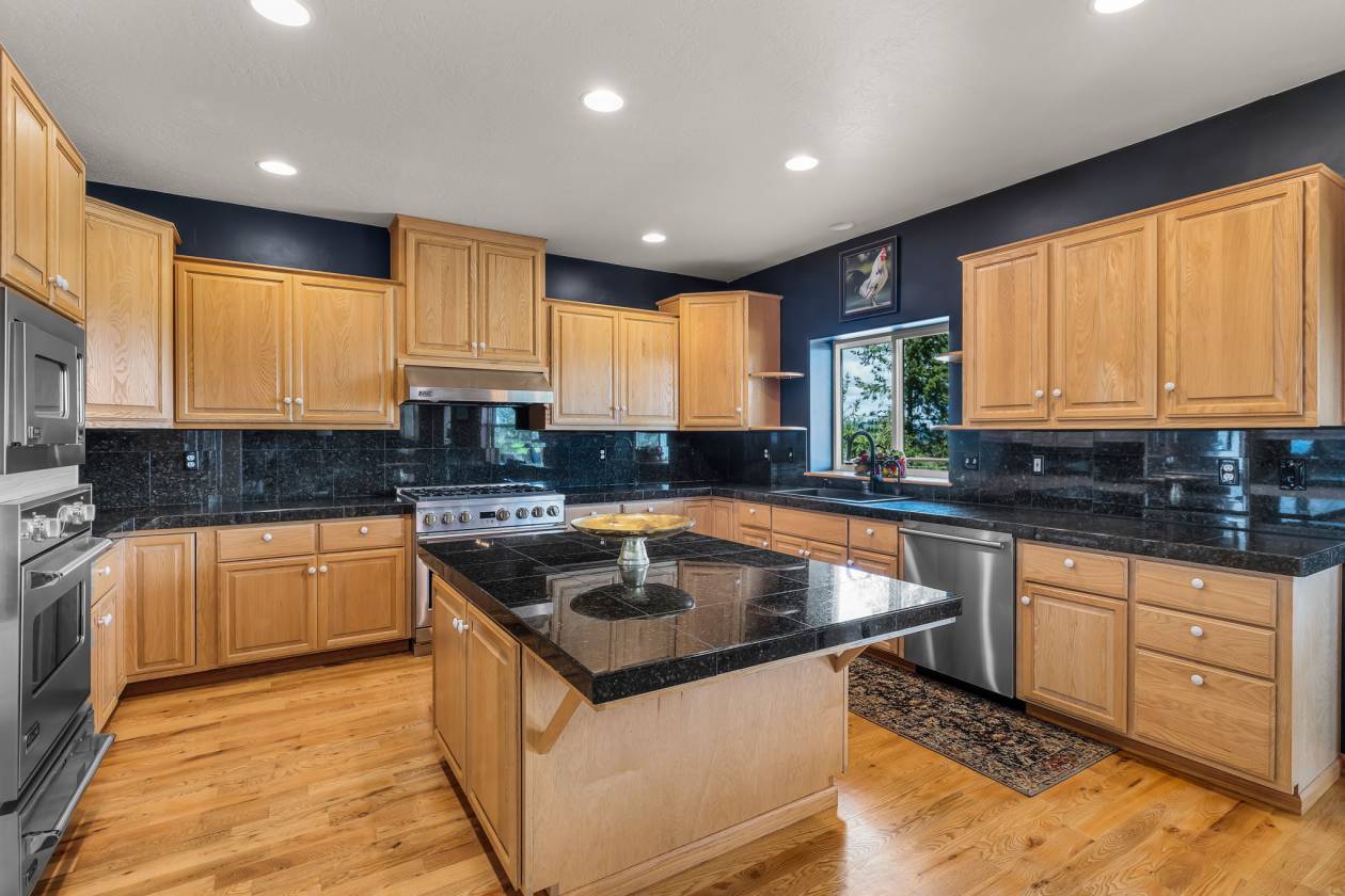 This sprawling estate spans 89+ acres of pristine land with 18 irrigated acres, offering stunning 360-degree views. The centerpiece is a lavish 5938 square foot home with a three car garage and covered carport. Inside, high end finishes and an open floorplan create a luxurious ambiance including new appliances, oak flooring, new carpet & new roof. The main level features the primary bedroom, two additional bedrooms, an office, and living space, while upstairs, a spacious entertaining area leads to a self-contained fourth bedroom with a separate entrance, a perfect guest retreat or potential rental. Outside, a 5000 square foot shop/ag building with full bath, caters to various needs, complemented by an exceptional covered arena with 34 stalls, tack room, and washroom, ideal for equestrian enthusiasts. Other amenities a covered patio, fire-pit, gazebo, owned solar, an RV hookup, and fuel reduction/tree clearing. OWC