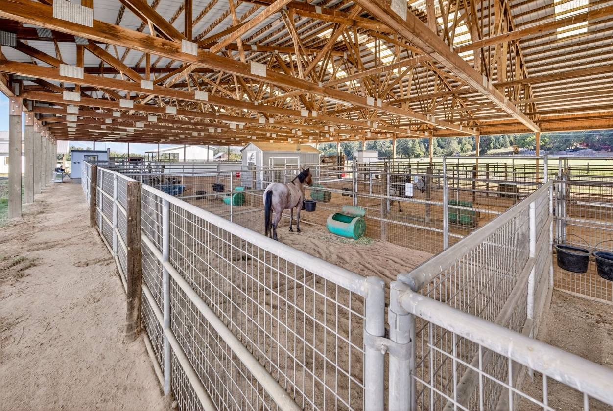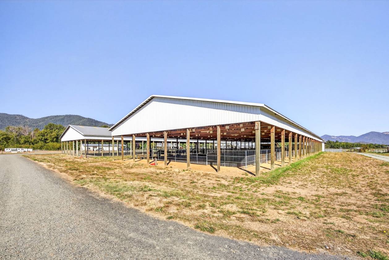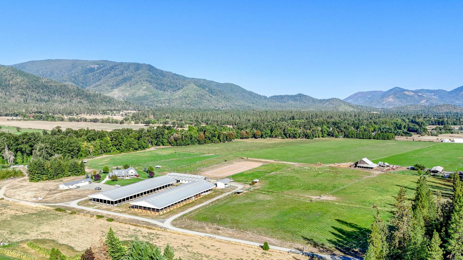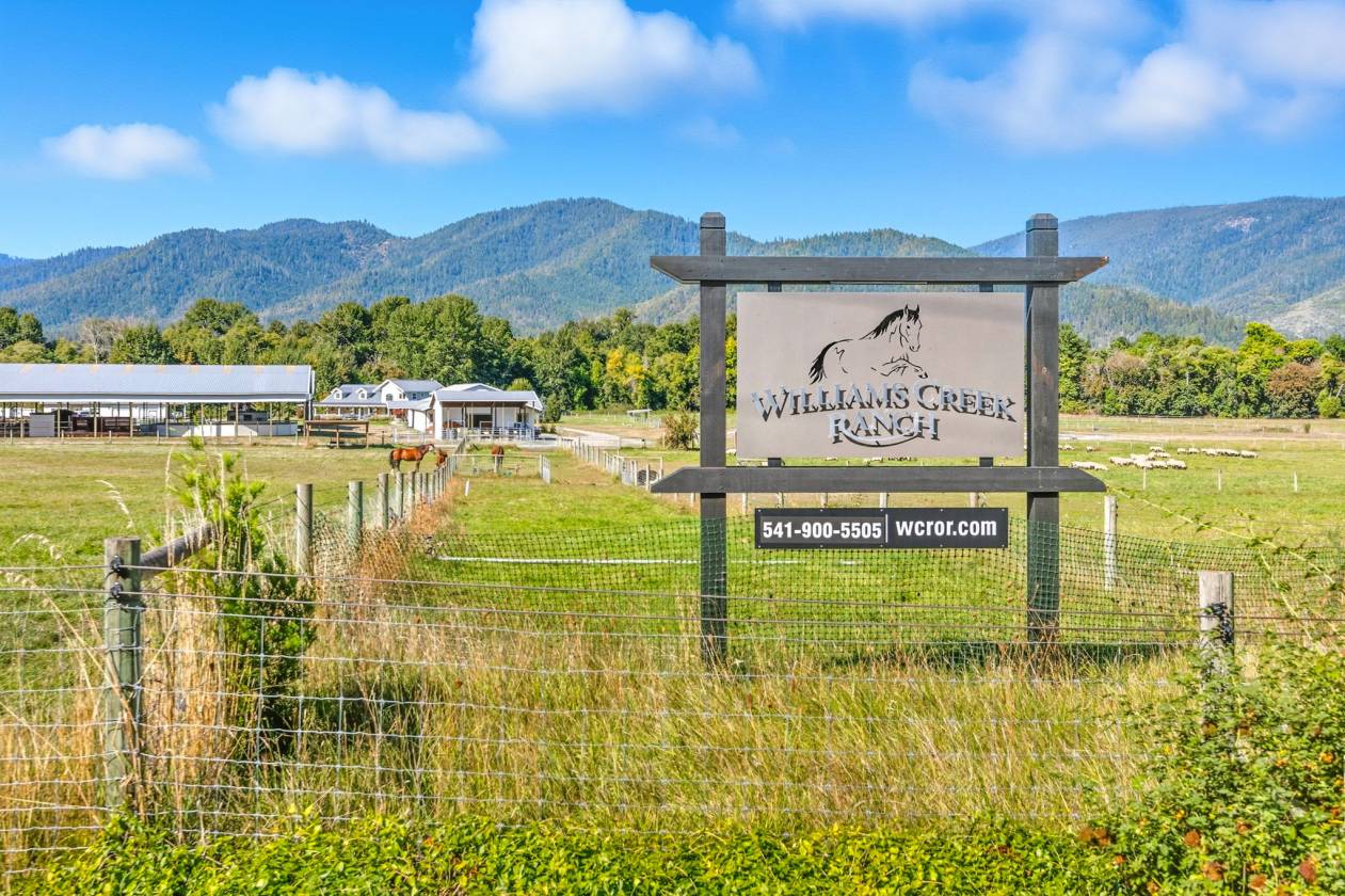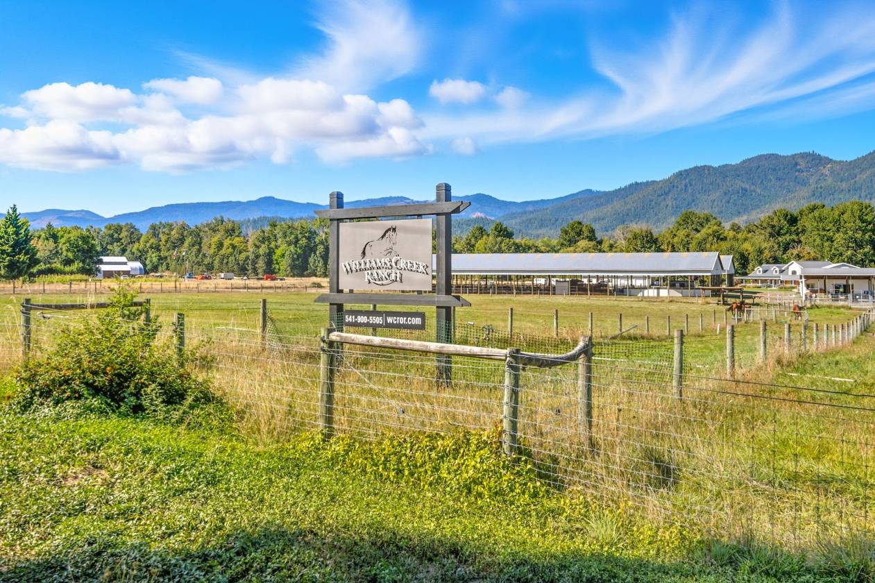 Williams Creek Ranch - a premier income-producing equestrian estate in the heart of Southern Oregon's Williams Valley. This turnkey horse training and boarding operation offers over 50,000 sq.ft. of covered equestrian facilities, including a professional indoor riding arena, training barn, stall barn, and shop, as well as an outdoor dressage court and round pen ideal for clinics, events, and long-term boarding income. The property features 1,200 feet of year-round creek frontage, multiple irrigated pastures, fenced paddocks, and scenic riding trails for various experience levels. The 3,900± sq.ft. custom farmhouse blends rustic elegance with modern design, while a second dwelling unit provides excellent rental or staff housing potential. Surrounded by panoramic mountain and valley views, this remarkable property combines lifestyle, location, and strong commercial potential, offering one of the region's finest opportunities to own a fully equipped, income-generating equestrian ranch.