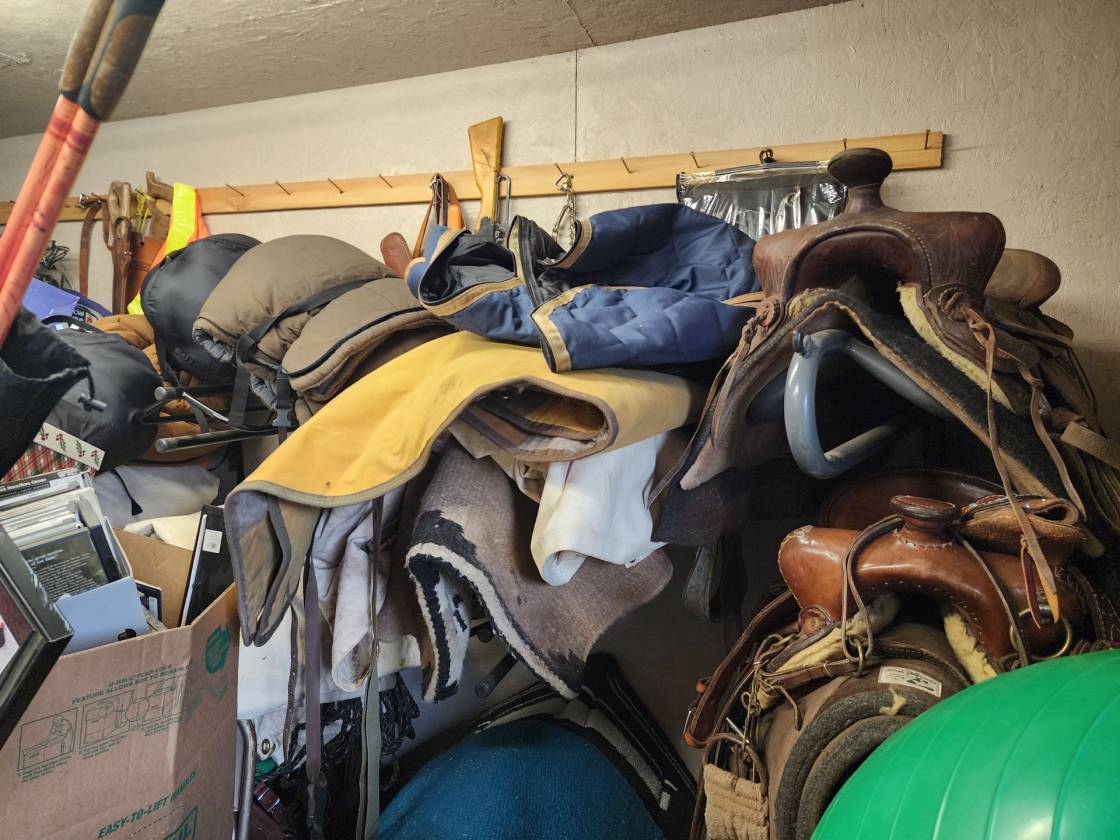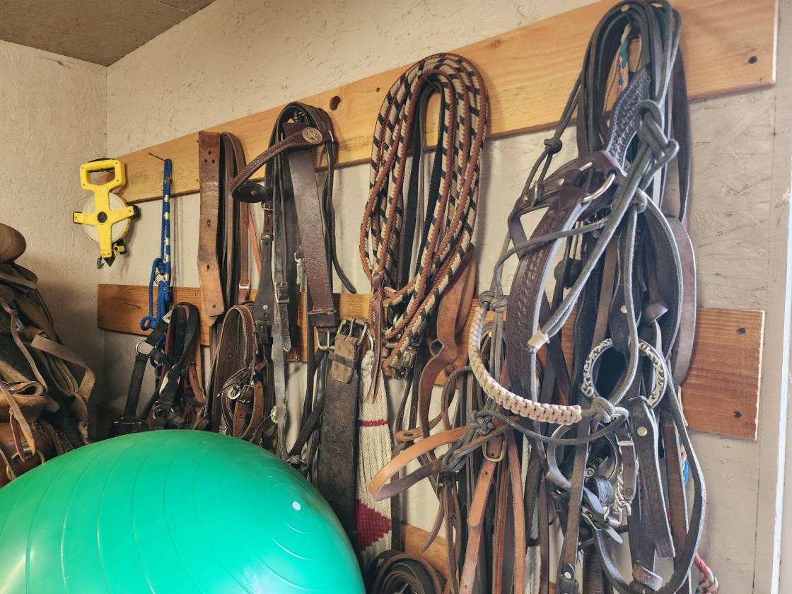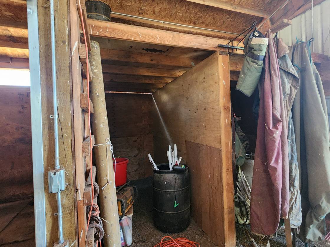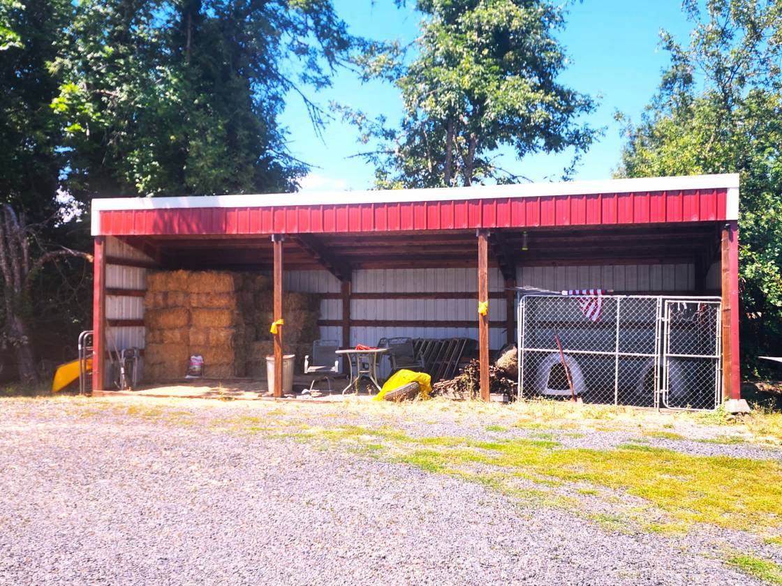 - Outbuildings include a hobby/tack room and a separate storage/canning room. A 3-bay ag building—perfect for hay storage, extra parking, or your favorite toys. Barn with 4 stalls, 2 equipment/tack rooms that could be extra stalls, ability to remove wall to expand stall for foaling and full water and electric access. Fenced and cross-fenced paddock space for livestock or horses.
