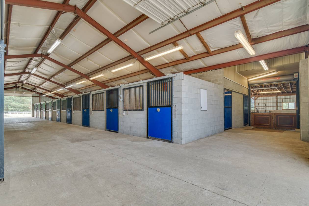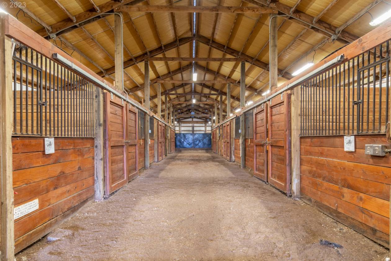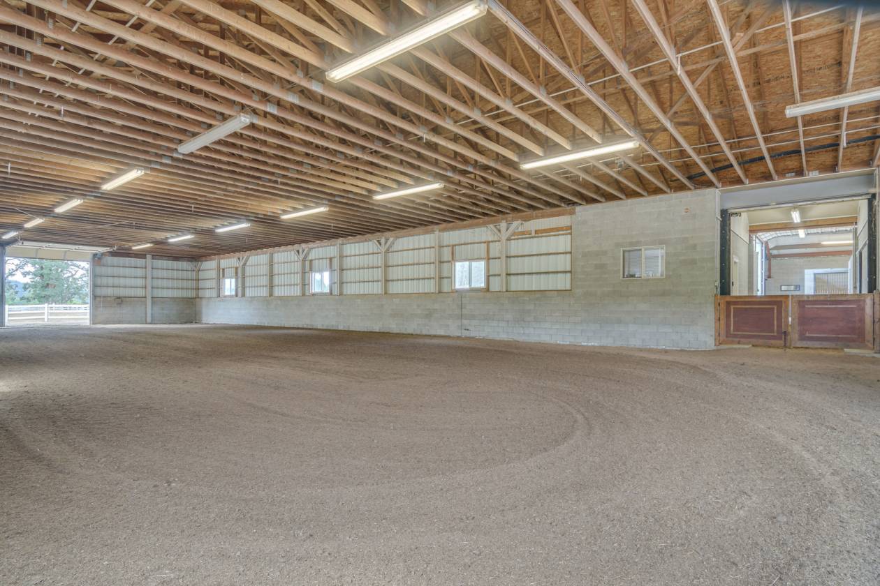 - MAIN BARN & ARENA: 17,000 sqft facility with 18 cinder block stalls, hay storage, laundry, washroom, and an office with a restroom. Attached is a large, covered riding arena/livestock area (50'X220'). Many surrounding fenced pastures. Plenty of room for equipment storage. Partial RV hook up and parking!