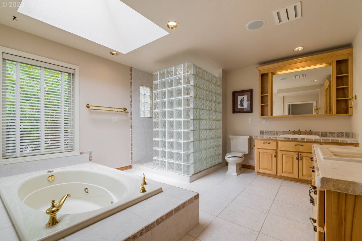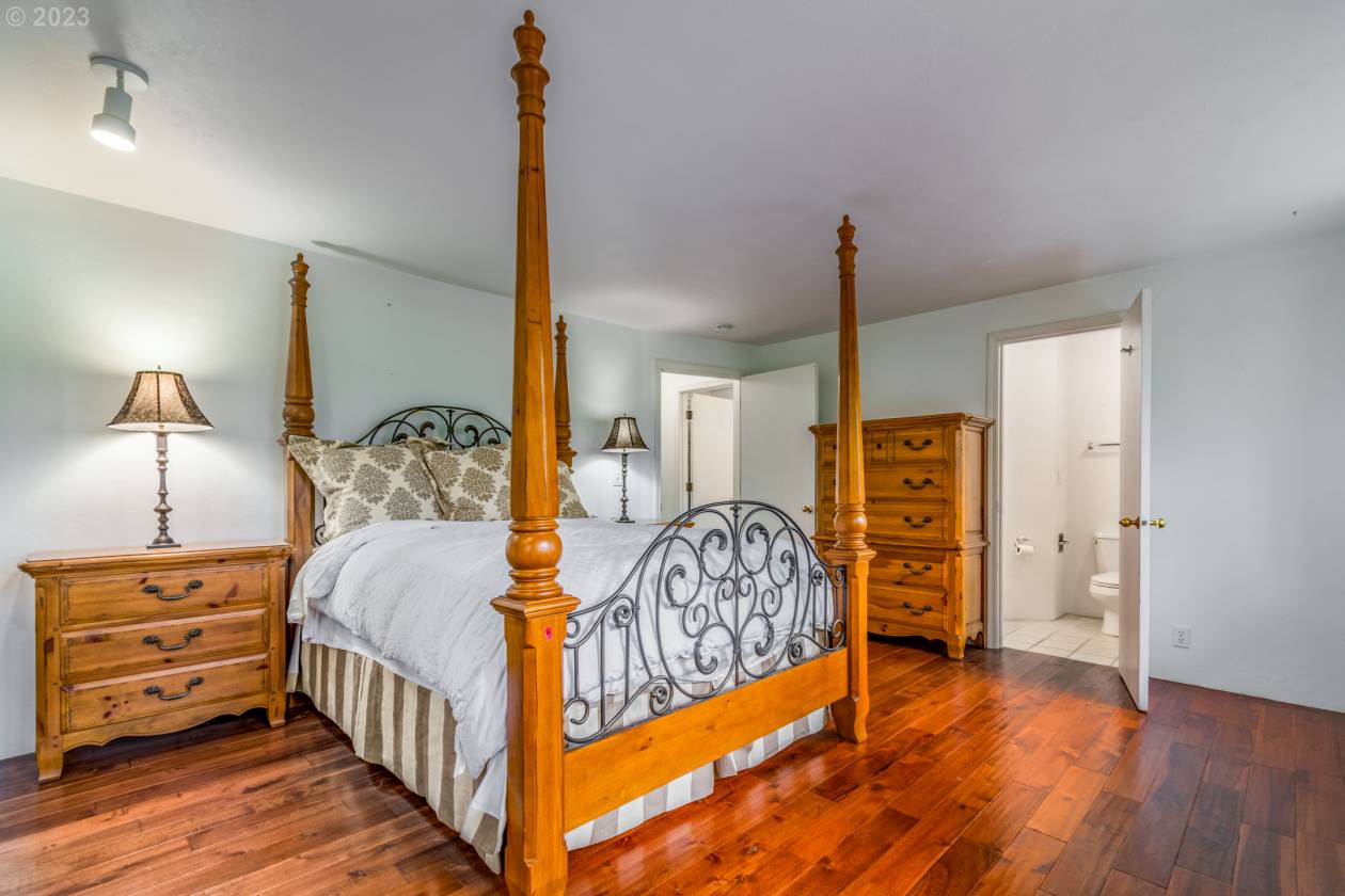 - Guest House: 1400 sqft home with 1 primary suite, 2 full bathrooms. Attached two-car garage. Completely renovated in 2013. Sits against the hills to the North. Total privacy, with views overlooking the farm, and up into the forested hills behind the house!