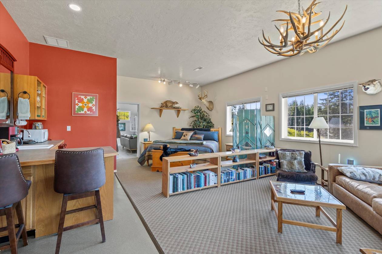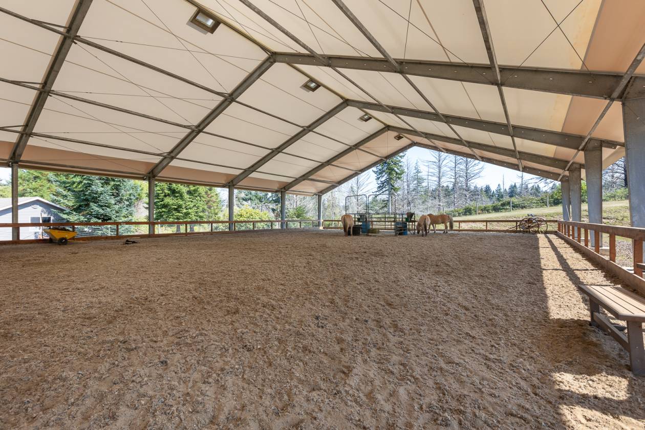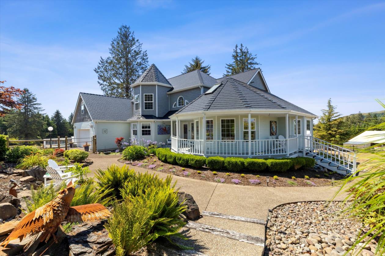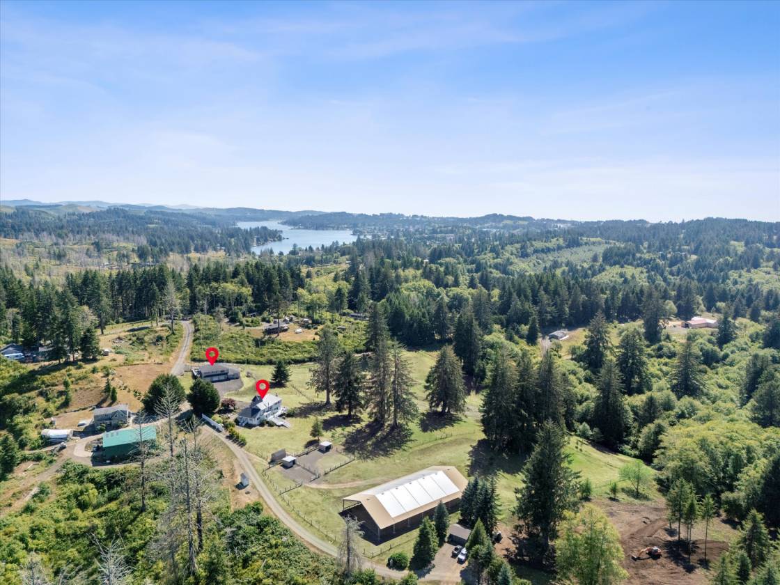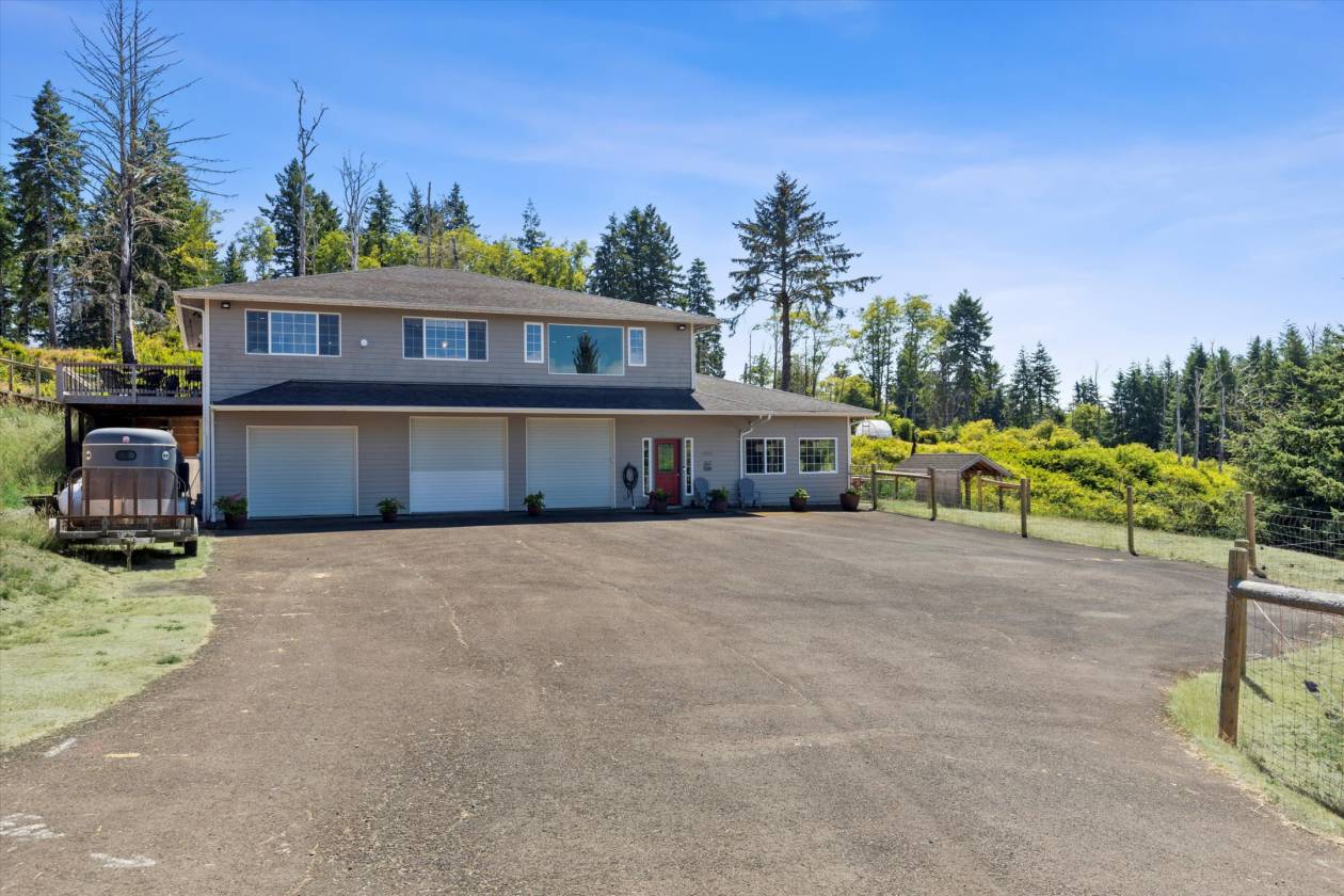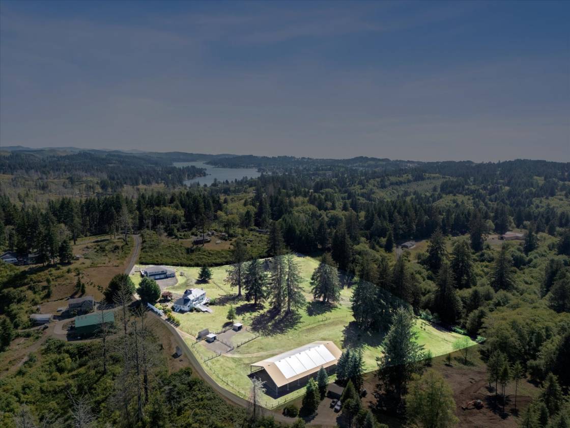 Captivating coastal estate offers unparalleled style, views of Cascade Head mountain range nestled on nearly 10 acres within minutes to the beach and Lincoln City's amenities. Property features an immaculate luxury main house, recently remodeled guest house/ADU with studio for additional investment potential. Delight the chef in the superb kitchen featuring Wolfe, Subzero and Dacor appliances with double doors to the wrap around deck. Formal and casual spaces on the main level including a cozy living area, sitting room and home office. Oversized primary suite with an adjoining workout room plus spa-inspired ensuite bath including heated floors! For the horse enthusiast-the Legacy commercial grade covered arena, fenced pastures, paddocks & Noble shelters. Garage parking for 7 cars. Recent improvements include 24kw Generator for both houses, Central Air Conditioning for both houses, remodel and updates of guest house/ADU, Perimeter fencing and field clearing, EMP protection generator and electrical repairs to the main home.