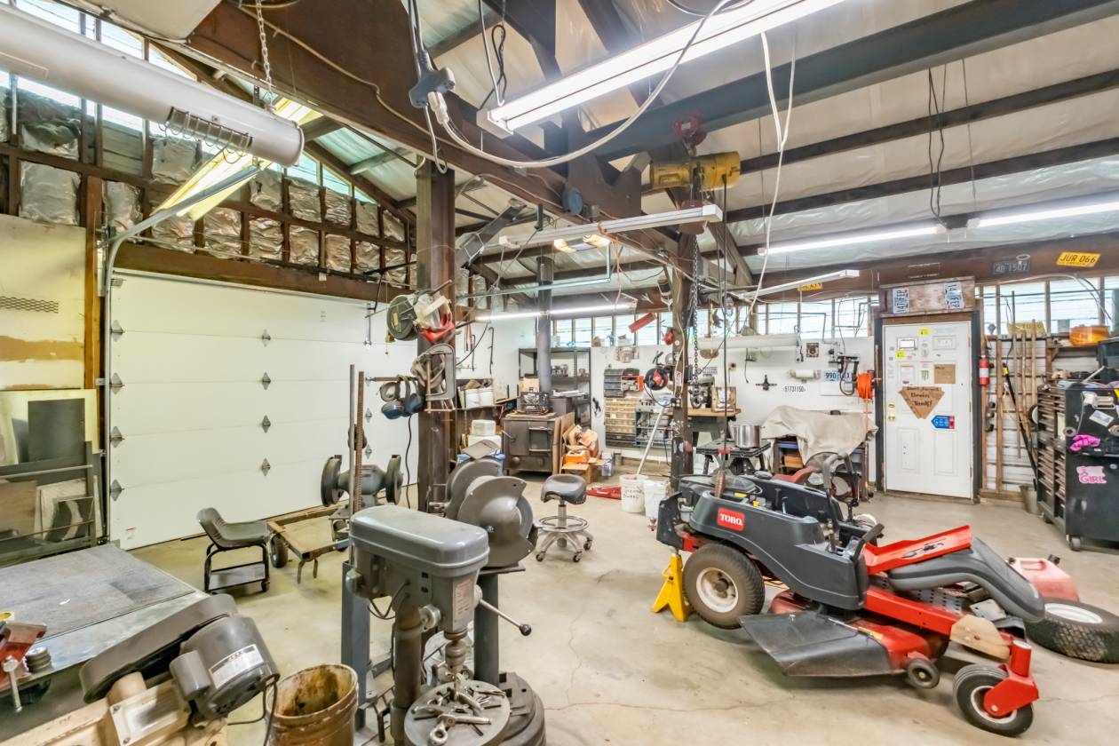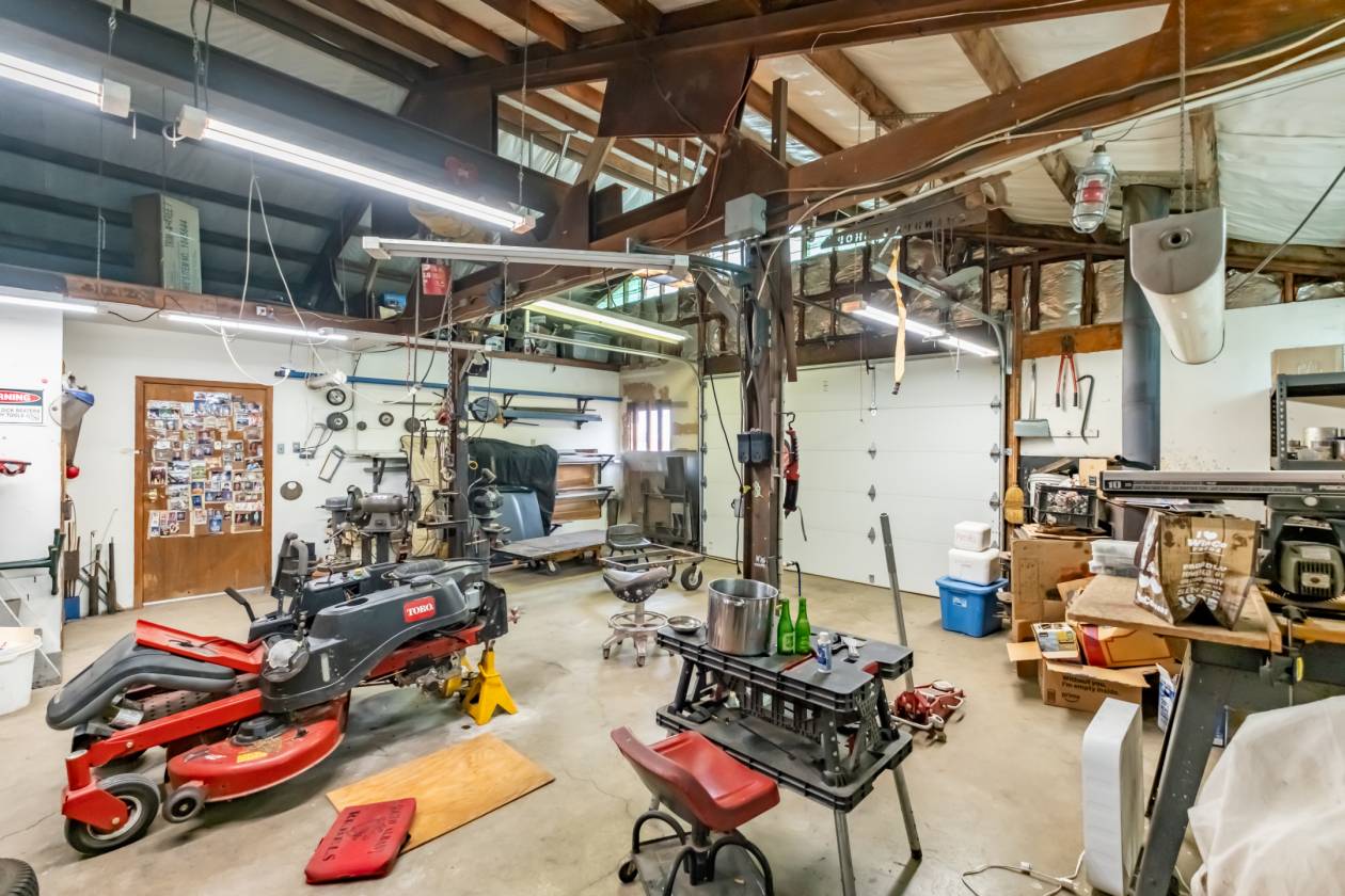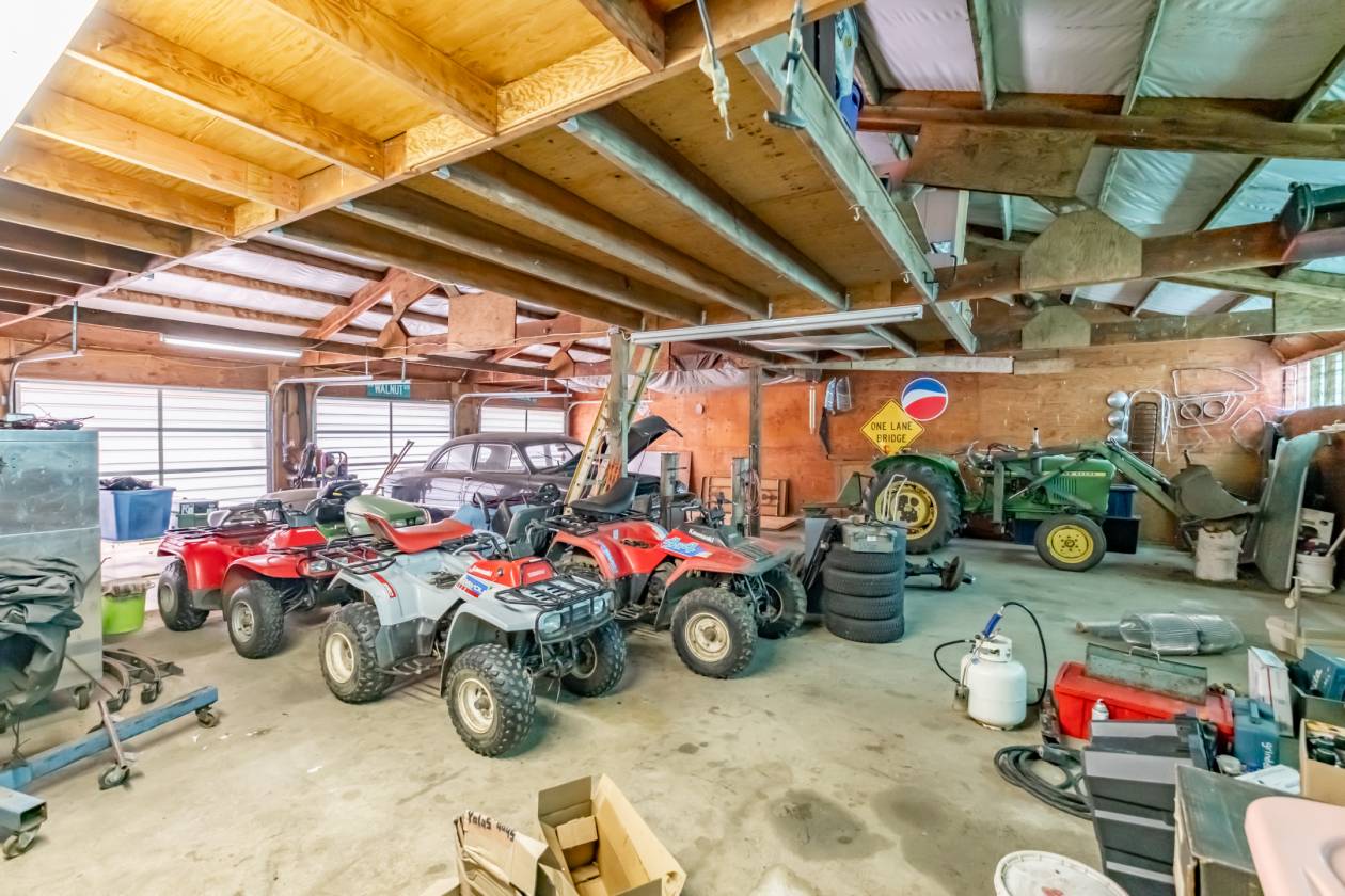 The property's utility is unmatched. The extensive barn has four stalls and a hayloft. The six-bay, double-deep shop is an automotive/ hobbyist enthusiast's dream, room for parking approximately nine cars. It includes a dedicated paint booth and a fully equipped machine shop. There is over 100 ft long paved parking with also Rv parking, plus blacktop parking in front of the shop, extra buildings for storage,