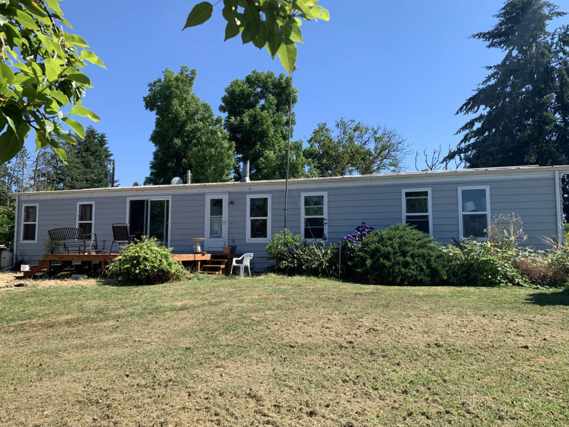 - This manufactured home is a double-wide constructed in 1977. The home has been detitled and is in good condition with a metal roof, covered front porch on the front and a front porch on the back with beautiful views to the west. The master bedroom suite is located on one end of the home with the other three bedrooms and bathrooms on the other end. The master is a good size with a walk-in closet and a bathroom with a separate tub and shower. There is a newer pellet stove in the living room that has no problem heating the home. The home has newer vinyl double pane windows. This property is located only 4 miles from Stayton, Oregon and is serviced by Stayton School District and the Stayton Fire Department. Financing information is available upon request (20% down on a conventional loan).