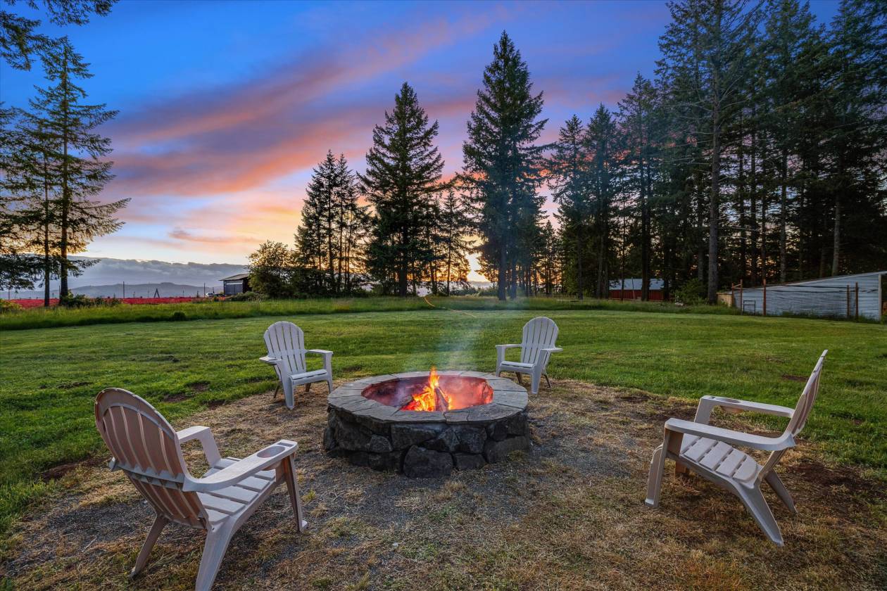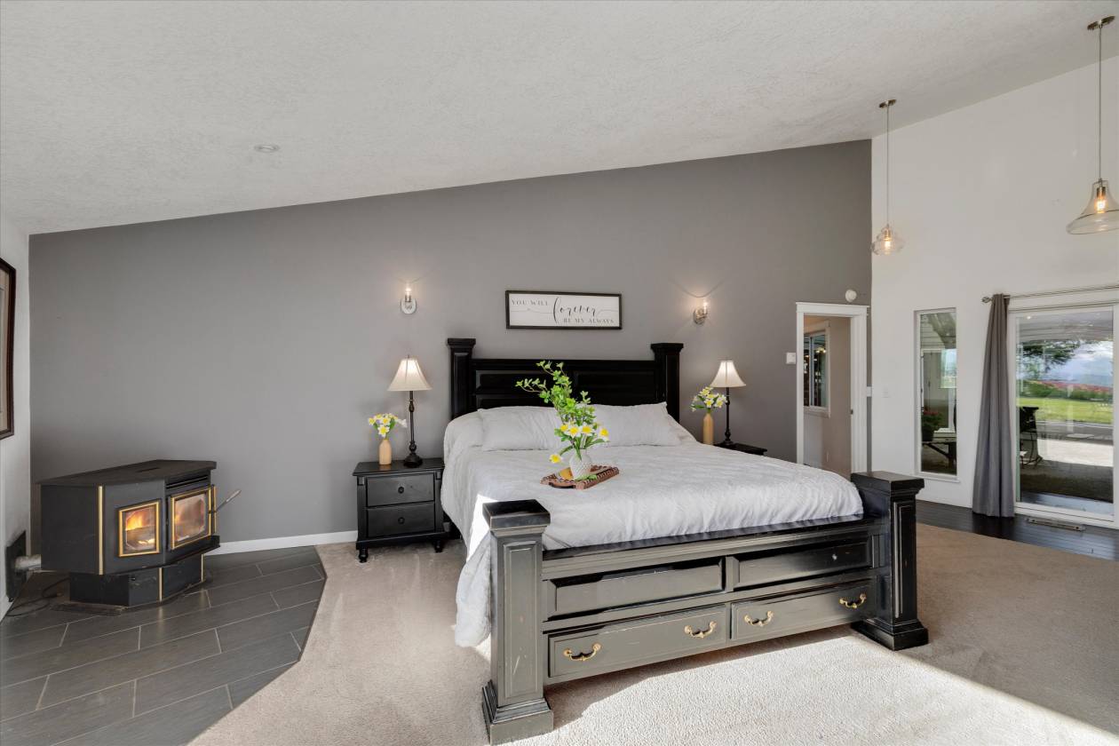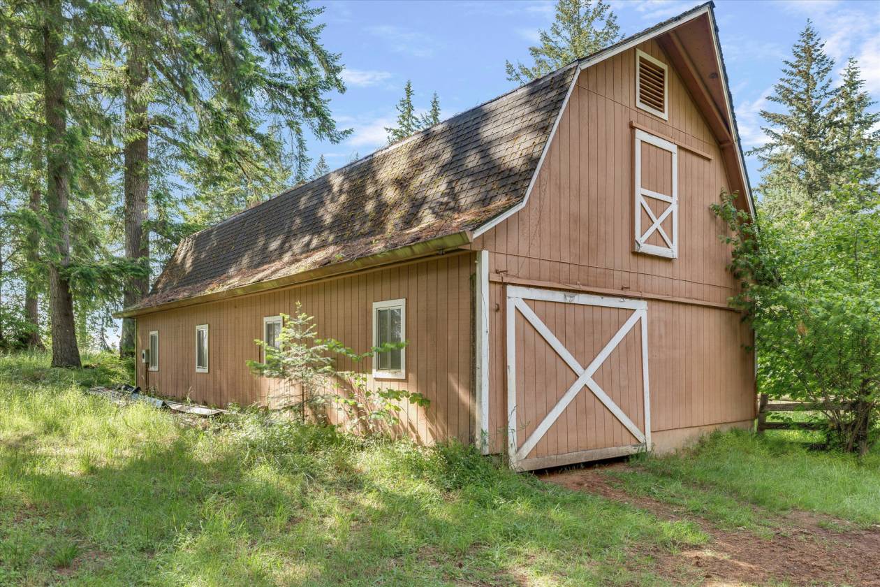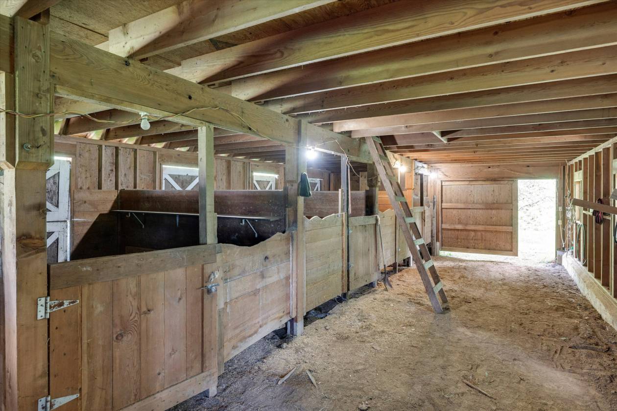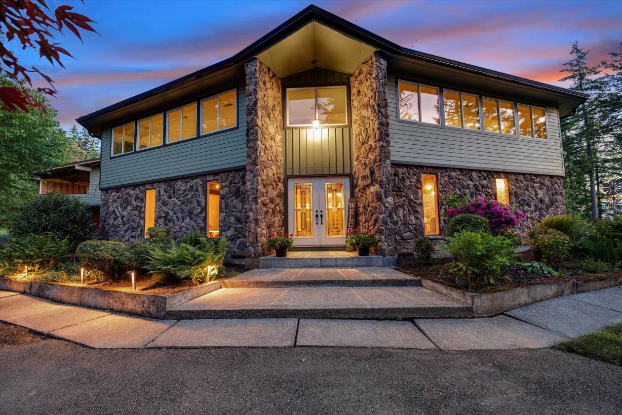 This exceptional 6,500+ square foot custom-built residence offers a rare blend of architectural distinction and lifestyle amenities. Designed in a unique octagonal layout, the home centers around a private courtyard with easy access that enhances indoor-outdoor living. The spacious interior features six bedrooms and five bathrooms, including a generous primary suite. Beautiful wood floors, complemented by vaulted ceilings and exposed beams lend an elegant, rustic atmosphere. The upstairs boasts an enormous family room for entertaining or stretching out, a large private gym and a covered porch with batting cage. Situated on six hilltop acres with sweeping views, the property includes a swimming pool with deck, a 50x30 sport court, and a four-stall barn making it possible to enjoy all aspects of your outdoor lifestyle. There is great horse property potential! On the practical side, energy-efficient systems, including high-efficiency heat pumps, a wood furnace, and advanced, highly effective solar panels ensure sustainability and cost savings. A huge garage and attached workshop gives storage, a place to tinker, and one more reason to call this place home. This is a rare opportunity to own a property that offers privacy, versatility, and a distinctive lifestyle setting.