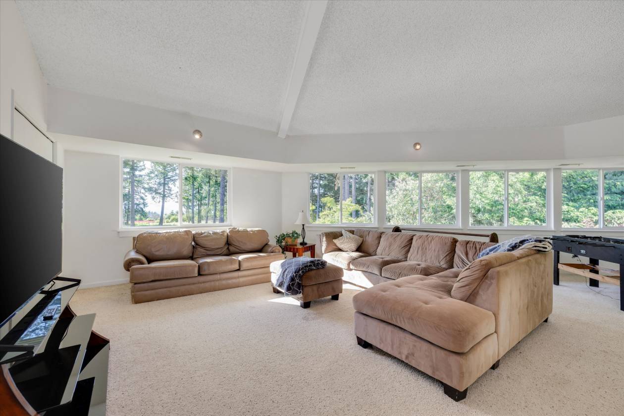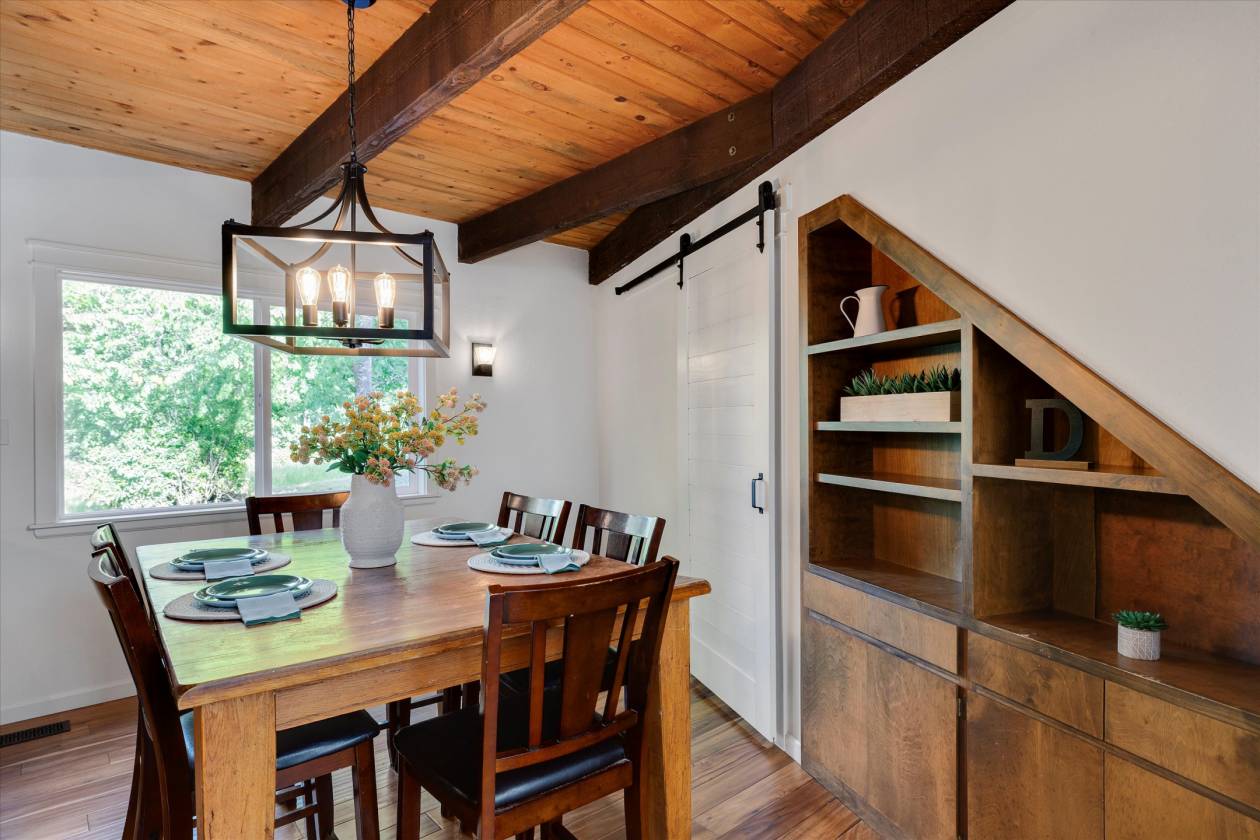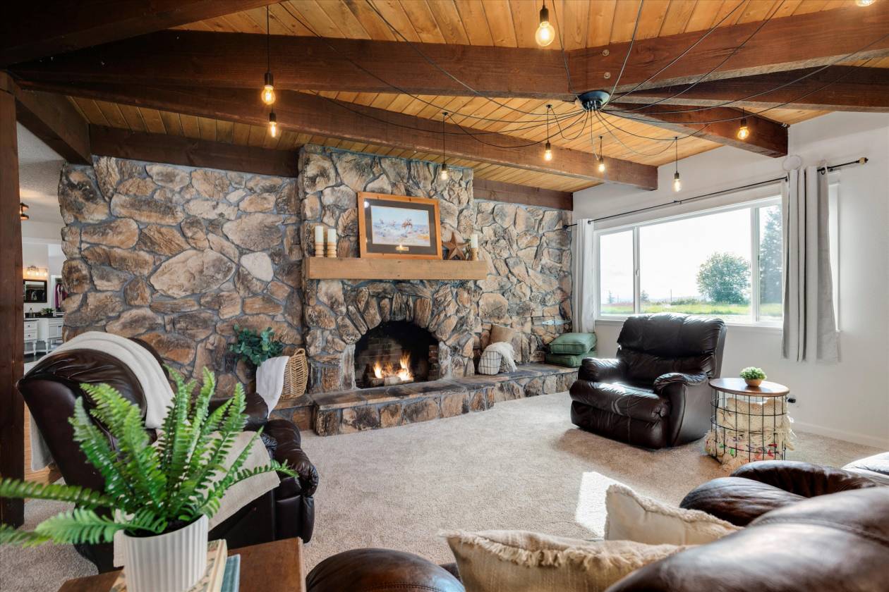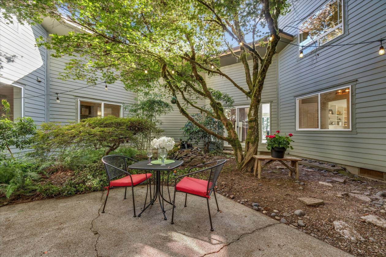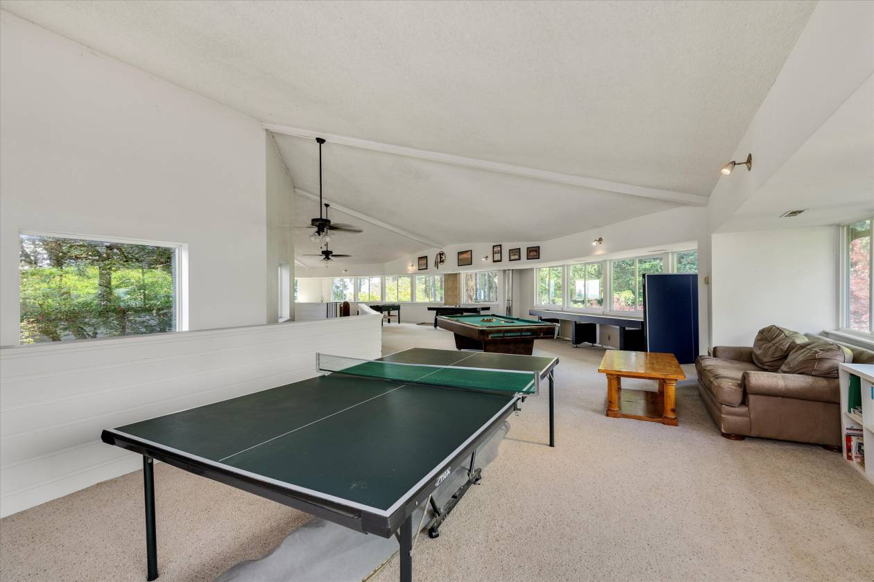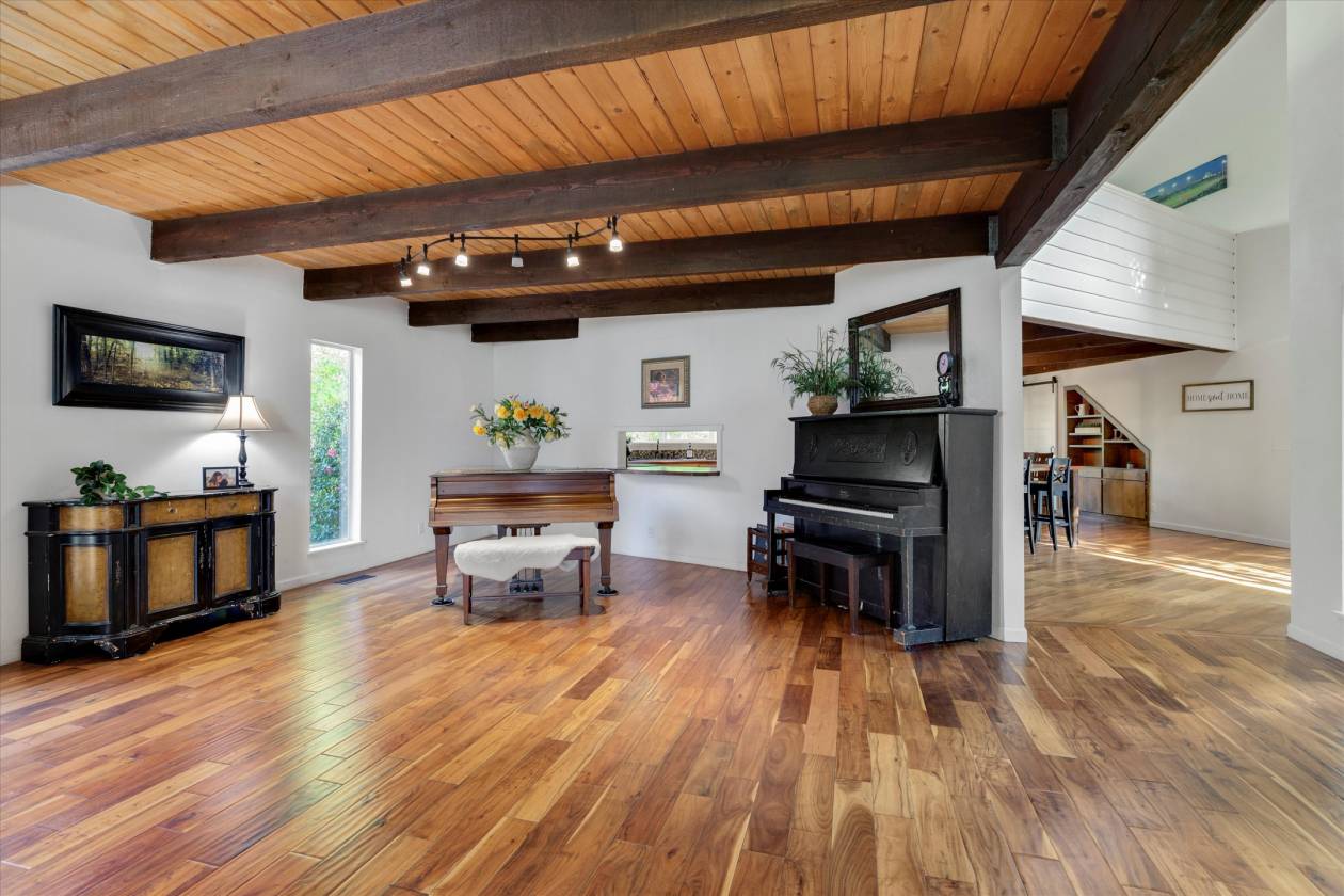 This exceptional 6,500+ square foot custom-built residence offers a rare blend of architectural distinction and lifestyle amenities. Designed in a unique octagonal layout, the home centers around a private courtyard with easy access that enhances indoor-outdoor living. The spacious interior features six bedrooms and five bathrooms, including a generous primary suite. Beautiful wood floors, complemented by vaulted ceilings and exposed beams lend an elegant, rustic atmosphere. The upstairs boasts an enormous family room for entertaining or stretching out, a large private gym and a covered porch with batting cage. Situated on six hilltop acres with sweeping views, the property includes a swimming pool with deck, a 50x30 sport court, and a four-stall barn making it possible to enjoy all aspects of your outdoor lifestyle. There is great horse property potential! On the practical side, energy-efficient systems, including high-efficiency heat pumps, a wood furnace, and advanced, highly effective solar panels ensure sustainability and cost savings. A huge garage and attached workshop gives storage, a place to tinker, and one more reason to call this place home. This is a rare opportunity to own a property that offers privacy, versatility, and a distinctive lifestyle setting.