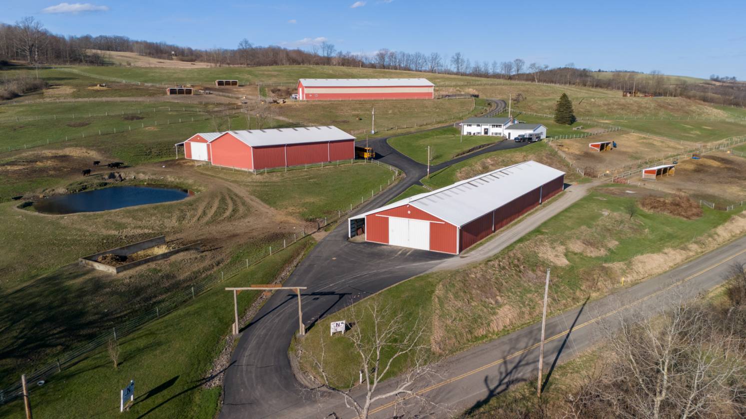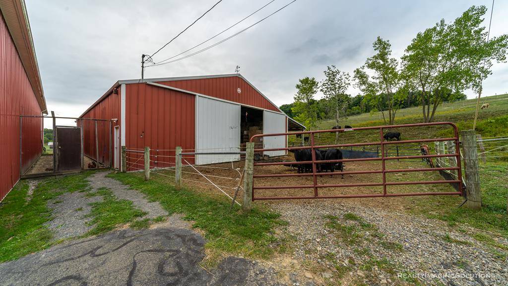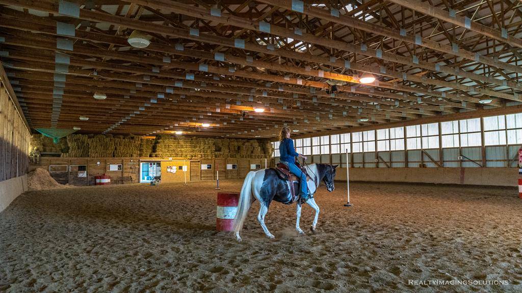 Welcome to a beautifully maintained and fully functional 34-acre farm designed for both horse and cattle operations. This turn-key property blends practicality with comfort, offering top-tier agricultural infrastructure and a spacious owner’s residence. Equestrian & Cattle Facilities: 13 paddocks with Ritchie heated waterers, Vinyl-coated wire fencing with hot strands on the 1st, 3rd, and 5th wires. Main Barn (80’ x 210’): 12 horse stalls, Tack room, Bathroom, Indoor riding arena (2) Run-in sheds nearby Middle Barn: (48x 71) Versatile space suited for steers or horses Lower Barn: (48 x 200) 10 horse stalls, Round pen, Riding arena (2) Additional run-in sheds.