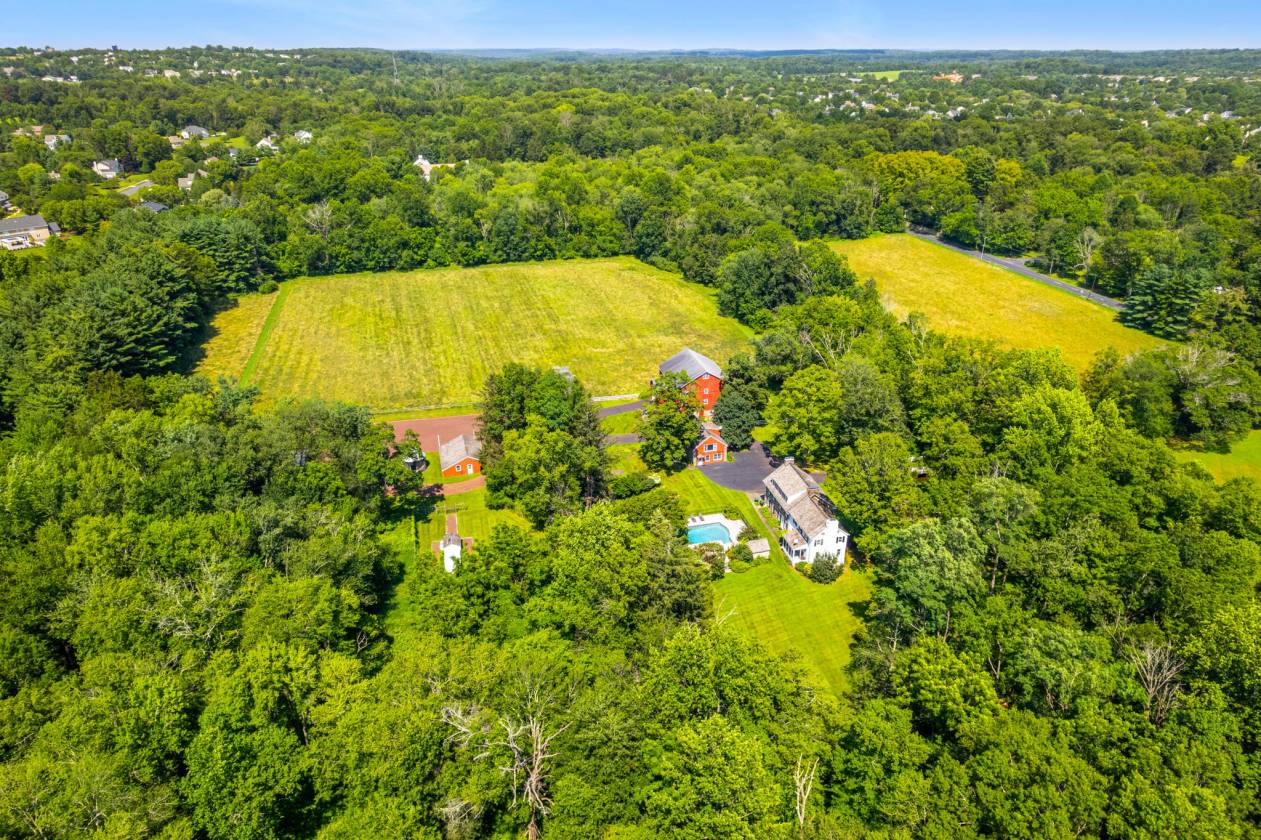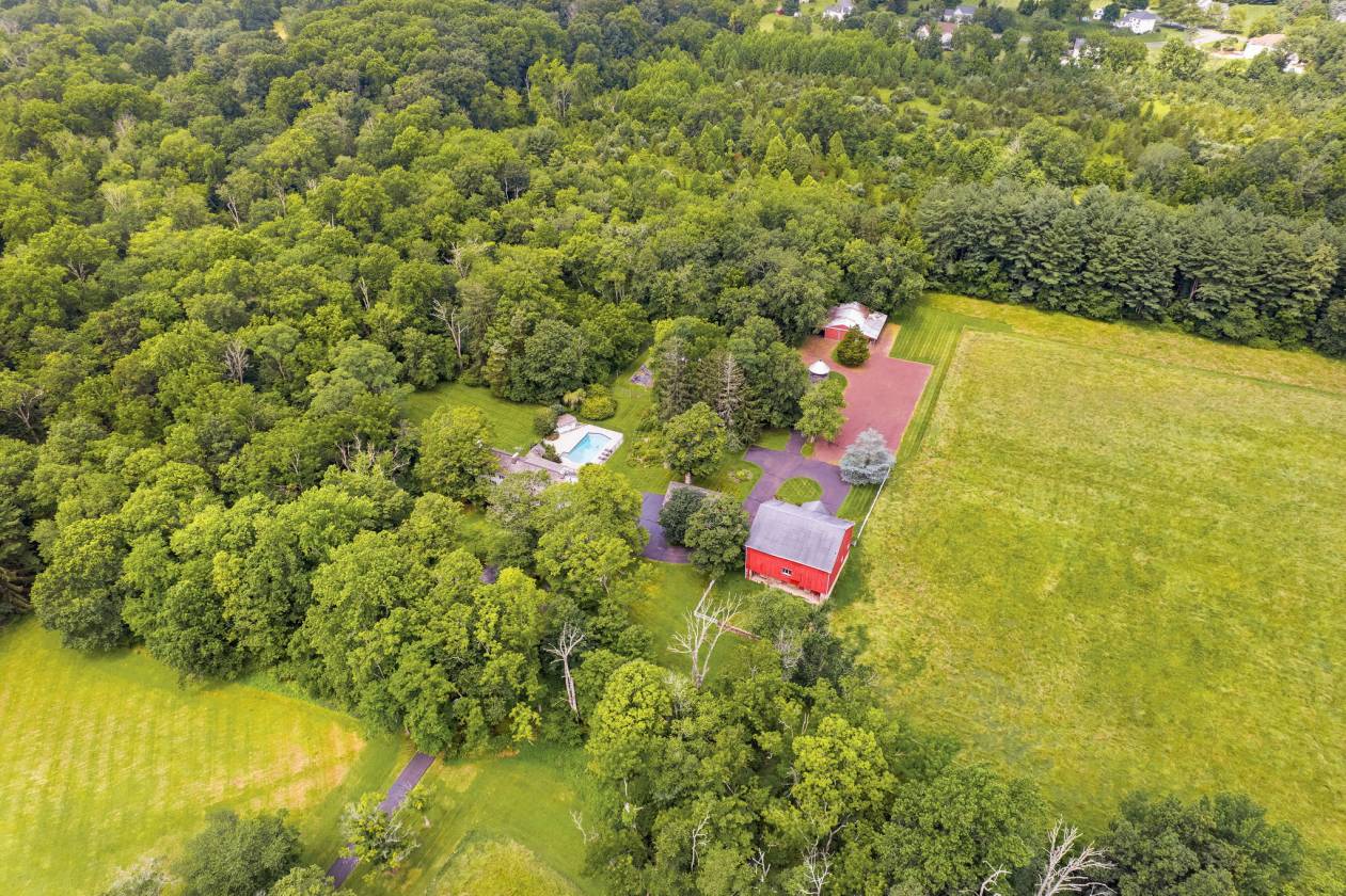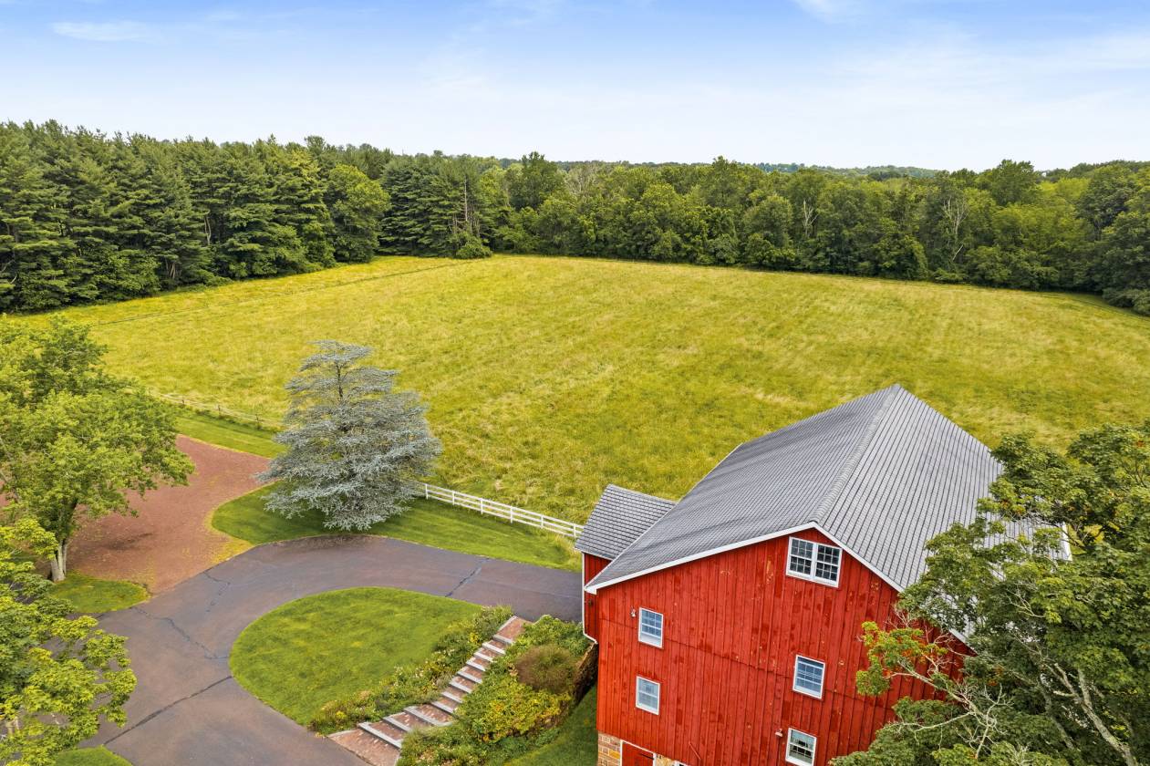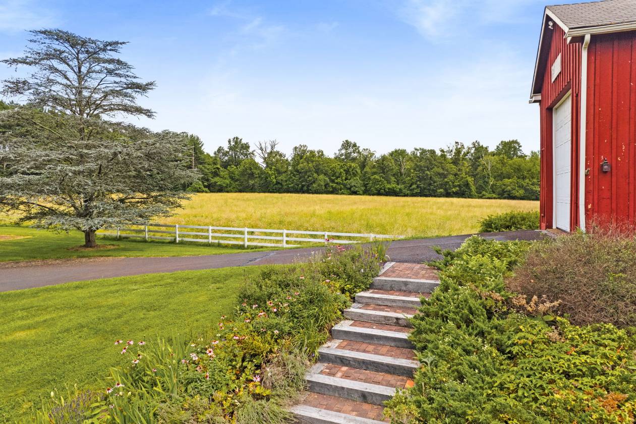 Gorgeous Bucks County Farmstead gracefully nestled on a scenic, tranquil backdrop of rolling country land that offers the utmost in privacy yet is convenient to everything. Over 20 acres of beautiful meadows, hayfields, open space, endless perennial gardens, rustic spring house with neighboring creek and more! This truly inspiring and lovingly preserved hobby farm offers a perfectly positioned main house, carriage house, large barn with stalls and gallery space, detached 3-car garage, pole barn and greenhouse. The stately tree-lined drive is a precursor to the beauty that awaits. The antiquity and sustainable space in the stone farmhouse offer a glimpse into its 1700’s past while bestowing some modern touches although maintaining the historic charm. Features include 4 bedrooms, 3.5 baths, bonus third floor flex space which can be utilized as a studio or fitness space and partially finished lower-level ideal for a billiard/pub room. Abundant in character, this vintage beauty showcases skillfully crafted exterior and interior stonework along with deep windowsills, exposed beam ceilings, period hardware, cedar roof, 4 wood-burning fireplaces, wood floors and built-ins throughout. Relax outdoors on the covered back porch or lounge at the saltwater pool with convenient pool house highlighting a full bath while admiring the wildflowers and long distant meadow views with the sounds of nature all around. Guests can enjoy their own serenity in the eye-catching, spacious Carriage House featuring 3 bedrooms, 2 full baths, kitchen and living space adorned with wood beam accents and a sizeable picture window to admire the grounds. The lower portion of the classic Red Barn can easily host horses and other animals with multiple stalls while the upper portions are finished to accommodate a multitude of uses. In the past, this included an art studio and gallery, but any collector will delight in this space as well as the separate Pole Barn building. So much to be discovered on this glorious compound bordering 50 acres of preserved land. Meander through your own nature preserve and hike on your own walking trails, grow your own vegetables, and raise farm animals while enjoying this hidden piece of paradise showcasing charm and cozy living quarters. The mural-like setting located just minutes from downtown Doylestown, exemplifies one of the finest properties in Bucks County with its traditional design and every amenity appreciated for today's lifestyle.