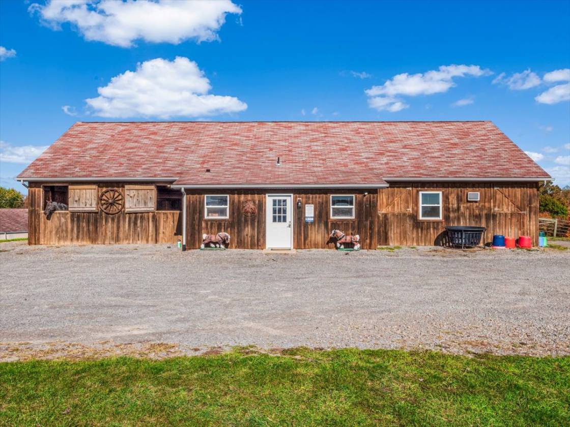 Welcome to 281 Bear Creek Rd, Sarver – a dream retreat for equestrian enthusiasts and nature lovers alike! This beautifully updated 3-bedroom home sits on a private, scenic parcel and offers the perfect blend of charm, comfort, and functionality. Step inside to find massive bedrooms, gleaming hardwood floors, and a warm gas fireplace that anchors the inviting living room. A partial wrap-around deck and covered front porch provide ideal spots to unwind outdoors. The remodeled kitchen is a standout with its stainless steel appliances, vaulted 9’ ceilings, and modern layout, while the first-floor laundry and mudroom with abundant storage add convenience. Additional features include Anderson windows, leaded glass doors, a character-rich stone accent wall, and interior French drains that help keep the basement dry. Recent upgrades include a 2018 architectural roof (30-year shingles) and fresh perennial landscaping. For horse lovers, the equestrian amenities are unmatched: 72x168 indoor arena with premium GGT footing 12 rubber-matted stalls (including one 12x15 birthing stall), 2 wash stalls with hot/cold water, and heated tack rooms 90x190 outdoor arena with ProStride synthetic sand mix footing 16x16 observation deck – perfect for teaching or watching lessons Dusk-to-dawn lighting throughout the property Small cross-country course with a stream and bridge for horse/tractor crossing Private wooded trails for riding, hiking, or exploring, bordering a protected agricultural conservation area that ensures lasting privacy and tranquility This rare property offers country serenity with top-tier facilities—don’t miss your chance to make it your own!