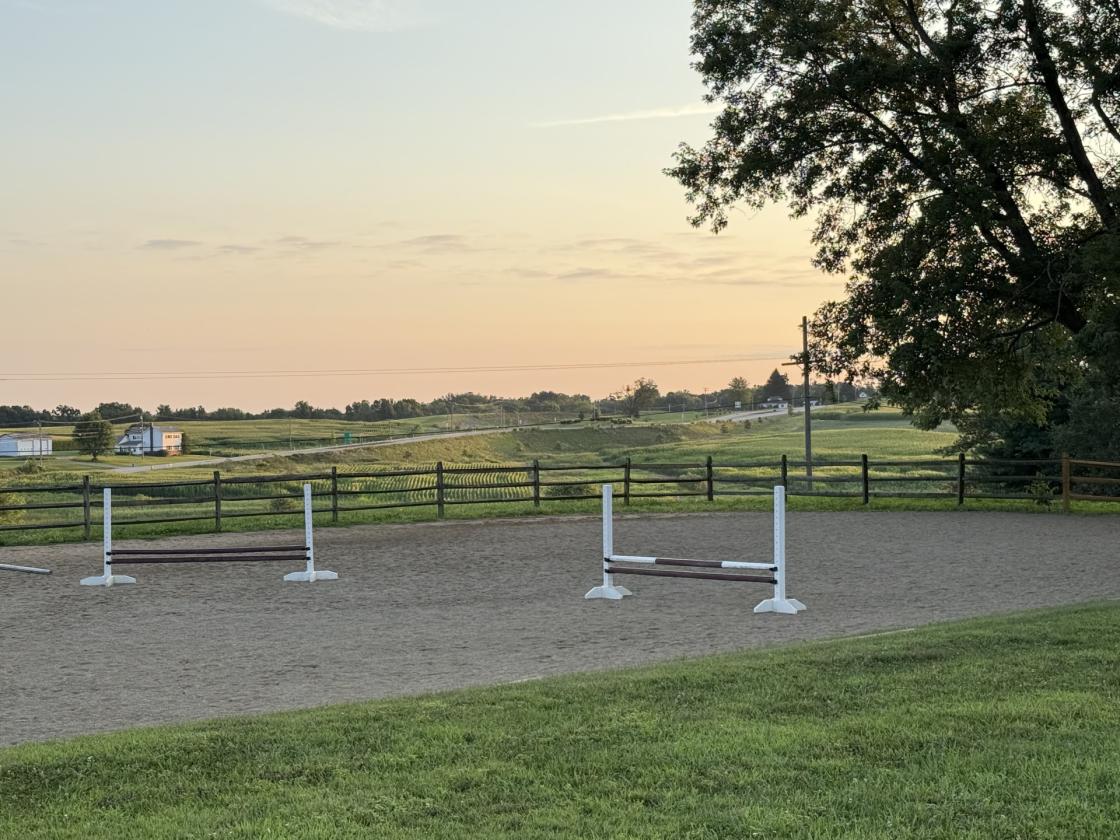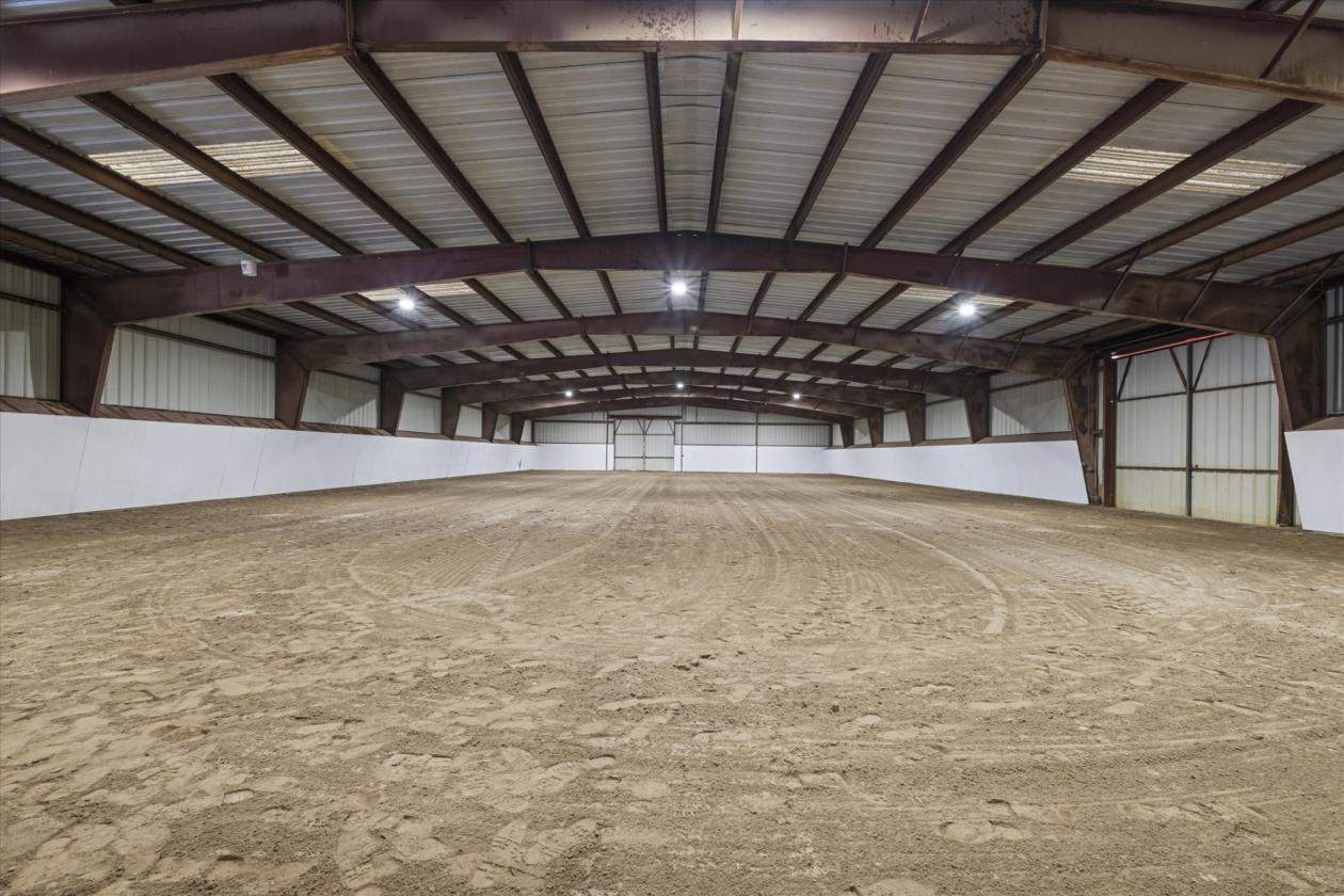 - Designed for serious horse people and big visions, this property is primed for an agricultural enterprise or a premier equestrian venue. Think 3-Day Eventing, Hunter/Jumper, Barrel Racing, Dressage, clinics, camps, or a full-scale showgrounds operation. Built for year-round training facility offers both indoor and outdoor arenas. The 80x160 indoor arena features a high metal-truss ceiling, skylights, and bright overhead lighting, plus sand footing, white kickboards, and a full wall of mirrors for precision work. A heated lounge, and viewing room for clientele. A second smaller 56X49 indoor arena currently provides covered storage and flexibility for future use. Outside, enjoy a 100x200 sand arena, enclosed with wood fencing and positioned against a backdrop of open countryside.