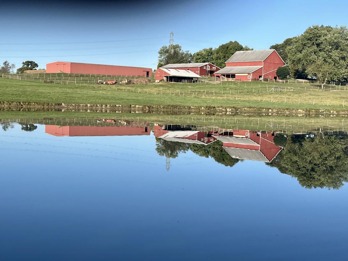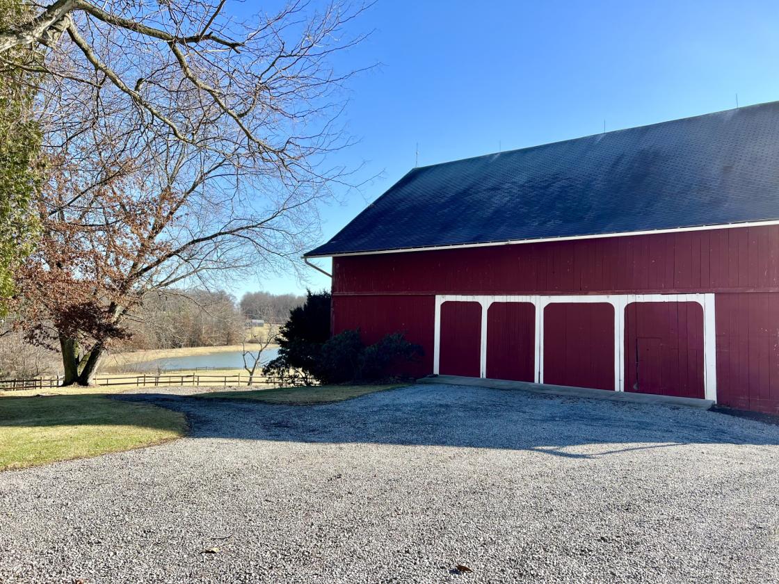 - The landscape delivers wide-open grassy fields and 16 pastures framed by wood post-and-rail fencing, with plenty of room for turnout, conditioning, and hacking. A stunning 3.75-acre lake anchors the property, reflecting the classic red barn structures and bordered by iris gardens and open lawn space. A second ½-acre stocked pond offers bass, bluegill, and catfish for peaceful downtime after a day in the saddle. Gravel driveways connect the residence and farm buildings, winding past mature specimen trees and across picturesque, rolling views.