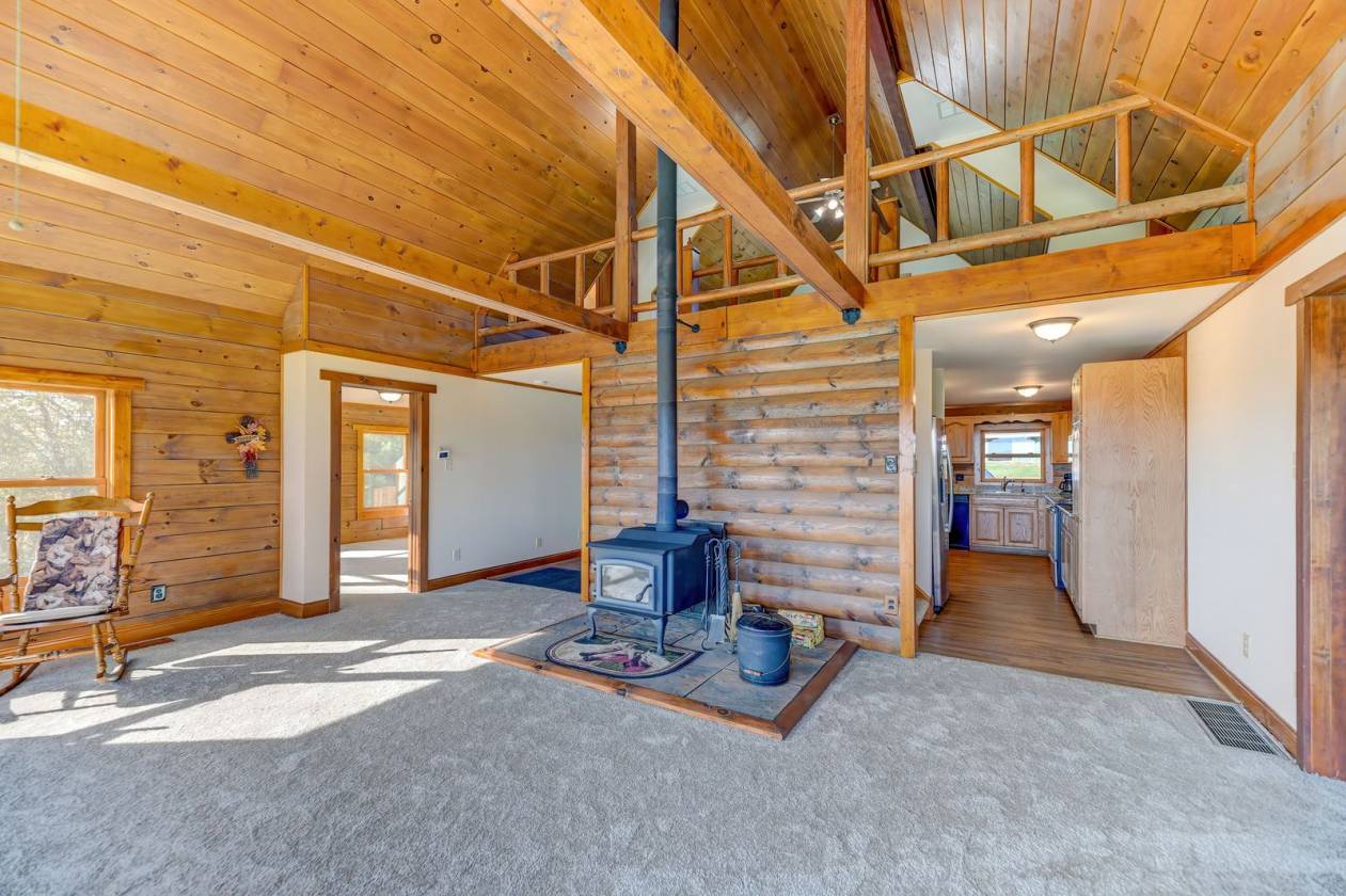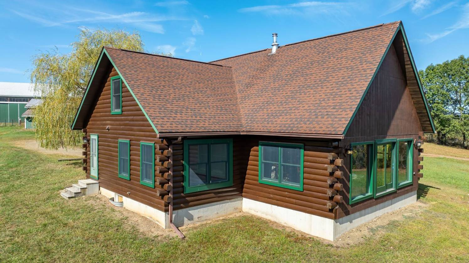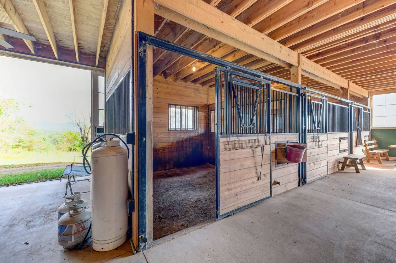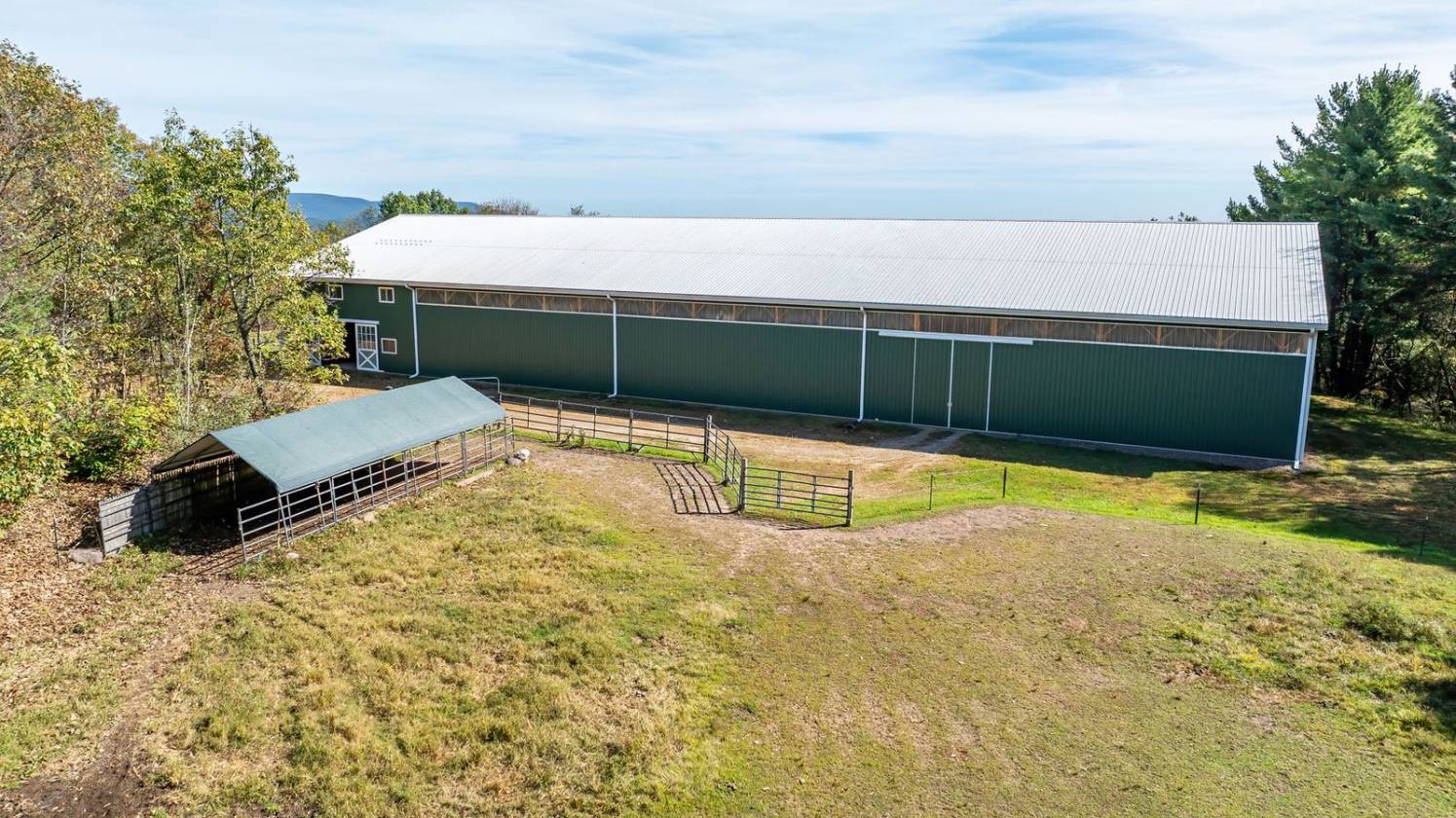 Equestrian Paradise on 31± Acres - Stunning Lincoln Log Home & Premier Horse Facilities Welcome to this breathtaking 31± acre estate featuring a custom Lincoln Log Home offering 4 bedrooms and 2.5 baths. The home has been thoughtfully updated with new Anderson doors and windows, a newer roof, and beautifully renovated bathrooms. Enjoy panoramic, long-range views that stretch across the countryside—truly a setting that captures the best of country living. The residence is served by a recently installed, energy-efficient geothermal heating system, providing comfort and sustainability year-round. For the equestrian enthusiast, this property delivers exceptional amenities. The 40' x 40' barn includes 7 stalls plus a pony stall, frost-free water, a tractor storage bay, and a turnout area. The impressive 200' x 80' indoor arena, built by Stable Hollow Construction, features nine 12' x 12' stalls with swing-out bucket doors, 19' ceilings, a tack room, viewing room or office, and a large upper-level viewing or hay storage area, served by a dedicated electric meter.