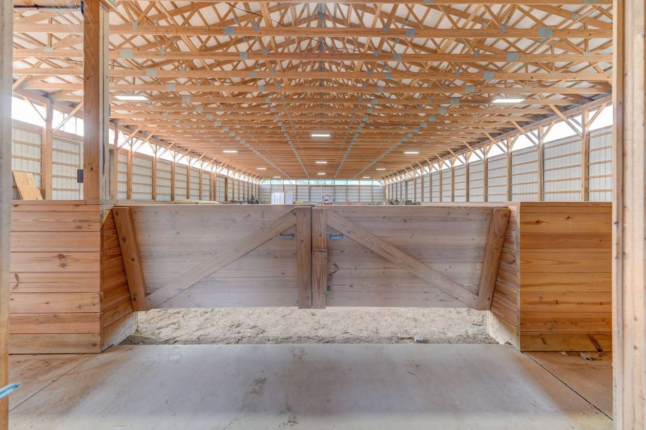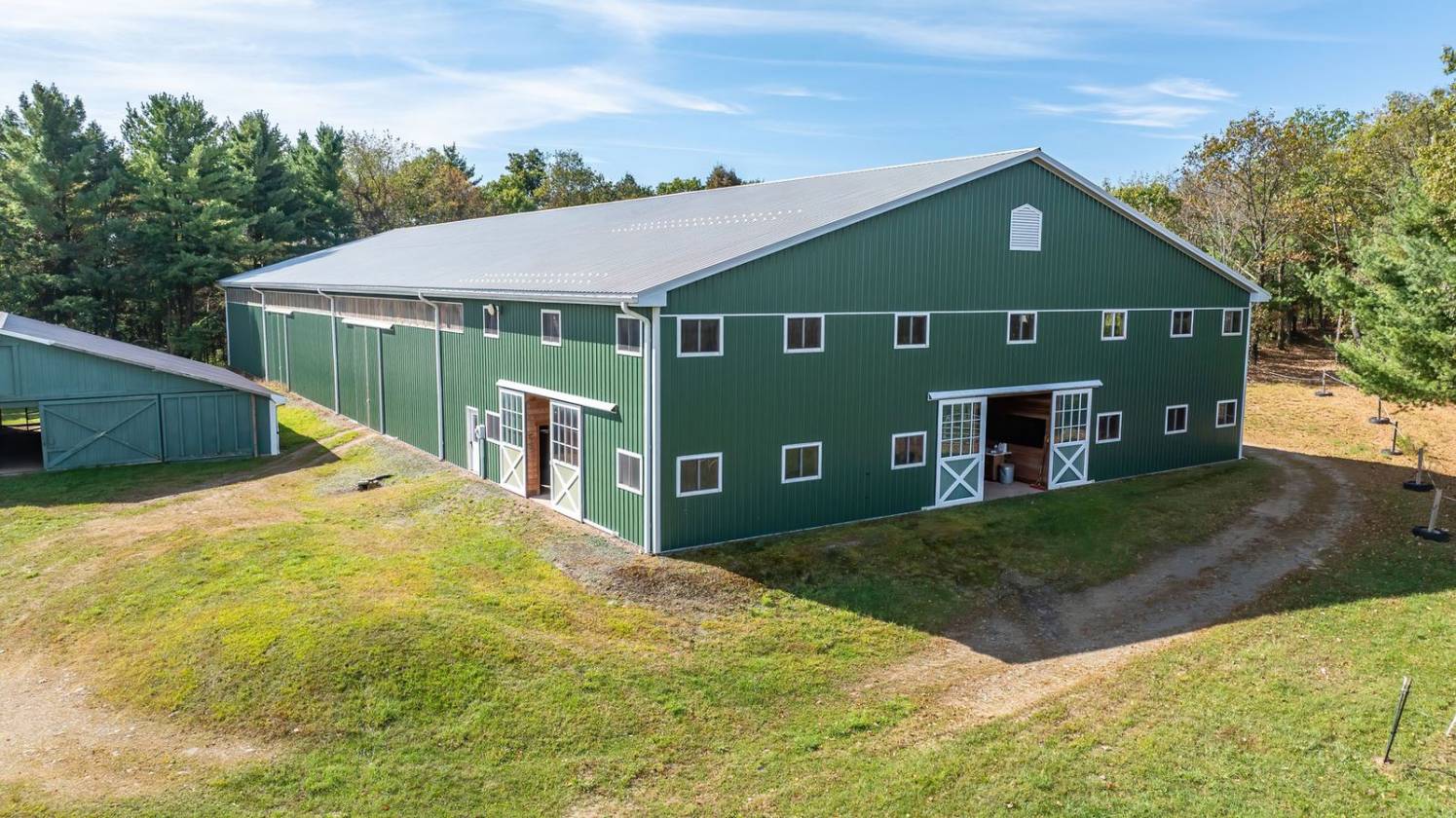 • For the equestrian enthusiast, this property delivers exceptional amenities. The 40' x 40' barn includes 7 stalls plus a pony stall, frost-free water, a tractor storage bay, and a turnout area. The impressive 200' x 80' indoor arena, built by Stable Hollow Construction, features nine 12' x 12' stalls with swing-out bucket doors, 19' ceilings, a tack room, viewing room or office, and a large upper-level viewing or hay storage area, served by a dedicated electric meter.