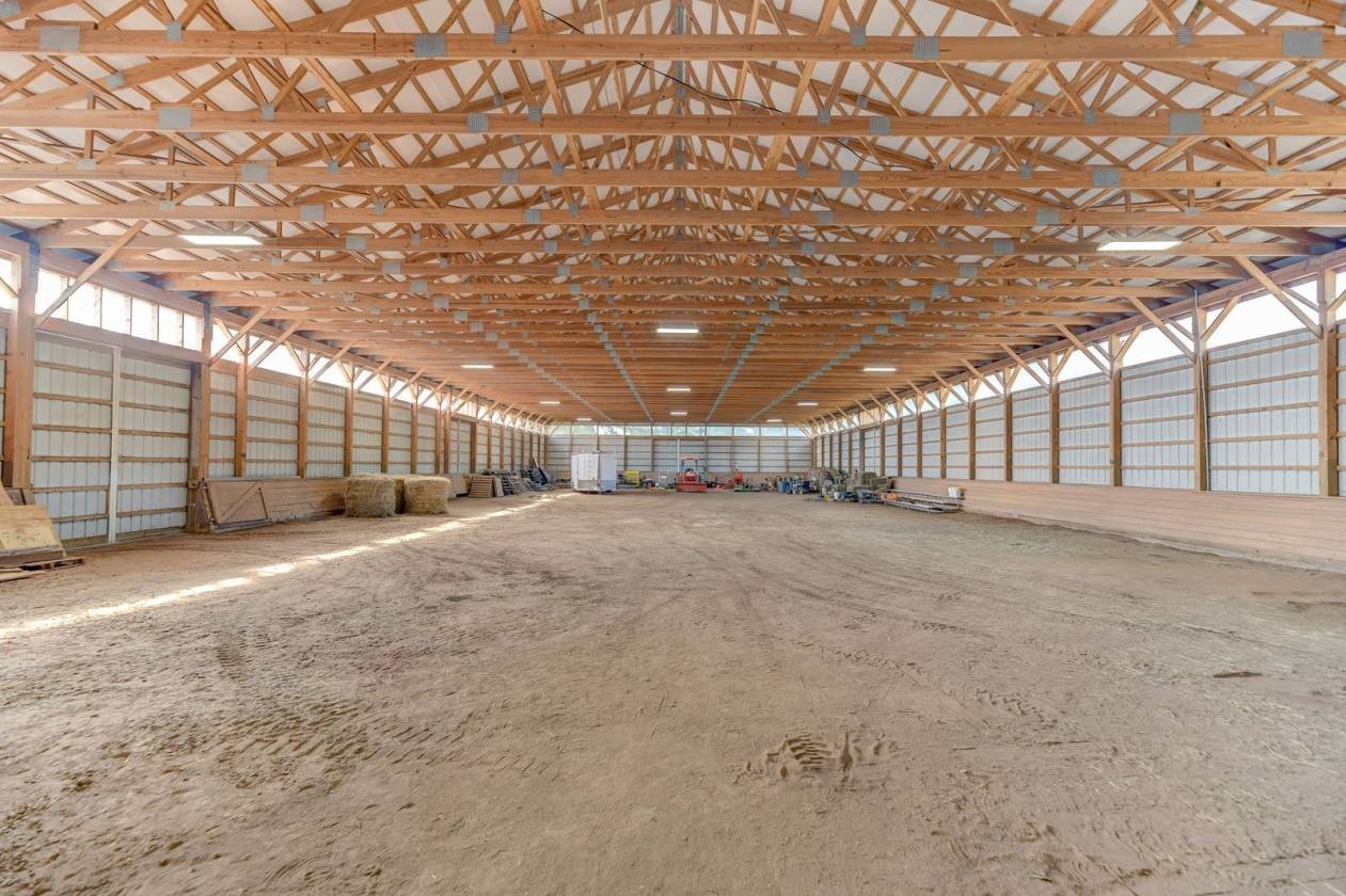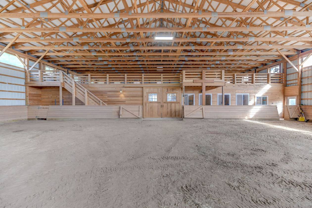 • Outdoors, a 250' x 350' riding arena provides a professional training environment. The property also includes a trail system for riding or leisurely exploration, along with two large pastures, one equipped with electric fencing.