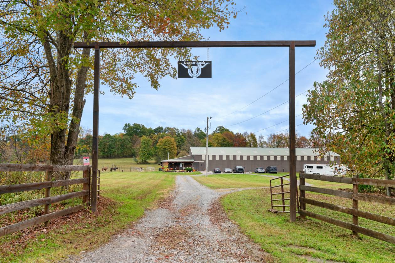 - Ranch-style entry archway tall enough for horse trailers and farm equipment