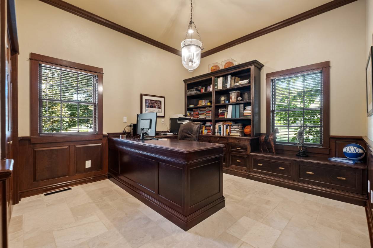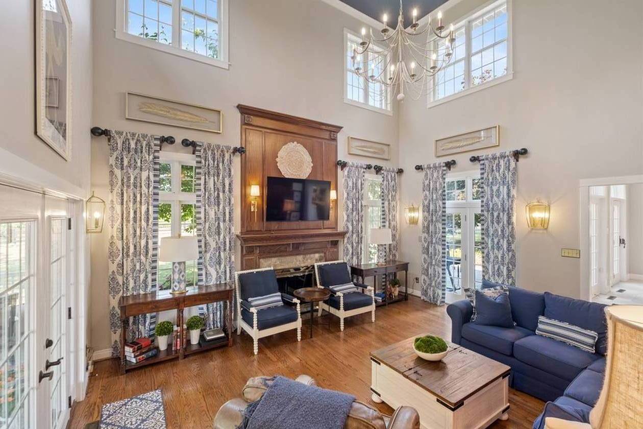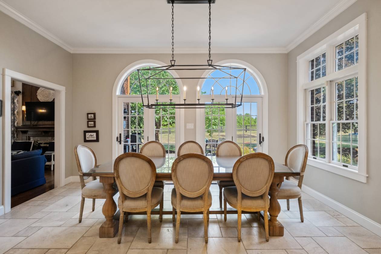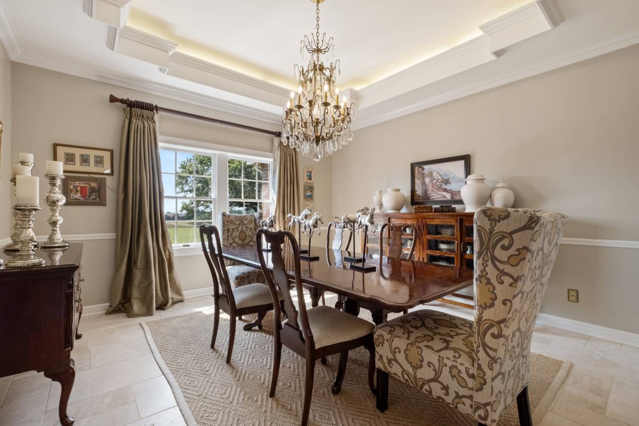• This move-in-ready home showcases sunlit open spaces, custom millwork, and expansive windows framing the peaceful landscape. The chef’s kitchen is equipped with high-end stainless appliances, granite counters, and a spacious island, opening to a family room with a stone fireplace and access to the outdoor patio—perfect for entertaining.