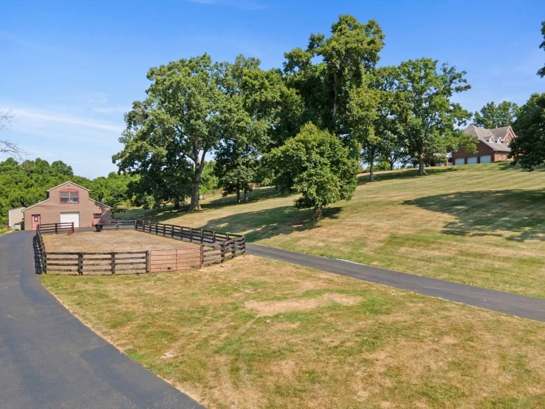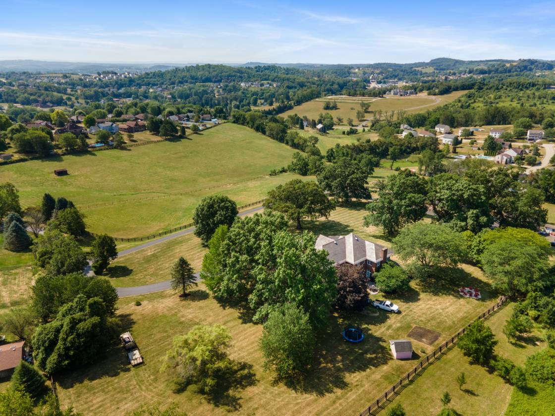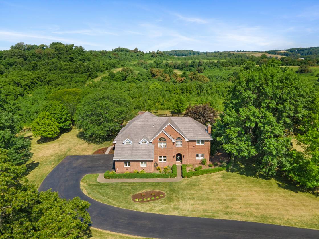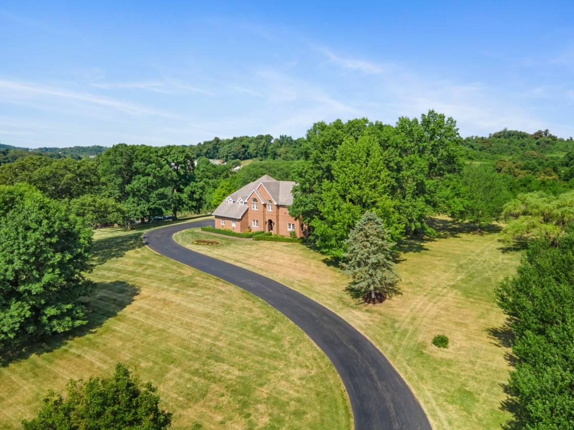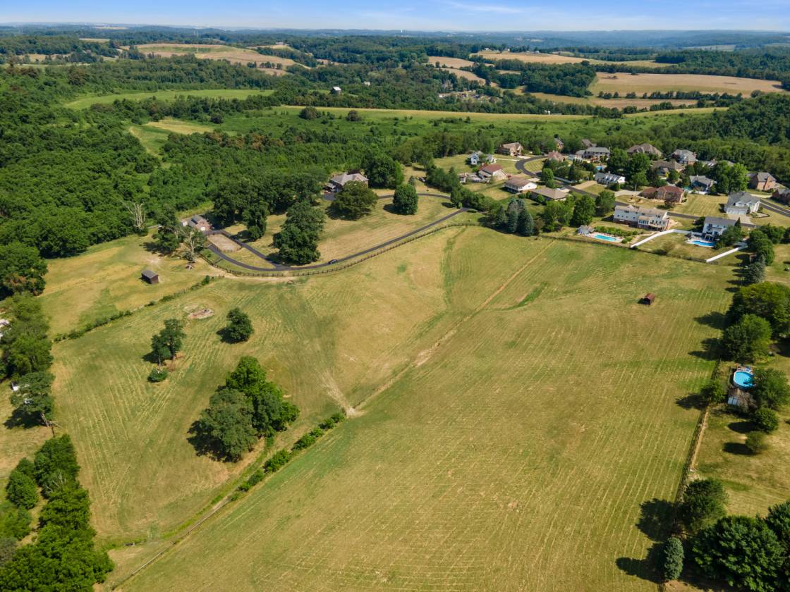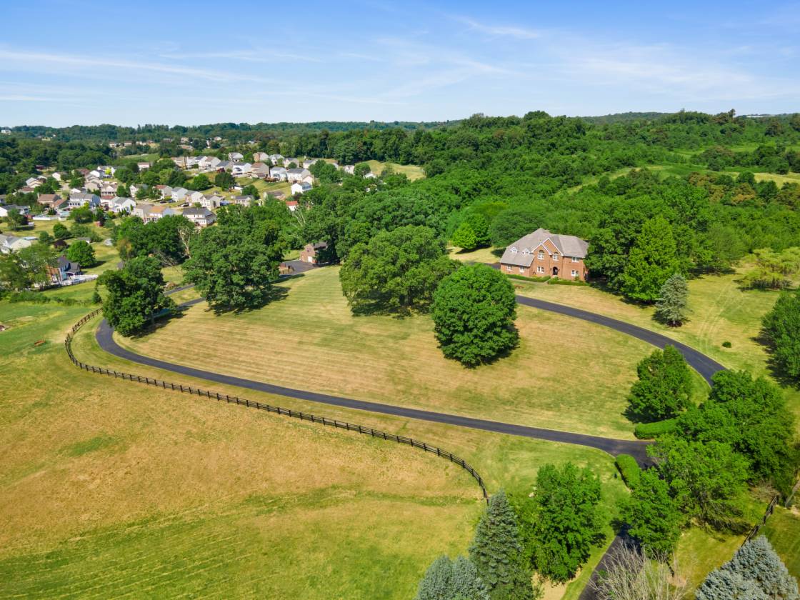 Located on a scenic hill in Rostraver Township, this magnificent 21.1-acre estate boasts panoramic views of lush woodlands and the nearby Vinoski Winery. It combines luxury with privacy. A grand two-story foyer leads to an elegantly functional interior, formal living and dining rooms, and a spacious Great Room with a gourmet kitchen. It features a large island and premium appliances. The estate includes covered and open patios for indoor-outdoor enjoyment. It houses five bedrooms, including a beautiful primary suite, +4 full and two half baths, spread over 5700+ square feet. Additional amenities include a massive basement game room and six garage spaces. There’s potential for a large pool. Over the hill sits a barn with four horse stalls, with an additional bedroom or large office space. The well-maintained grounds provide ample recreation space. Situated in Rostraver Township, part of the Belle Vernon School District, the location offers suburban comforts, parks, golf courses and highway access—a huge entertaining home.