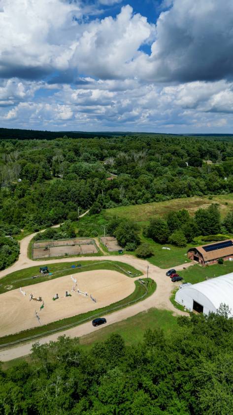 Unique 20.5-acre equestrian property offering residential income, extensive horse facilities, and potential for future development. Features 18 stalls, an 80x200 indoor arena, fully renovated 150x225 outdoor arena, tack/grooming/wash stalls, hay storage, and open fields suitable for grazing. The barn was fully rebuilt with concrete floors and upgraded electrical. Utilities include two septic systems, two wells (barn well approved for 2026 upgrade via transferable Dept. of Agriculture grant), and leased solar ($300/month). Property is enrolled in the Farm, Forest & Open Space Act for tax reduction. Sold as-is. Zoned R-3A. Log Cabin and Basement apartment to be delivered vacant. Buyers and agents to conduct all due diligence regarding zoning, usage, and condition.
