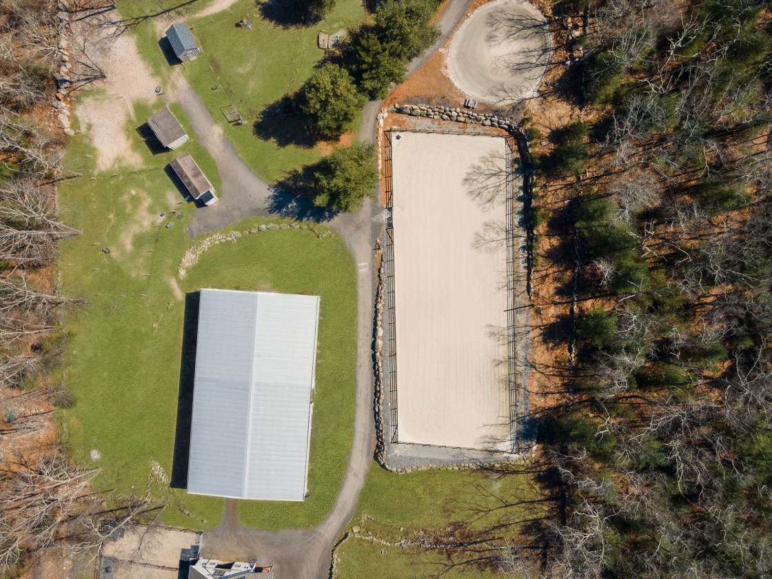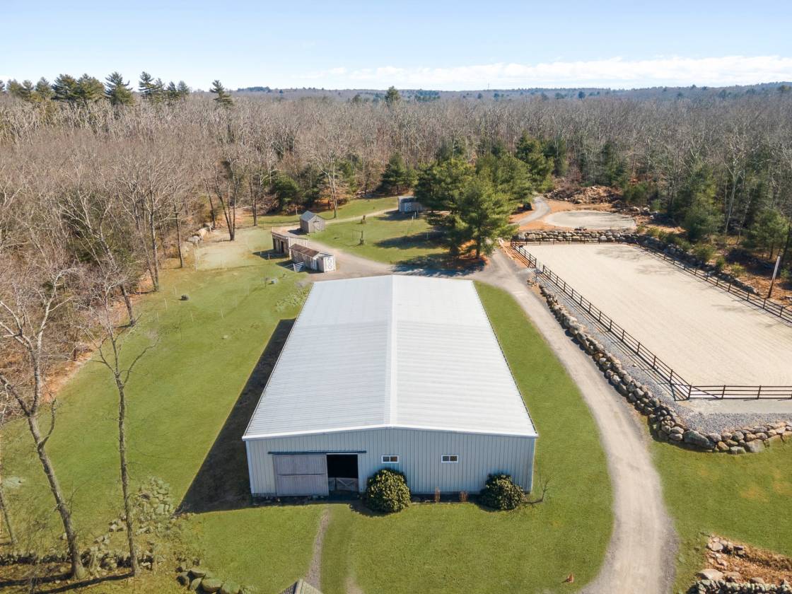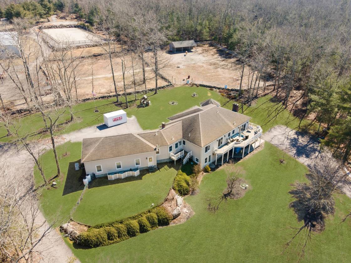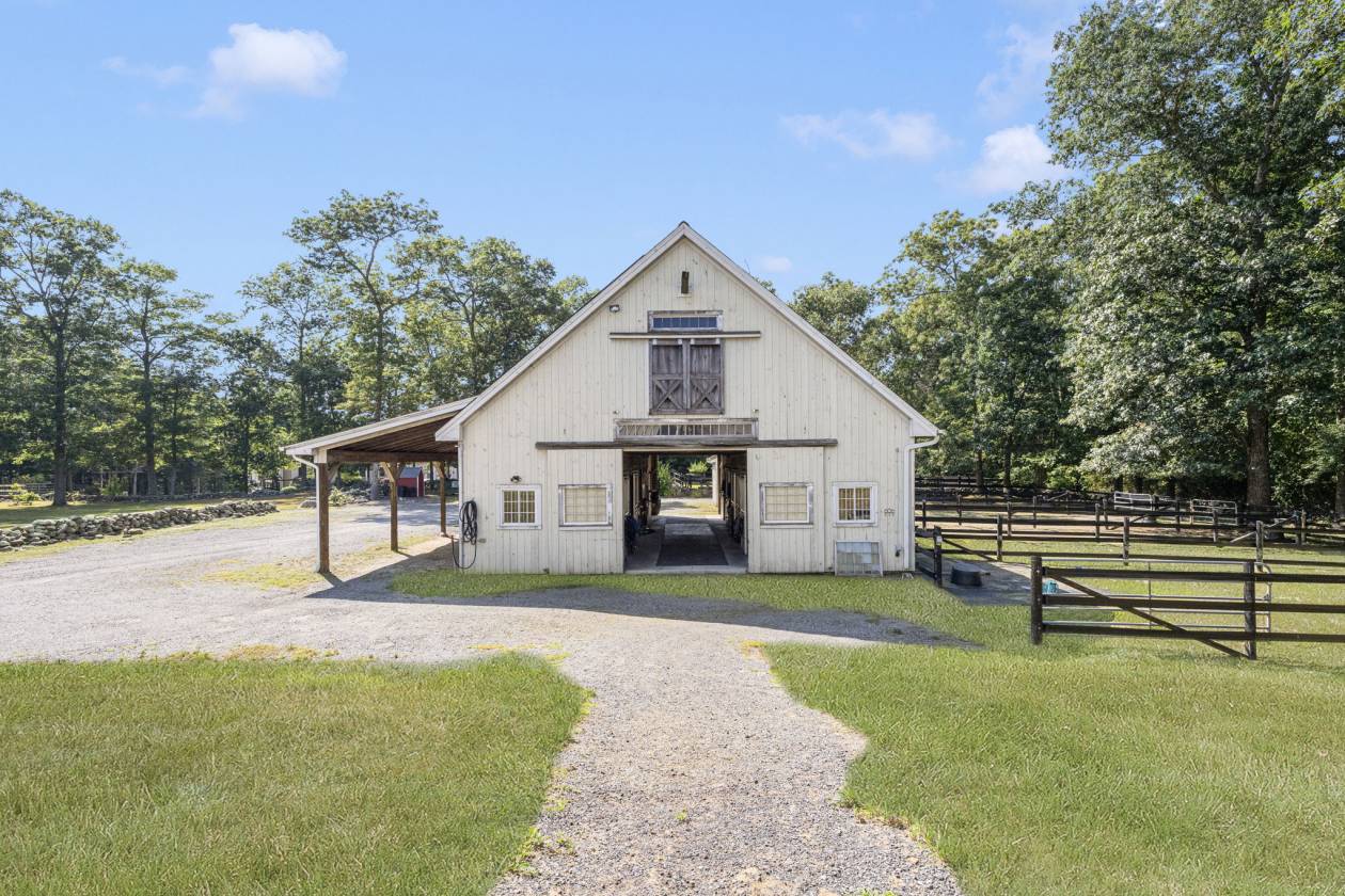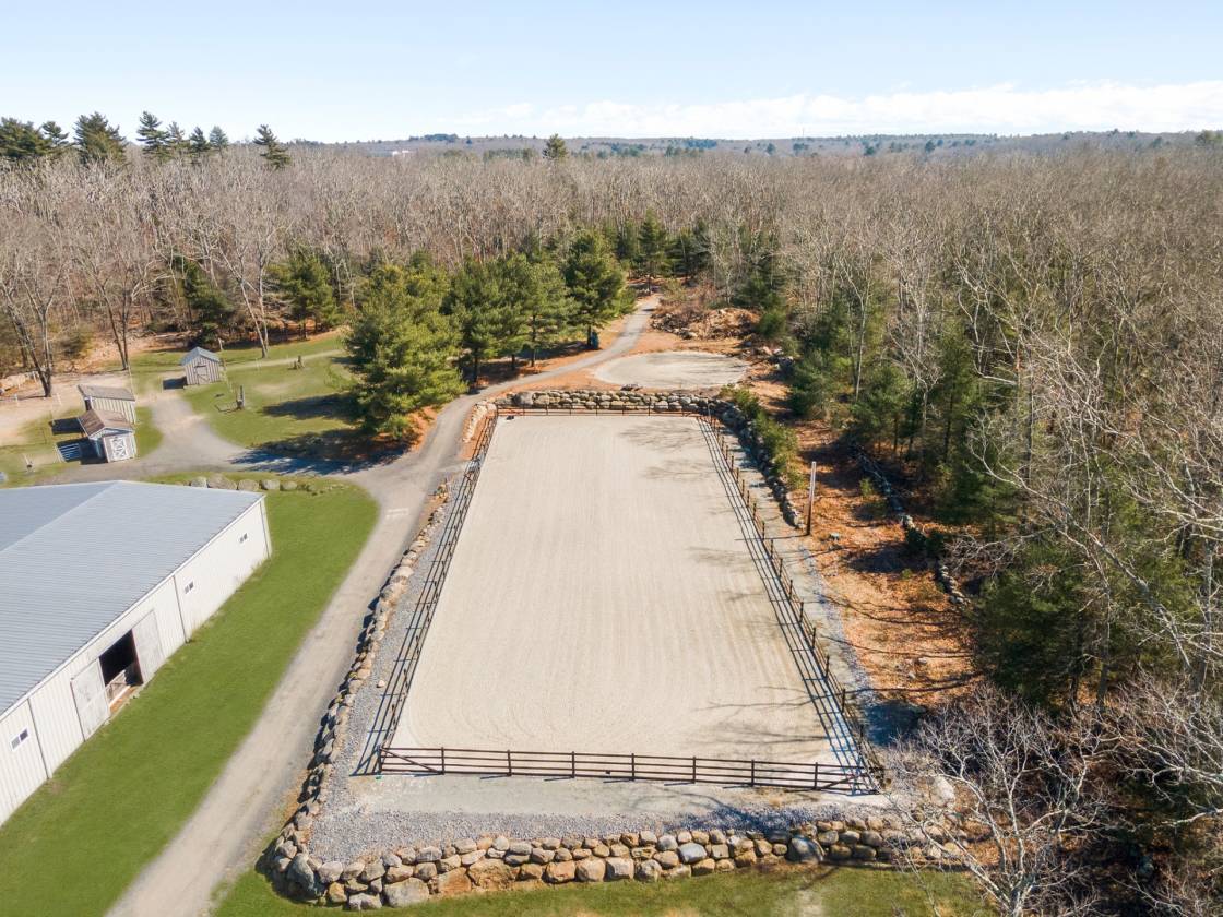 Hidden Horse Acres offers the perfect blend of a meticulously maintained family home and a premier equestrian facility, set on 13.99 private acres just minutes from the sought-after Southern Rhode Island coastal lifestyle. Built in 2002, this custom home was designed for sunlight, comfort, and connection to its surroundings. The open-concept living area features a striking stone fireplace, oversized windows that flood the space with natural sunlight, and a wrap-around deck with tranquil views of the barn, fields, and treed landscape. The main level includes three bedrooms and two-and-a-half baths, creating space for everyone to enjoy their own retreat. The fully equipped walk-out lower level offers a private, sun-filled living area with one bedroom, one bath, and a fireplaced great room with eat-in-kitchen, ideal for an adult child, parent ,or trainer. Equestrian amenities are truly top-tier. The indoor arena (60' x 120') features Geotextile Fiber footing, complemented by a 75' x 200' outdoor arena with automatic watering system, and a round pen area, each with the same Geotextile footing. The main barn provides six stalls with individual runouts, and an additional nine stalls bring the total capacity to fifteen horses. Some extras: solar power (barn), sprinkler system for the outdoor ring, whole-house and barn generator, two sets of washer/dryer. Classic stone walls weave throughout the property, adding timeless Southern Rhode Island charm. It's time to bring the horses home