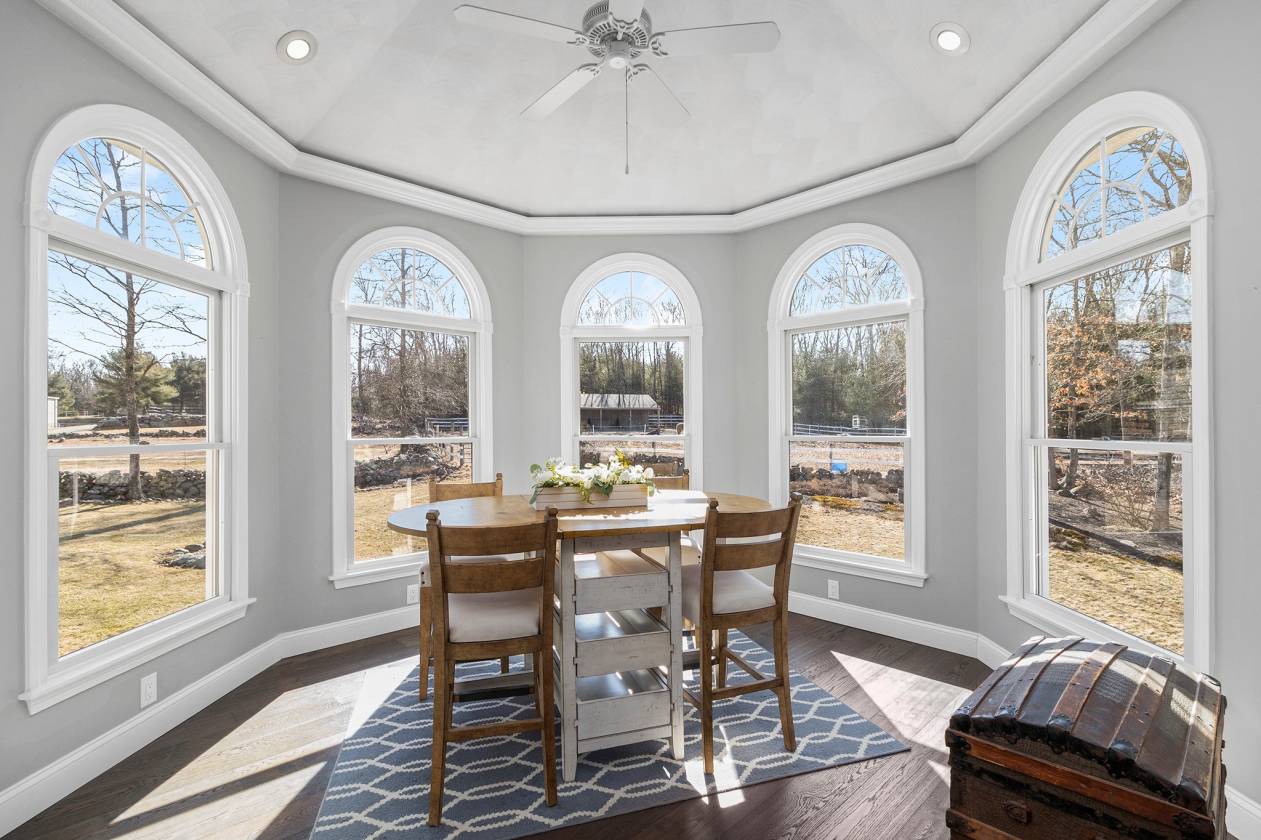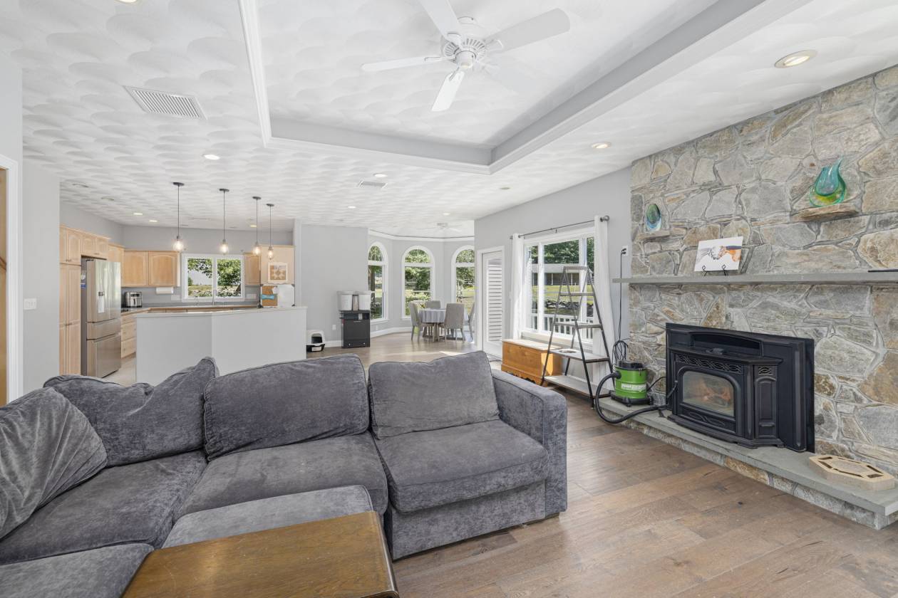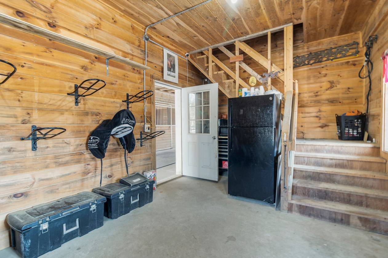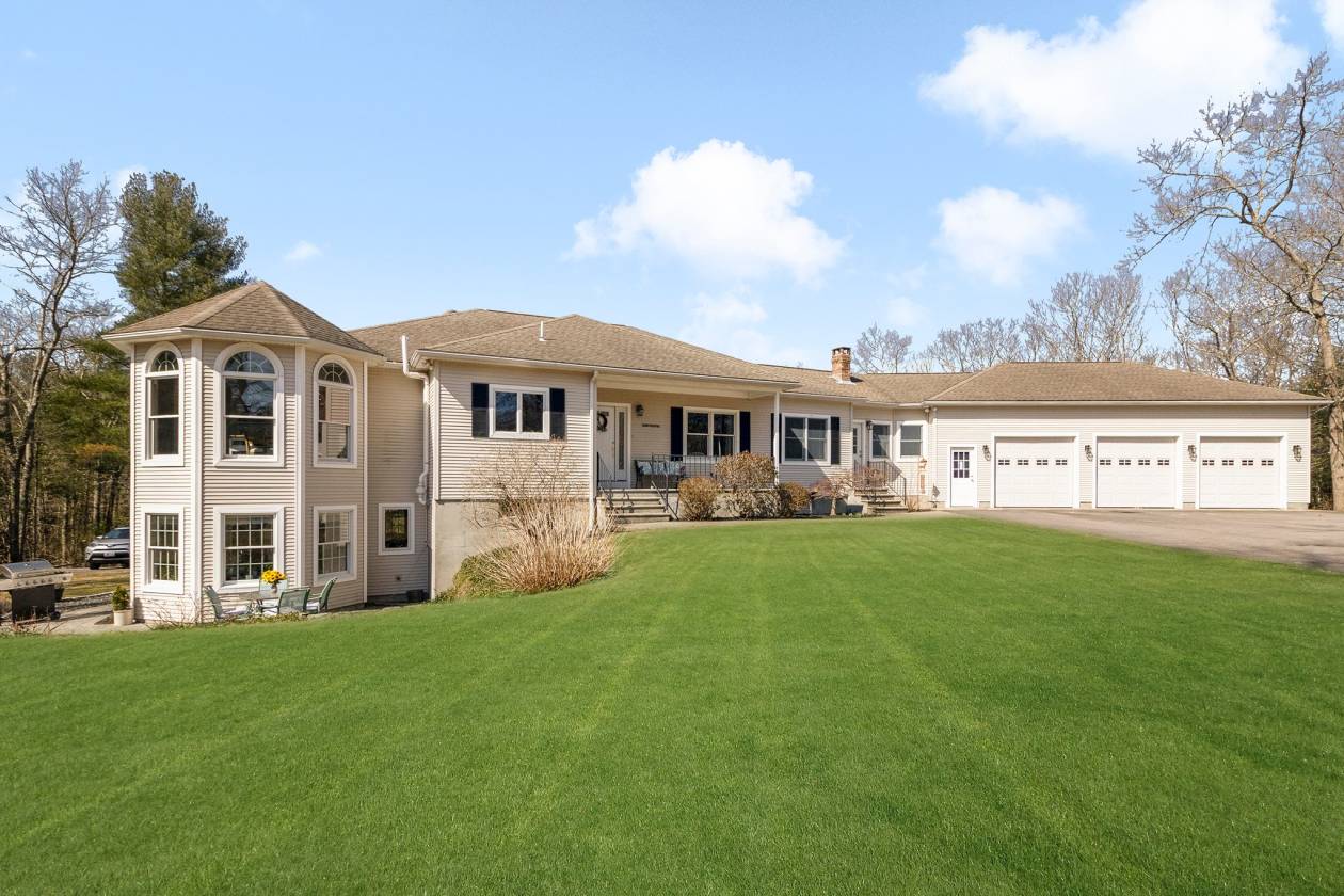 Hidden Horse Acres offers the perfect blend of a meticulously maintained family home and a premier equestrian facility, set on 13.99 private acres just minutes from the sought-after Southern Rhode Island coastal lifestyle. Built in 2002, this custom home was designed for sunlight, comfort, and connection to its surroundings. The open-concept living area features a striking stone fireplace, oversized windows that flood the space with natural sunlight, and a wrap-around deck with tranquil views of the barn, fields, and treed landscape. The main level includes three bedrooms and two-and-a-half baths, creating space for everyone to enjoy their own retreat. The fully equipped walk-out lower level offers a private, sun-filled living area with one bedroom, one bath, and a fireplaced great room with eat-in-kitchen, ideal for an adult child, parent ,or trainer. Equestrian amenities are truly top-tier. The indoor arena (60' x 120') features Geotextile Fiber footing, complemented by a 75' x 200' outdoor arena with automatic watering system, and a round pen area, each with the same Geotextile footing. The main barn provides six stalls with individual runouts, and an additional nine stalls bring the total capacity to fifteen horses. Some extras: solar power (barn), sprinkler system for the outdoor ring, whole-house and barn generator, two sets of washer/dryer. Classic stone walls weave throughout the property, adding timeless Southern Rhode Island charm. It's time to bring the horses home