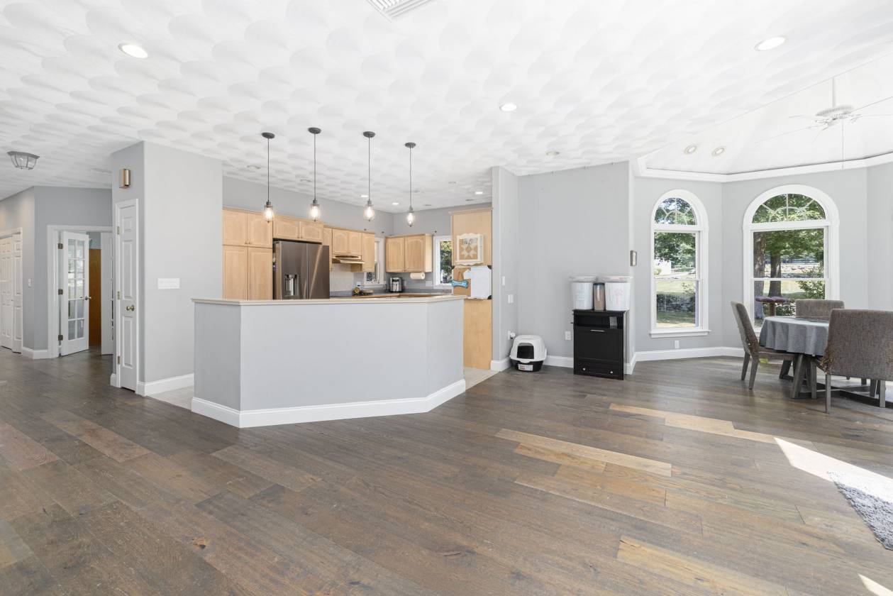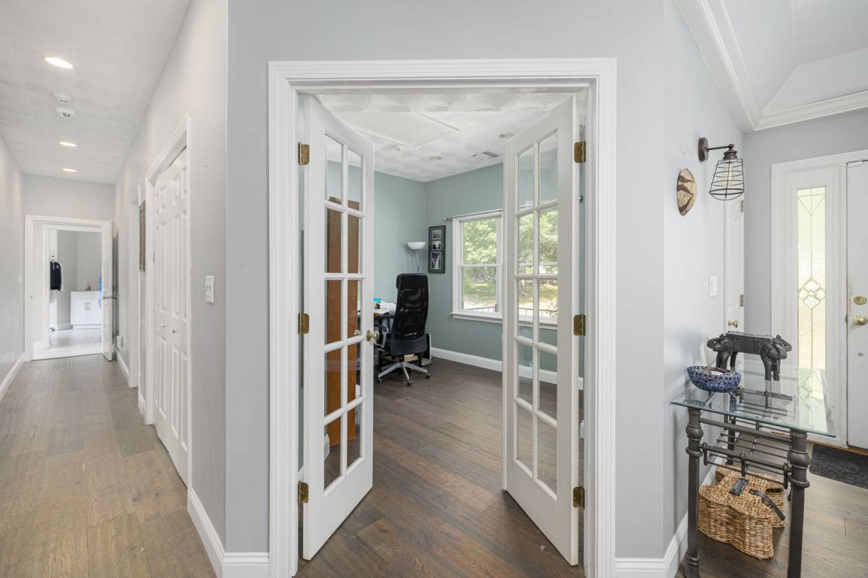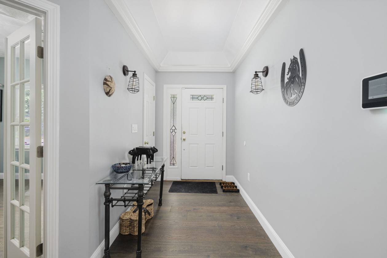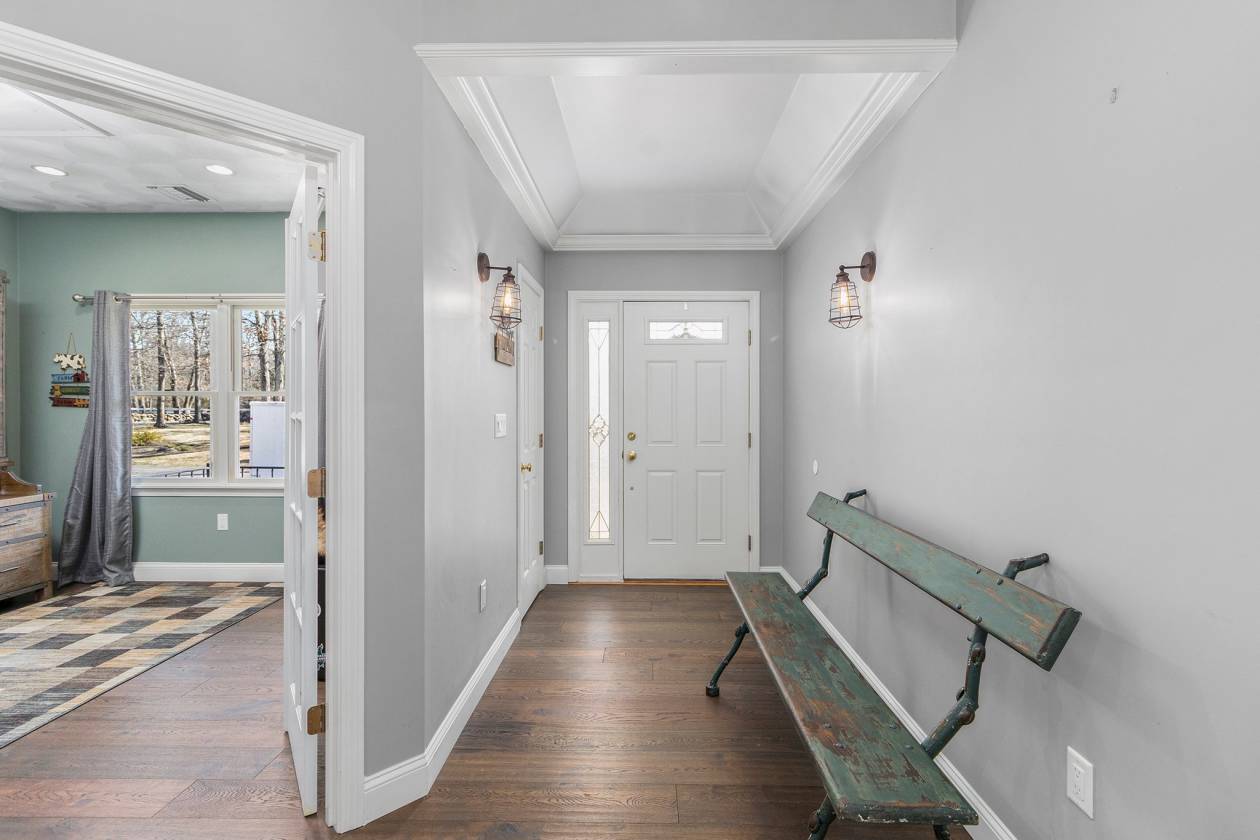 Hidden Horse Acres offers the perfect blend of a meticulously maintained family home and a premier equestrian facility, set on 13.99 private acres just minutes from the sought-after Southern Rhode Island coastal lifestyle. Built in 2002, this custom home was designed for sunlight, comfort, and connection to its surroundings. The open-concept living area features a striking stone fireplace, oversized windows that flood the space with natural sunlight, and a wrap-around deck with tranquil views of the barn, fields, and treed landscape. The main level includes three bedrooms and two-and-a-half baths, creating space for everyone to enjoy their own retreat. The fully equipped walk-out lower level offers a private, sun-filled living area with one bedroom, one bath, and a fireplaced great room with eat-in-kitchen, ideal for an adult child, parent ,or trainer. Equestrian amenities are truly top-tier. The indoor arena (60' x 120') features Geotextile Fiber footing, complemented by a 75' x 200' outdoor arena with automatic watering system, and a round pen area, each with the same Geotextile footing. The main barn provides six stalls with individual runouts, and an additional nine stalls bring the total capacity to fifteen horses. Some extras: solar power (barn), sprinkler system for the outdoor ring, whole-house and barn generator, two sets of washer/dryer. Classic stone walls weave throughout the property, adding timeless Southern Rhode Island charm. It's time to bring the horses home