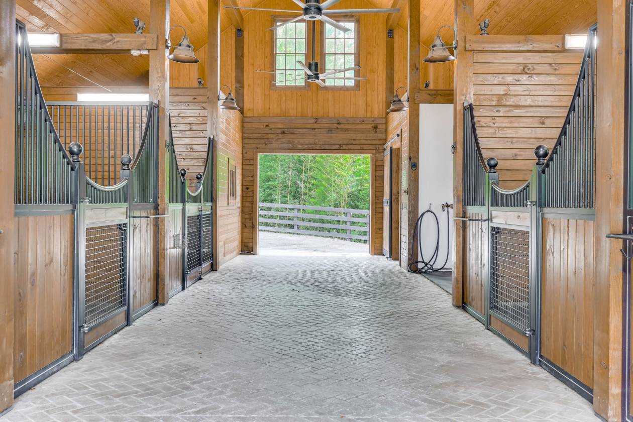 Stunning Horse District property with a 5 stall barn, 3 paddocks and ring, steps away from direct access to Aiken's 2100 acre Hitchcock Woods with over 70 miles of pedestrian and equestrian sand trails. This remarkable equestrian property has 3 bedrooms/2.5 baths and was extensively renovated in 2021 by Larlee Construction with additional during the past year. The 2065 sq ft Sandhills style cottage has 9 foot ceilings, pine flooring, quartzite countertops, 5 burner gas range, subway tile backsplash, gas fireplace and whole house generator recently serviced. New updates include canvas awnings, landscaping, freshly painted interior, a new whole house stereo system, plantation shutters, floor to ceiling mirrors in entrance hallway, new glass shower door and dining room track lighting. The office/study has picture frame wainscotting and double closets and fireplace. The spacious and bright primary suite with French doors open into a screened porch overlooking the fenced 100x 50 ft GGT footing riding arena. The spectacular 5 stall center aisle barn has a wash stall, feed room, tack room, laundry facilities and bathroom. The property is perimeter fenced with board fencing and an electric gate. Brick walkways and walls complement the property. There is off-street parking on the side yard for vehicles and room on the street for trailer parking.