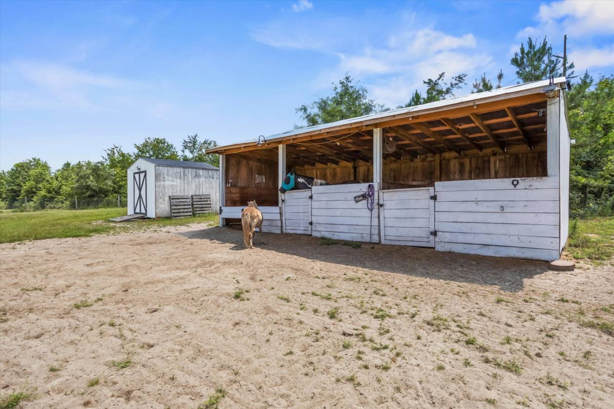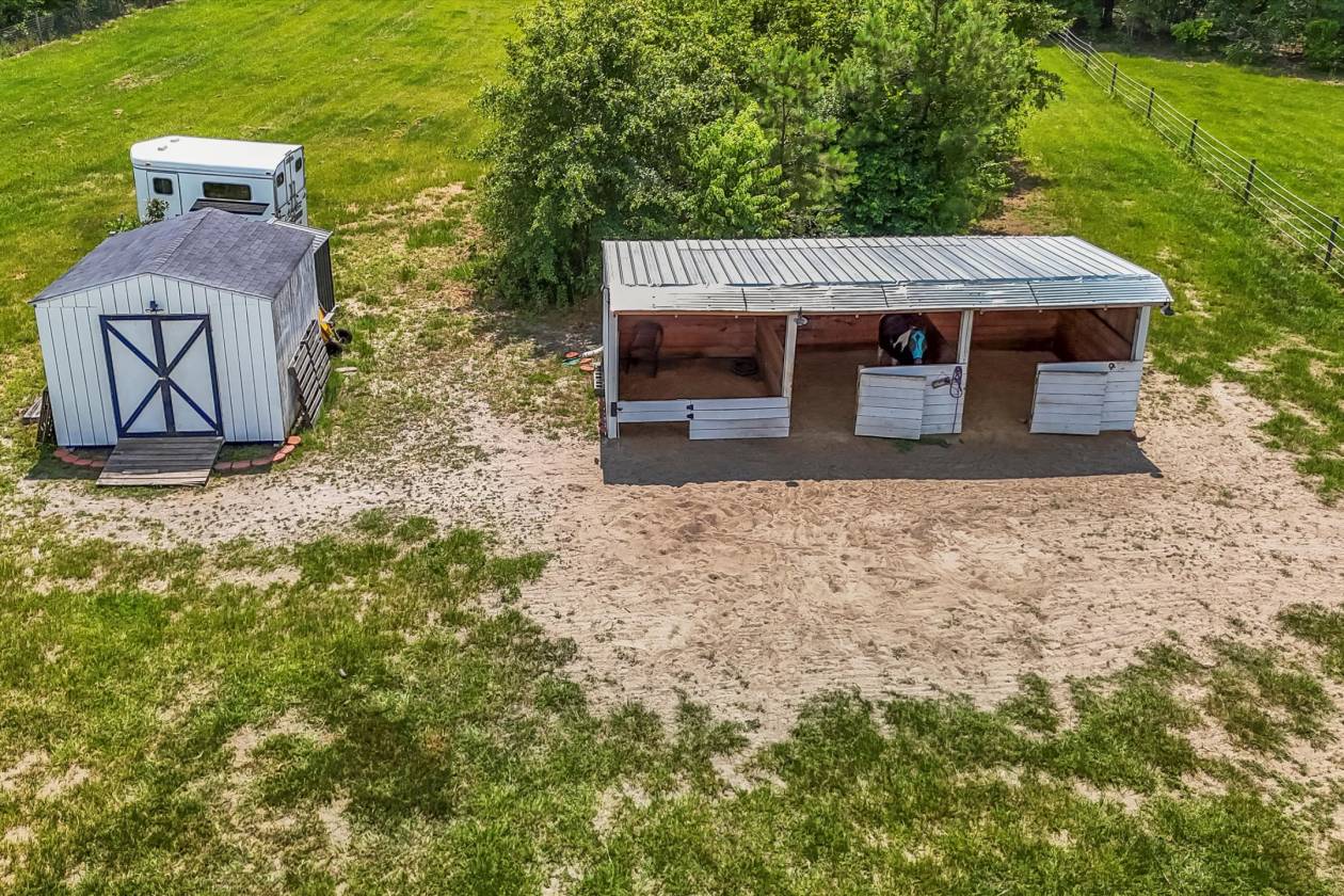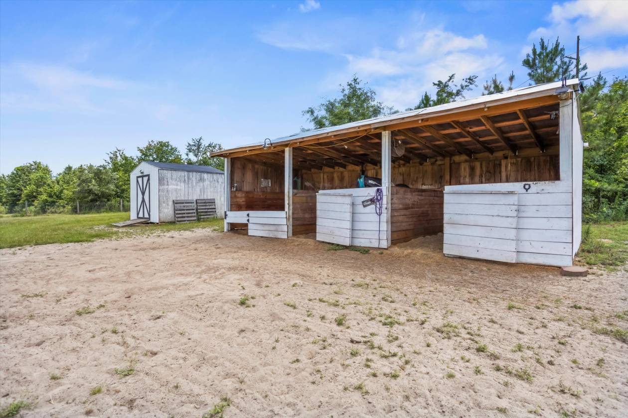 - The horse amenities are ready for use: a three-stall shedrow barn with rubber mats, fans, and solar lighting; two sheds for hay and equipment; and well-maintained pastures with Bahia and seasonal rye, thoughtfully managed for healthy grazing. There's even a level pad ready for your riding arena. A 25x20' shop (built in 2022) provides space for your equipment, hobbies, or home-based business.