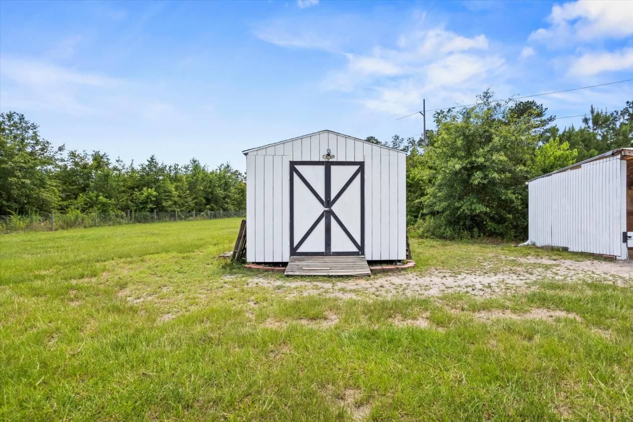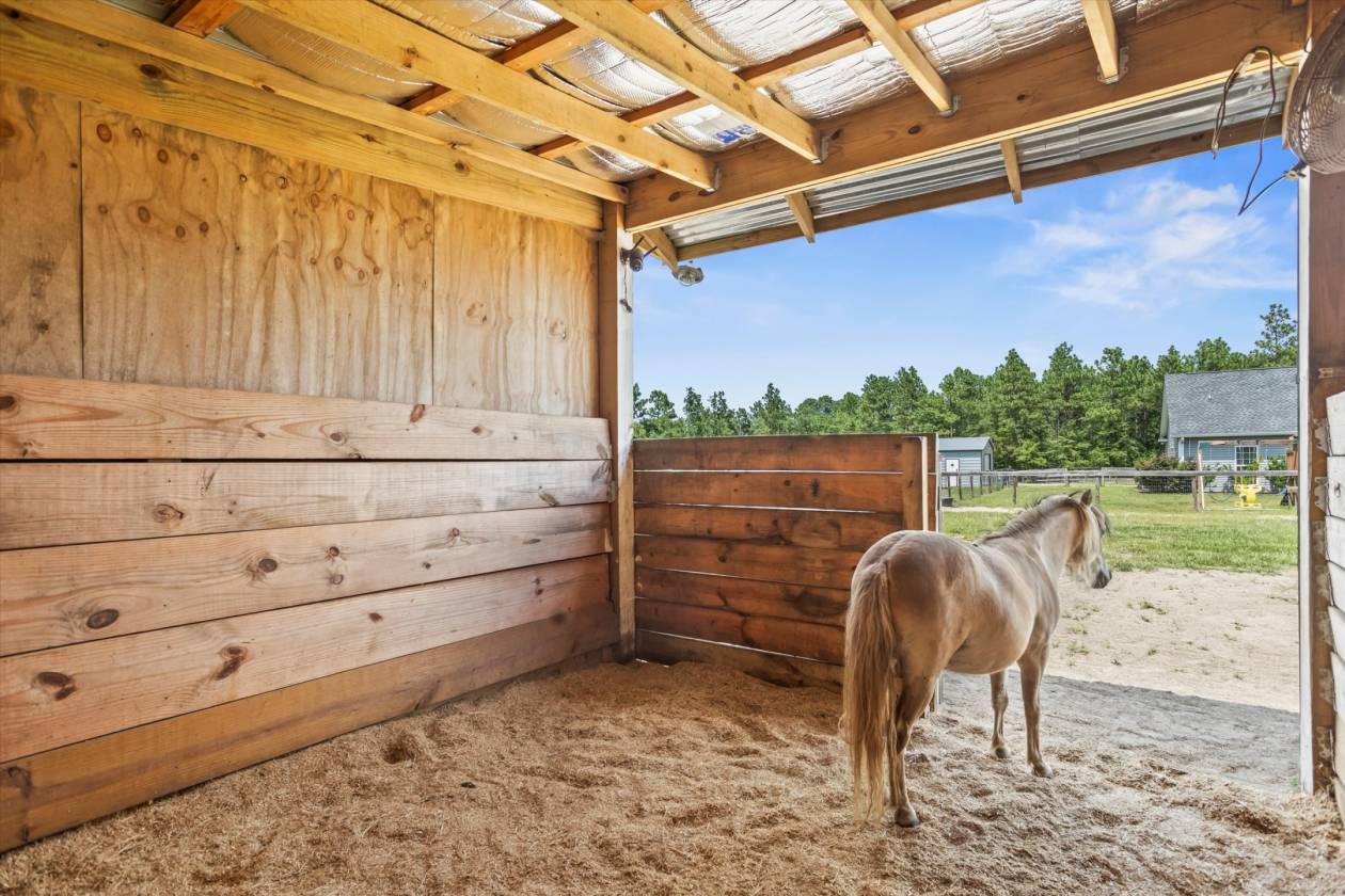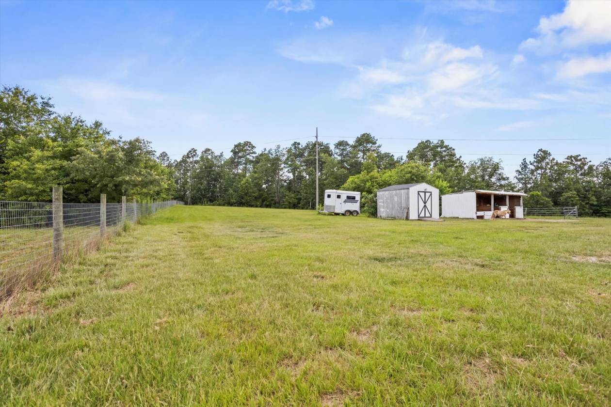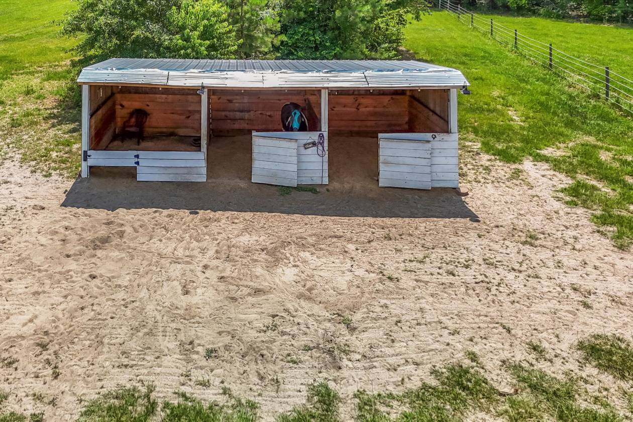- The horse amenities are ready for use: a three-stall shedrow barn with rubber mats, fans, and solar lighting; two sheds for hay and equipment; and well-maintained pastures with Bahia and seasonal rye, thoughtfully managed for healthy grazing. There's even a level pad ready for your riding arena. A 25x20' shop (built in 2022) provides space for your equipment, hobbies, or home-based business.