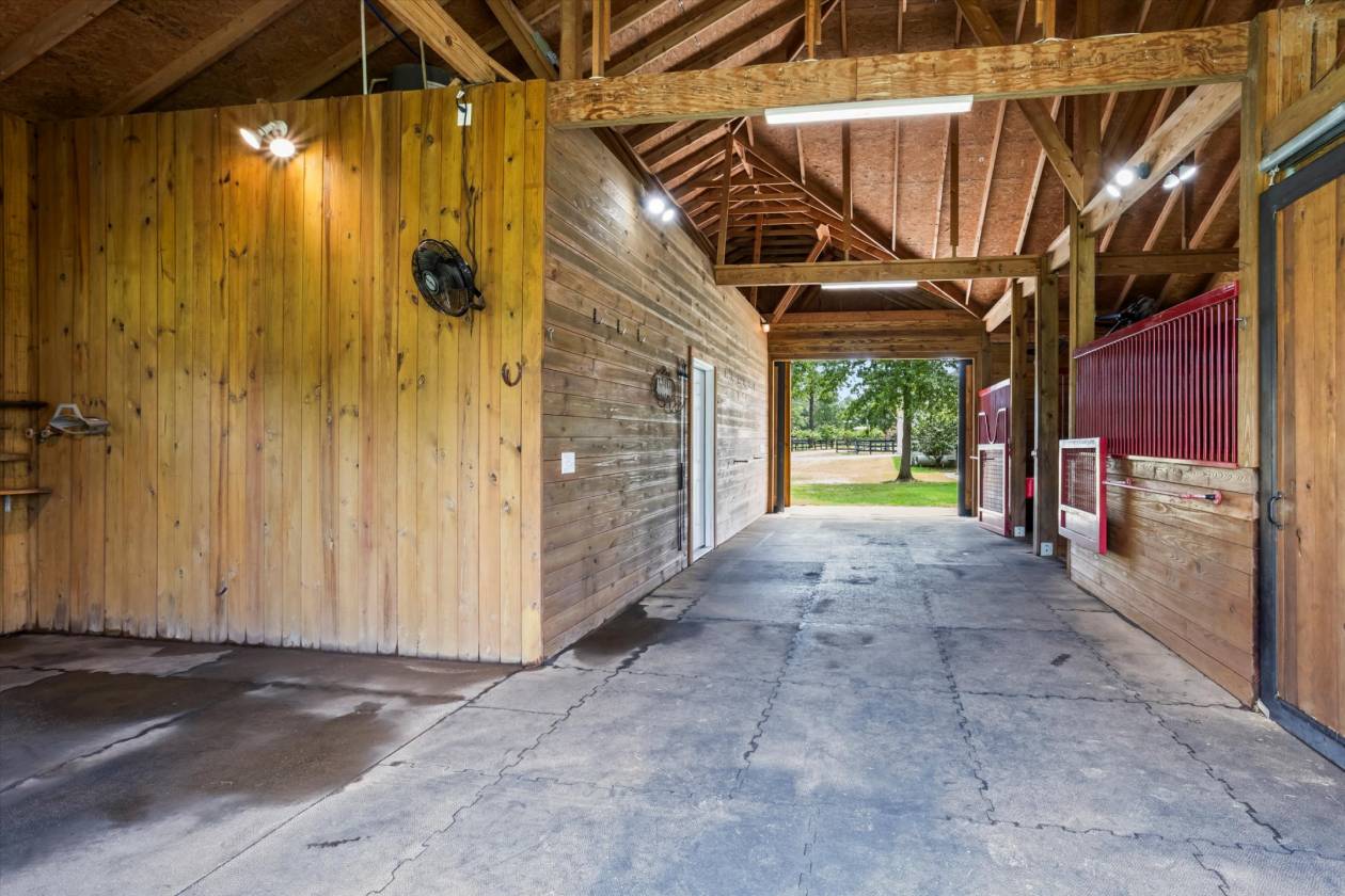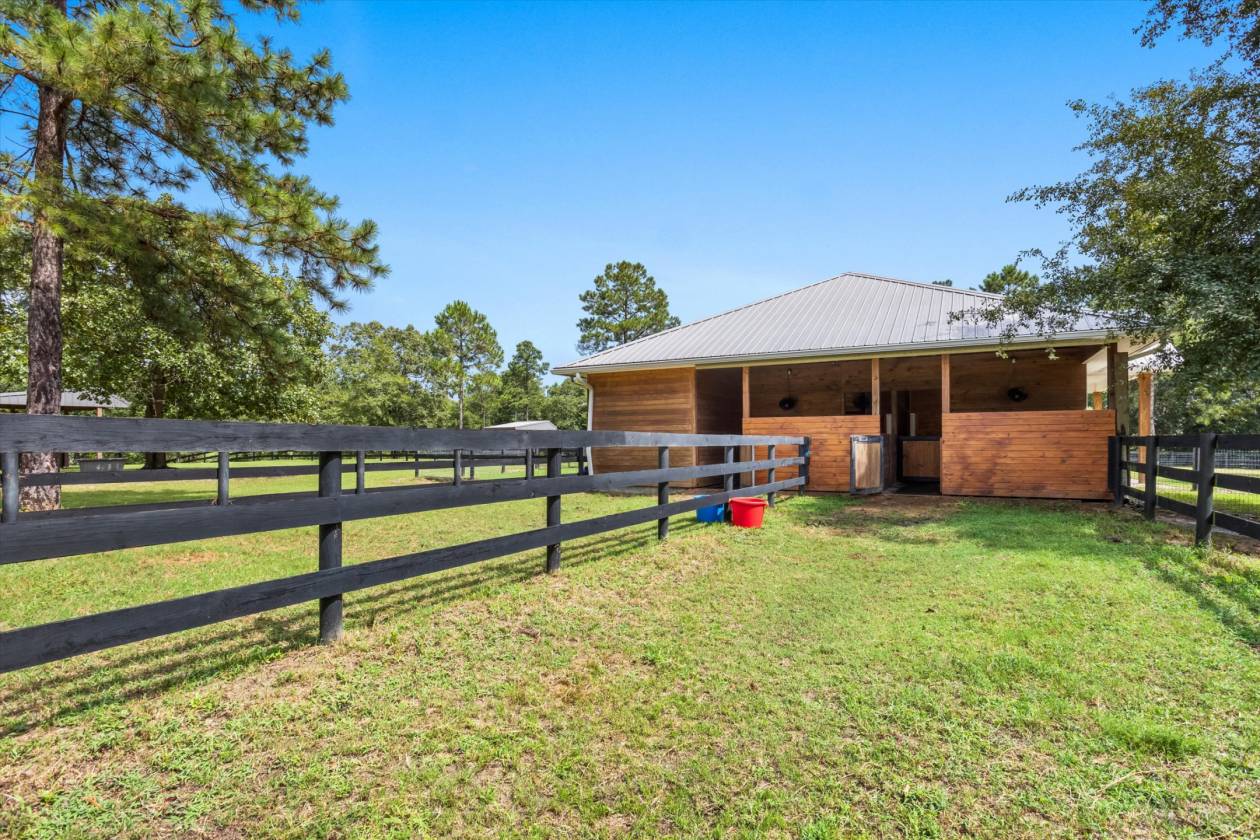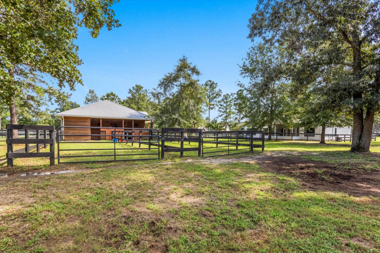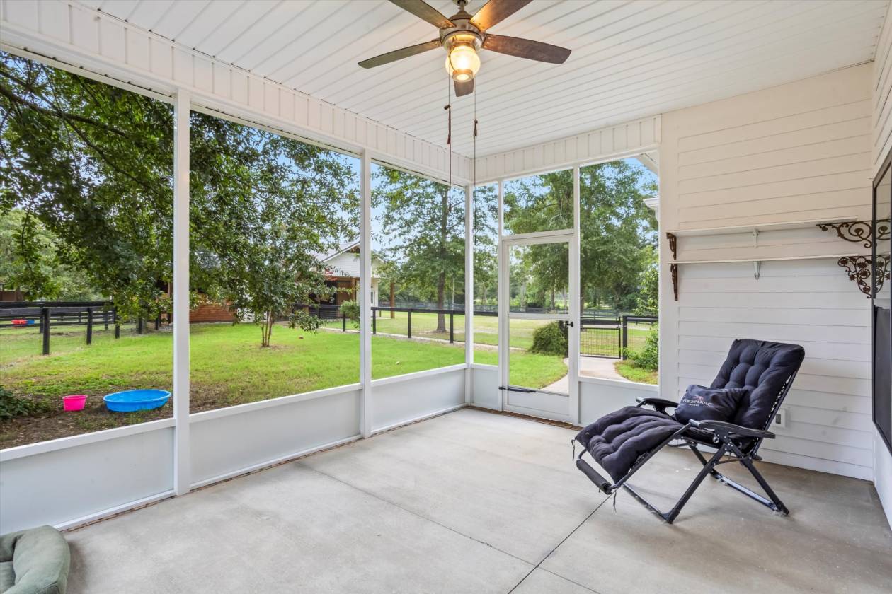 Welcome to Bridle Creek, one of Aiken's most sought-after equestrian communities. This 5-acre farm, built in 2019, offers a rare blend of comfort, style, and access to world-class riding amenities. The charming 3-bedroom, 2-bath home spans 1,964 sq ft with 10' ceilings, crown molding, and an open-concept layout perfect for modern farmhouse living. The kitchen is designed for both function and style with granite countertops, a large island, and a farmhouse sink. Relax on the screened porch, and enjoy the convenience of an oversized two-car garage and high-speed fiber optic internet. For the horses, the darling low-maintenance barn is as functional as it is inviting. Inside, stained knotty pine walls create a warm, classic look. Four 12x14 stalls (two interior, two with attached 80' runs) are fully rubber-matted, with a large climate controlled tack room, and generous feed/hay room that holds up to 200 bales. The barn is thoughtfully designed for ease of care and comfortable living. Coastal grass pastures are clean and well-established, ready for turnout. Beyond your own farm, Bridle Creek offers over 600 acres of groomed trails, a jumping arena with professional footing, a dressage court with mirrors, and an open cross-country field just steps from the property. The community clubhouse features an exercise room, full kitchen, and gathering spaces for neighbors and friends.