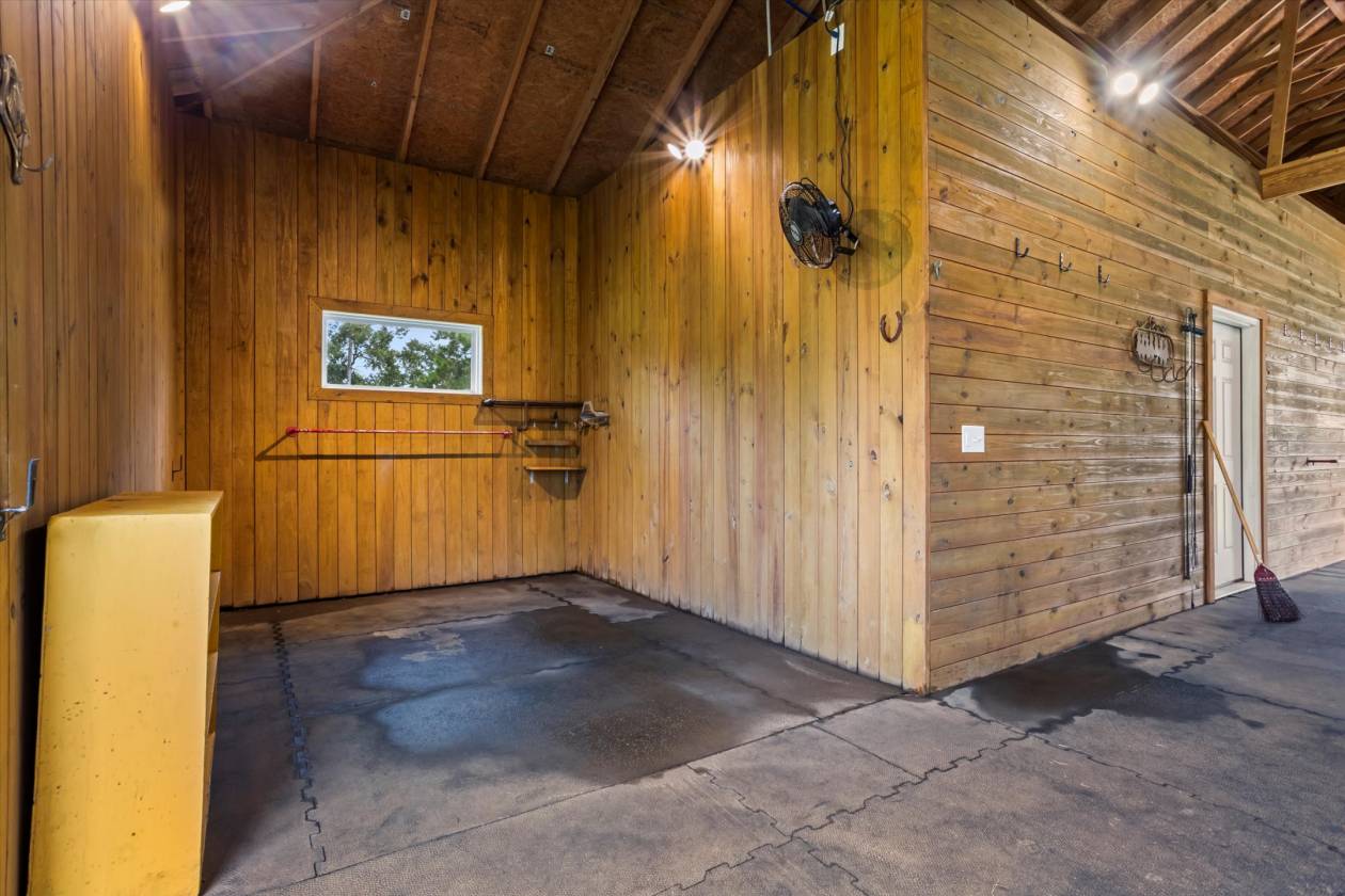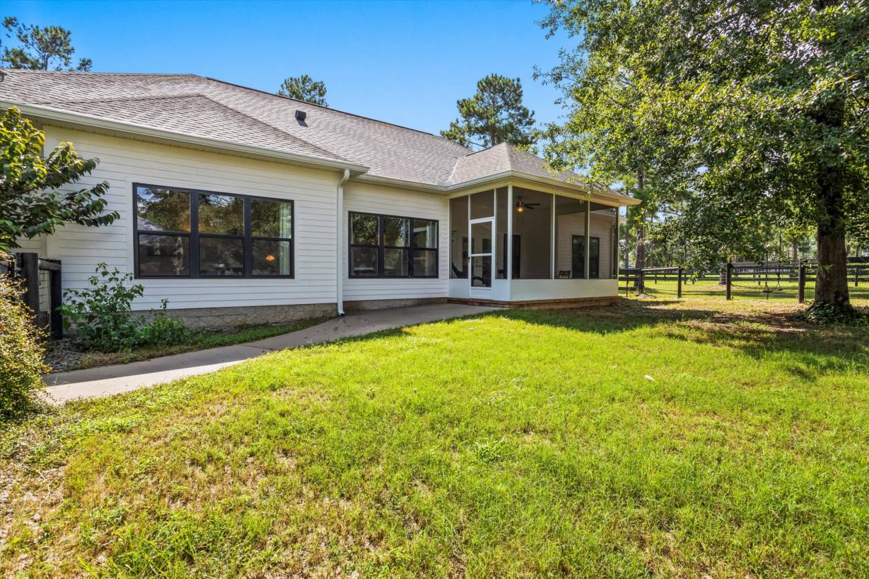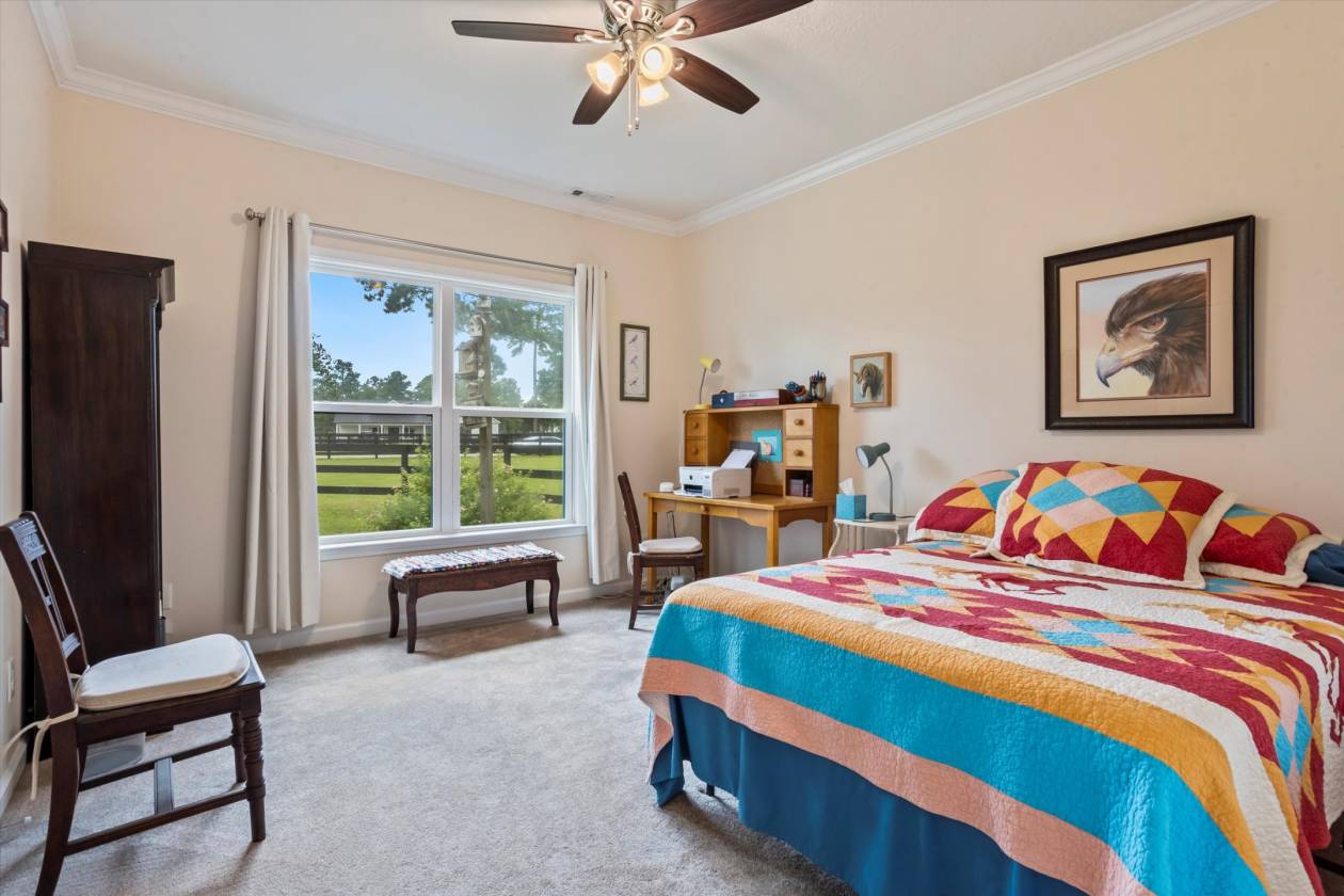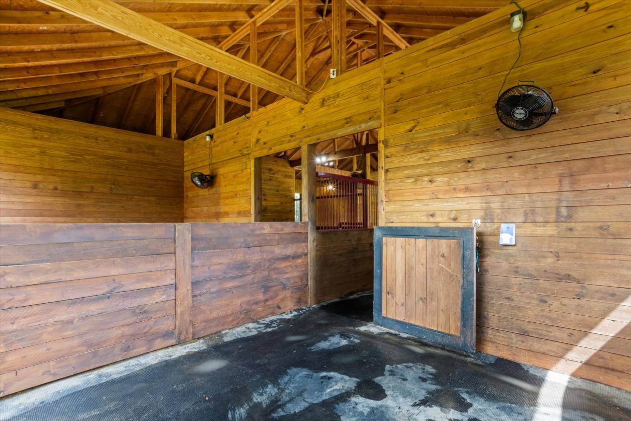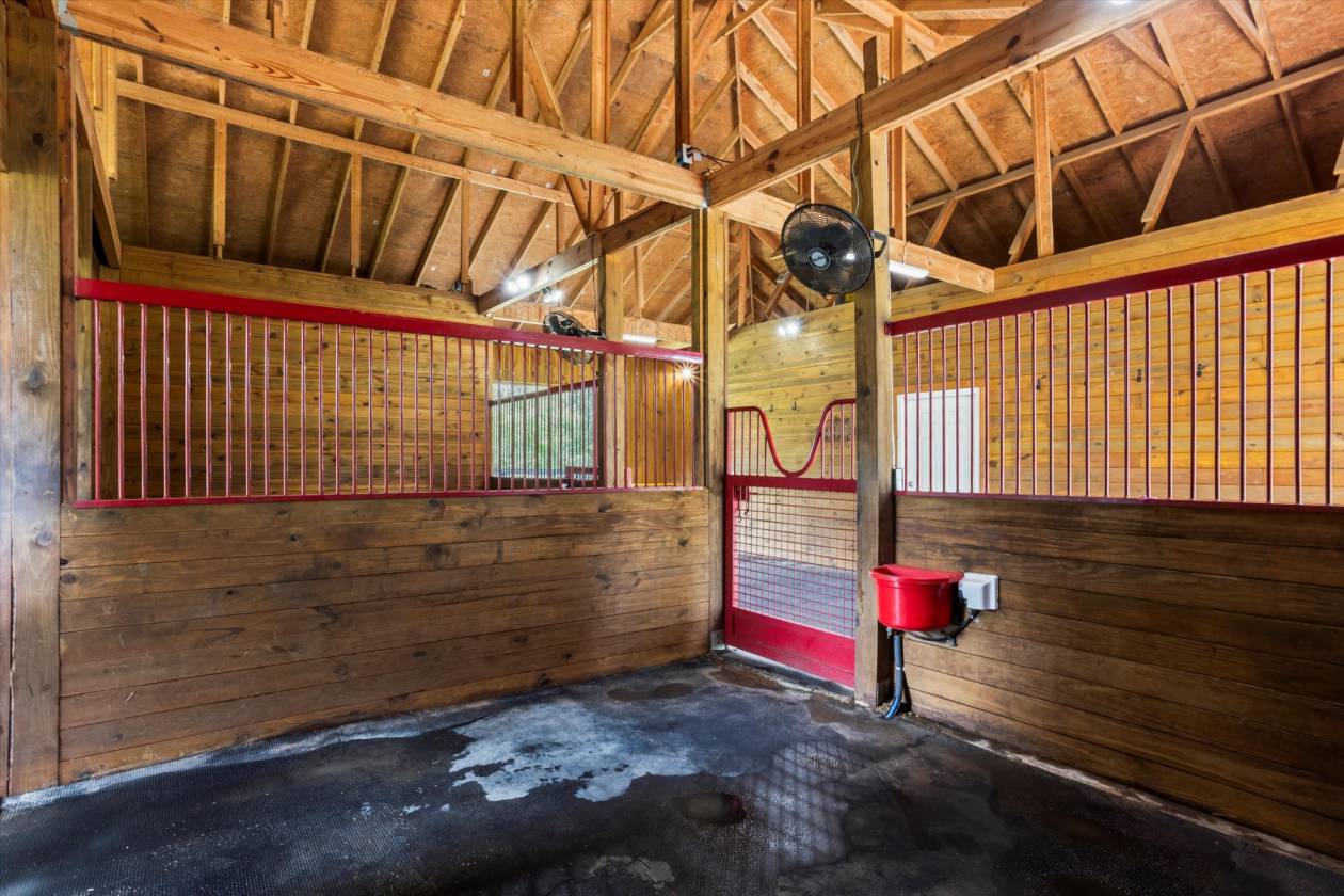 Welcome to Bridle Creek, one of Aiken's most sought-after equestrian communities. This 5-acre farm, built in 2019, offers a rare blend of comfort, style, and access to world-class riding amenities. The charming 3-bedroom, 2-bath home spans 1,964 sq ft with 10' ceilings, crown molding, and an open-concept layout perfect for modern farmhouse living. The kitchen is designed for both function and style with granite countertops, a large island, and a farmhouse sink. Relax on the screened porch, and enjoy the convenience of an oversized two-car garage and high-speed fiber optic internet. For the horses, the darling low-maintenance barn is as functional as it is inviting. Inside, stained knotty pine walls create a warm, classic look. Four 12x14 stalls (two interior, two with attached 80' runs) are fully rubber-matted, with a large climate controlled tack room, and generous feed/hay room that holds up to 200 bales. The barn is thoughtfully designed for ease of care and comfortable living. Coastal grass pastures are clean and well-established, ready for turnout. Beyond your own farm, Bridle Creek offers over 600 acres of groomed trails, a jumping arena with professional footing, a dressage court with mirrors, and an open cross-country field just steps from the property. The community clubhouse features an exercise room, full kitchen, and gathering spaces for neighbors and friends.
