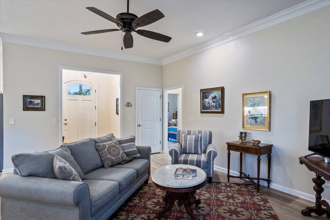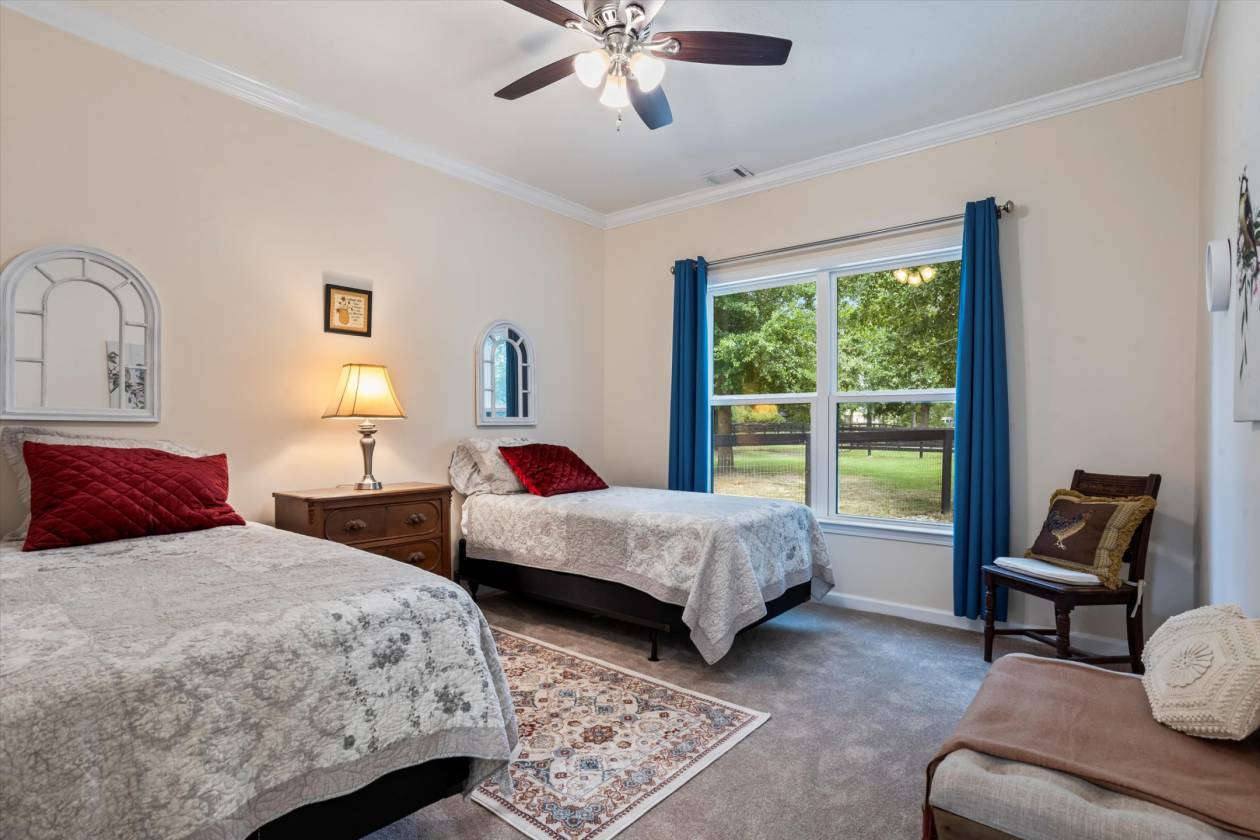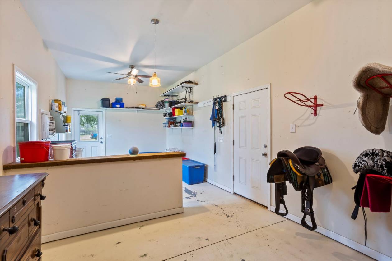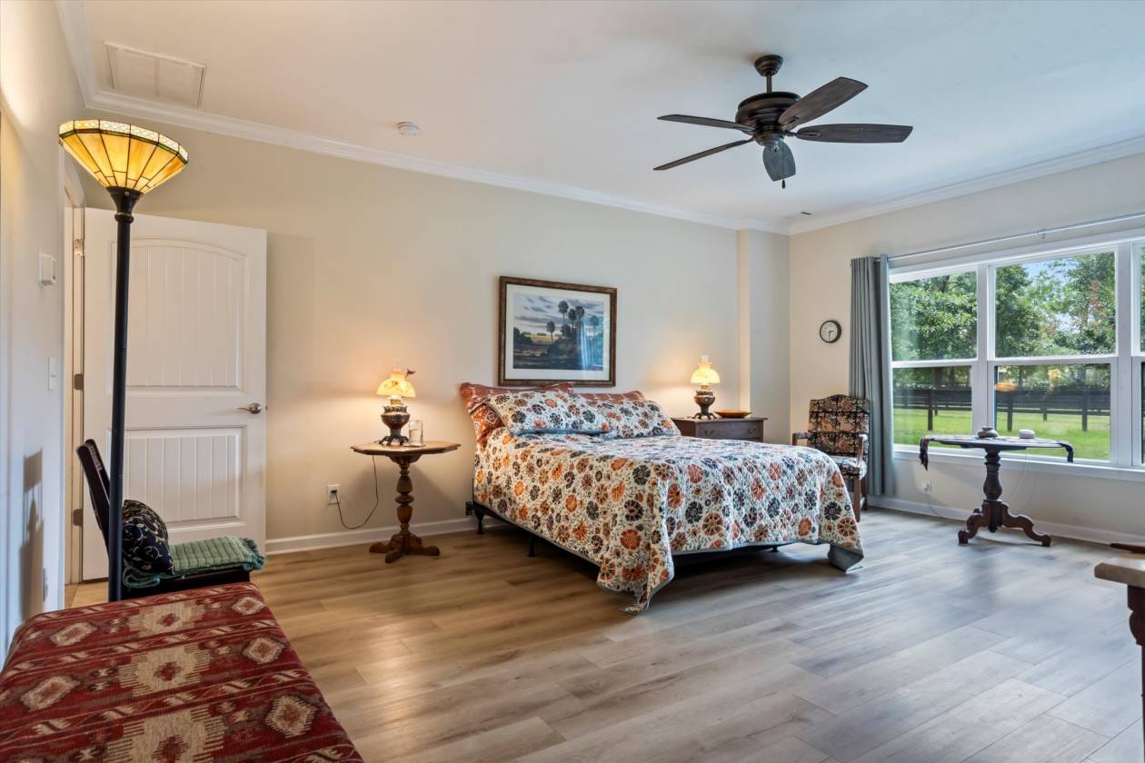 Welcome to Bridle Creek, one of Aiken's most sought-after equestrian communities. This 5-acre farm, built in 2019, offers a rare blend of comfort, style, and access to world-class riding amenities. The charming 3-bedroom, 2-bath home spans 1,964 sq ft with 10' ceilings, crown molding, and an open-concept layout perfect for modern farmhouse living. The kitchen is designed for both function and style with granite countertops, a large island, and a farmhouse sink. Relax on the screened porch, and enjoy the convenience of an oversized two-car garage and high-speed fiber optic internet. For the horses, the darling low-maintenance barn is as functional as it is inviting. Inside, stained knotty pine walls create a warm, classic look. Four 12x14 stalls (two interior, two with attached 80' runs) are fully rubber-matted, with a large climate controlled tack room, and generous feed/hay room that holds up to 200 bales. The barn is thoughtfully designed for ease of care and comfortable living. Coastal grass pastures are clean and well-established, ready for turnout. Beyond your own farm, Bridle Creek offers over 600 acres of groomed trails, a jumping arena with professional footing, a dressage court with mirrors, and an open cross-country field just steps from the property. The community clubhouse features an exercise room, full kitchen, and gathering spaces for neighbors and friends.