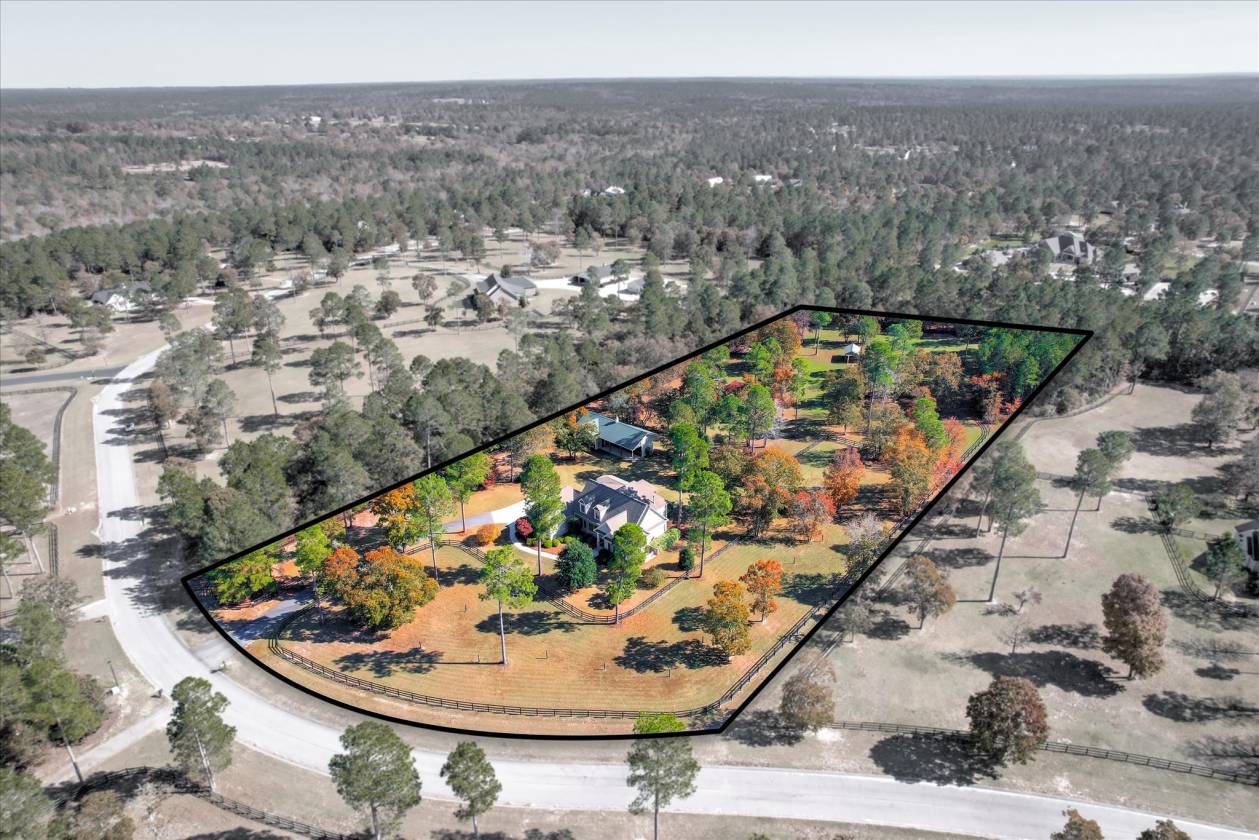 Beautifully maintained custom home and turnkey equestrian property on 5.54 acres in Three Runs Plantation, offering privacy trees along three sides, immediate trail access, and a short hack to the community's riding arenas, pool, and clubhouse. Built in 2013 by Designer Builders (Todd Gaul), this 4-bedroom, 2.5-bath home provides 3,159 sq ft with quality finishes throughout. The main living areas feature hardwood floors, crown molding, and a Great Room with an authentic Hitchcock ceiling, gas fireplace, and custom built-ins. A dedicated bar with custom cabinetry connects the Great Room and dining room. The dining room offers a tray ceiling and custom wainscoting detail. The kitchen includes Bosch appliances (Sharp microwave drawer), double ovens, a separate pantry, breakfast area, and sitting area. Additional spaces on the main level include a laundry room, back hall, and powder room. The primary suite on the main floor includes two walk-in closets, a spacious bathroom, and custom wood shutters on the windows. Three additional bedrooms are located upstairs, along with a full bath. Access to the floored attic provides generous storage. Outdoor living includes a screened porch with tile flooring and vinyl window panels (screens and vinyl replaced in 2024). A pressed concrete and brick patio is located off the porch with a gas grill connected to the propane tank. The home is fully landscaped and irrigated, including 11 dogwood trees. Asphalt driveway with concrete turnaround and walkways. Three-car garage, with one bay currently used as a workshop. The equestrian amenities include a 3-stall barn (12'x12' stalls) with tack room, storage room, and overhangs on three sides, also built by Todd Gaul, featuring a standing seam metal roof and hot/cold water in the tack room. Stalls were professionally refinished in fall 2025. The property offers three acres of fenced grass pastures, with the front pasture irrigated, hydrants to two pastures, and fencing repaired and painted in 2025. Propane services the stove, hot water heater, fireplace, and grill. Heating and cooling are electric heat pumps with separate systems for each level. A well-planned home and equestrian setup with direct trail access and a private, established setting within Three Runs Plantation. Three Runs Plantation offers equestrian amenities, including two riding complexes, each with a mirrored dressage arena, a jumping arena, and a grass jump field with a water feature. Additional community amenities include a clubhouse, pool with a cabana, and an activity center with a fitness room. Buyer pays a one-time Capital Contribution to the HOA
