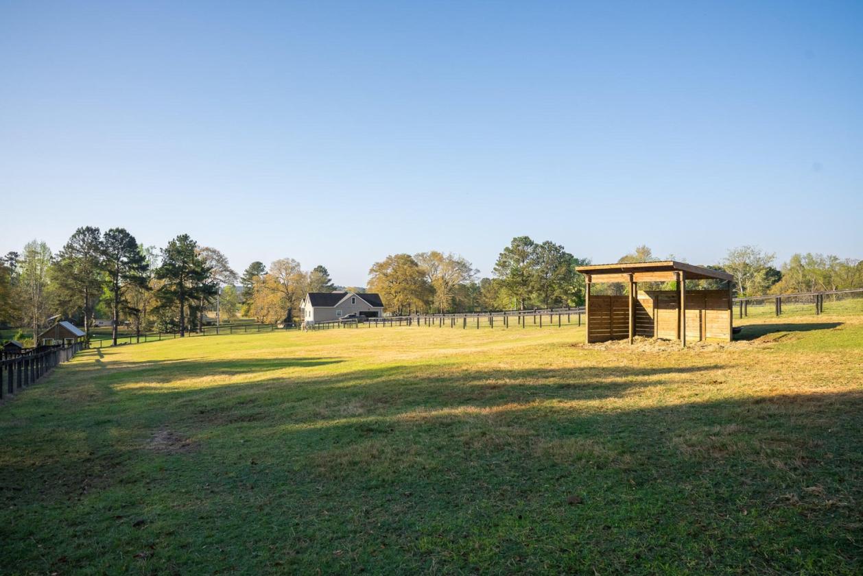 Investor/Seasonal Farmette Near Aiken's Premier Equestrian Venues Ideal for the seasonal winter resident or savvy investor, this charming 5.59-acre farmette is perfectly positioned in the heart of Aiken's thriving equestrian corridor. Just 13 minutes from vibrant downtown Aiken, the property offers a rare blend of convenience, functionality, and future potential. Equestrian amenities include a 4-stall shed-row barn with wash stall and tack room, along with an attached garage/shop building and studio living quarters--ideal for seasonal stays, income-producing opportunities, or future expansion. Horse enthusiasts will appreciate the exceptional proximity to top venues: only 1.3 miles to New Bridge Polo & Country Club, 7 miles to Bruce's Field, Dara Knot Farm, and Hitchcock Woods, 9 miles to University of South Carolina Aiken, and 10 miles to Sporting Days Farm and The Vista Schooling & Event Center. The land is thoughtfully laid out with three fenced pastures--two with run-in sheds--and a third offering a large, level riding area, ideal for a jump field or future dressage arena. Enjoy tranquil pond views, a fenced dog yard, and ample space to build a main residence. Additional features include a tack room with hot water heater and laundry sink, and 50-amp RV hookup. An existing termite bond provides added peace of mind. Surrounded by established polo and equestrian properties, this is a rare opportunity to own a manageable, income-producing, or seasonal horse property in one of the South's most sought-after winter destinations. Bring your horses and enjoy the Aiken lifestyle--seasonally or year-round. *Please note - square footage is for the entire structure.