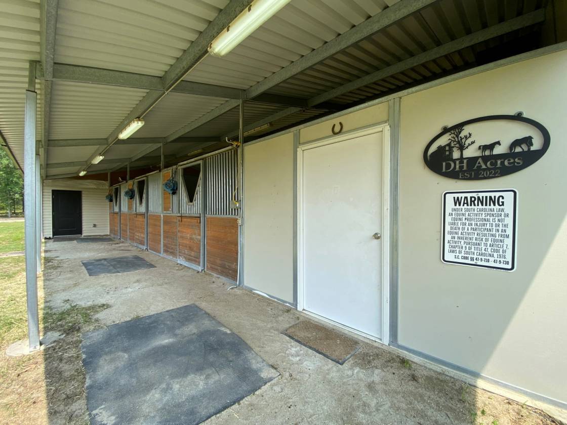 Check out this amazing equine property with plenty of room for all your horses, cows, goats and any other farm animals you can think of! Located in Wagener in Aiken County and nestled on 20 beautifully maintained acres, this exceptional horse property offers the perfect blend of comfortable country living and top-tier equine facilities. At the heart of the property is a spacious 2,100 sq ft barndominium featuring 3 bedrooms and 2 full bathrooms, combining rustic charm with modern convenience. You will enjoy the vaulted ceilings as you enter the home, an open-concept living area, a well-appointed kitchen, and beautiful dining area. The primary suite includes an en-suite bath, large closet and an exit that allows access to the horse stalls. A huge mud room / laundry room is accessible from the interior as well as the exterior of the home giving you a place to shed those dirty clothes after a long day on the farm. The equestrian amenities are perfect for any discipline starting with a 6 stall horse barn complete with 12 X 24 tack / feed room and large concrete wash rack which is ideal for both training or recreational riding. Behind the barn you will find a 175' X 300' welded pipe riding arena with return ally and lead ups that are designed for all rodeo events including steer wrestling, calf roping, break away roping, team roping and barrel racing. You could add a few bucking chutes and be ready for any of the rough stock events as well! On one side of the arena you will find 8 (85' X 95') turnout paddocks thoughtfully laid out for ease of use and horse rotation. On the other side you will find approximately 8.5 acres of open hay field ready for hay production, fencing for additional pastures or whatever use your heart desires. There is also a 18 X 45 carport and a conex for all other storage. Whether you're a professional trainer, a weekend rider, or simply seeking a serene lifestyle with room to roam, this property is a rare find. Conveniently located with easy access to I-20, Aiken, Augusta, Columbia and nearby amenities yet tucked away for peace and privacy. Schedule your private tour today, a stunning property like this won't last long!